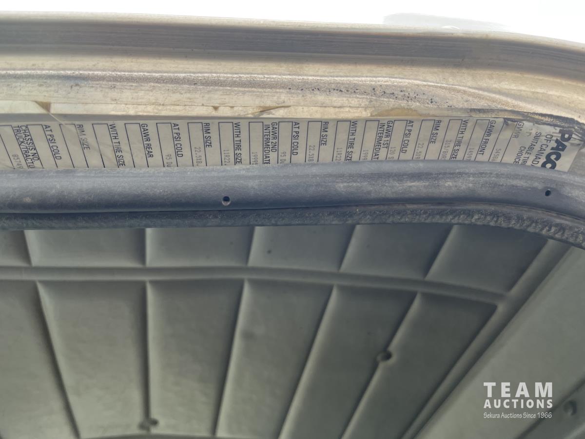 Cummins ASC315 8.3 L L6 315 HP engine, Eaton Fuller 8LL manual transmission, 102 inch x 26 ft deck, hoist, rear controls, winch, air ride suspension, 14,600 lb front axle, 40,000 lb rear axles, diff lock, 4.88 ratio, 241 inch WB, all aluminum wheels, 385/65R22.5 front tires, 11R22.5 rear tires
