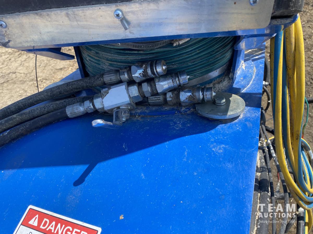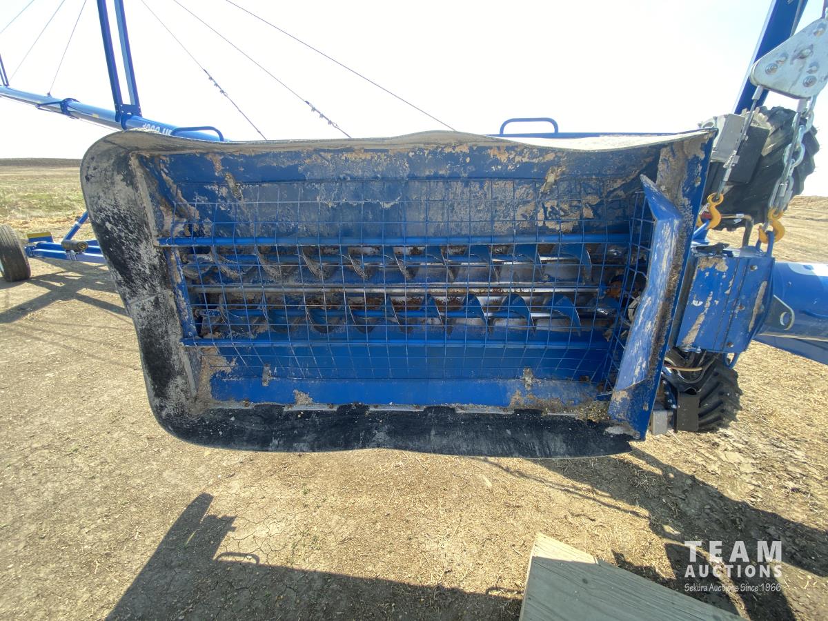 540 PTO, double flight hopper, swing mover, reverser, hydraulic lift, work lights, Leadhand hopper controller, hyd swing lift, tongue hitch, wood hopper cover, ST225/75R15 tires.