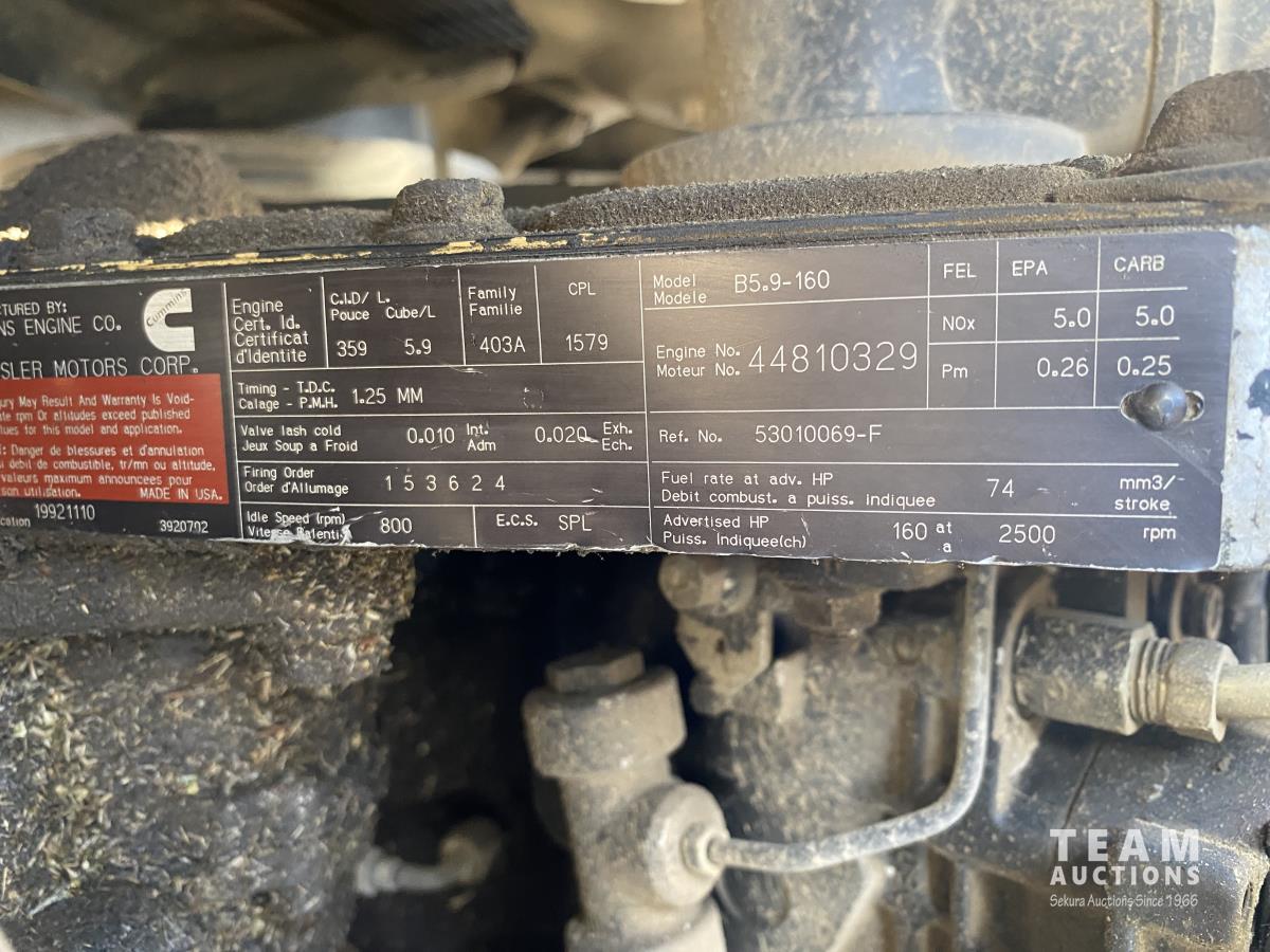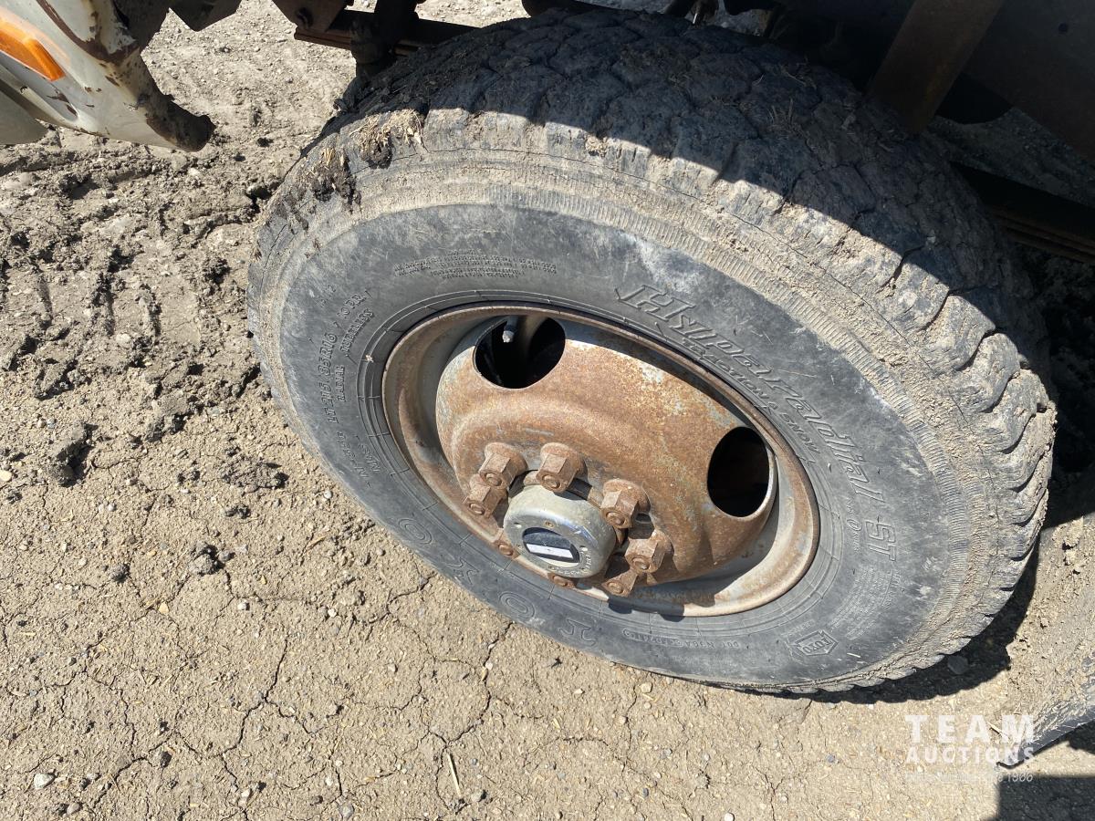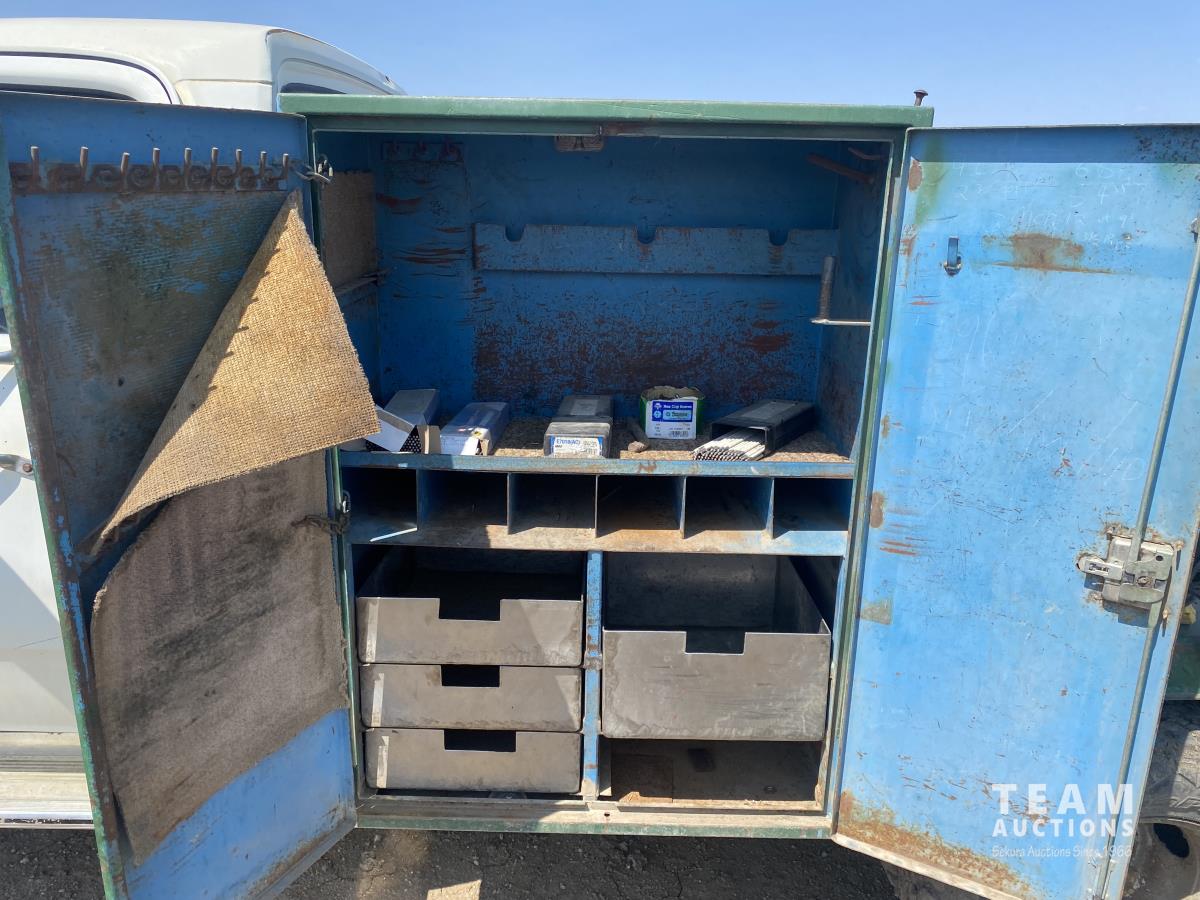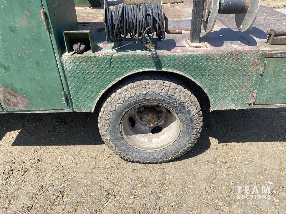 Cummins 5.9 L 6 cylinder diesel engine, 5 speed manual transmission, steel toolbox, side tool boxes, cord reel, hose reels, rear vice, 7ft x 107 inch service body, LT215/85R16 tires