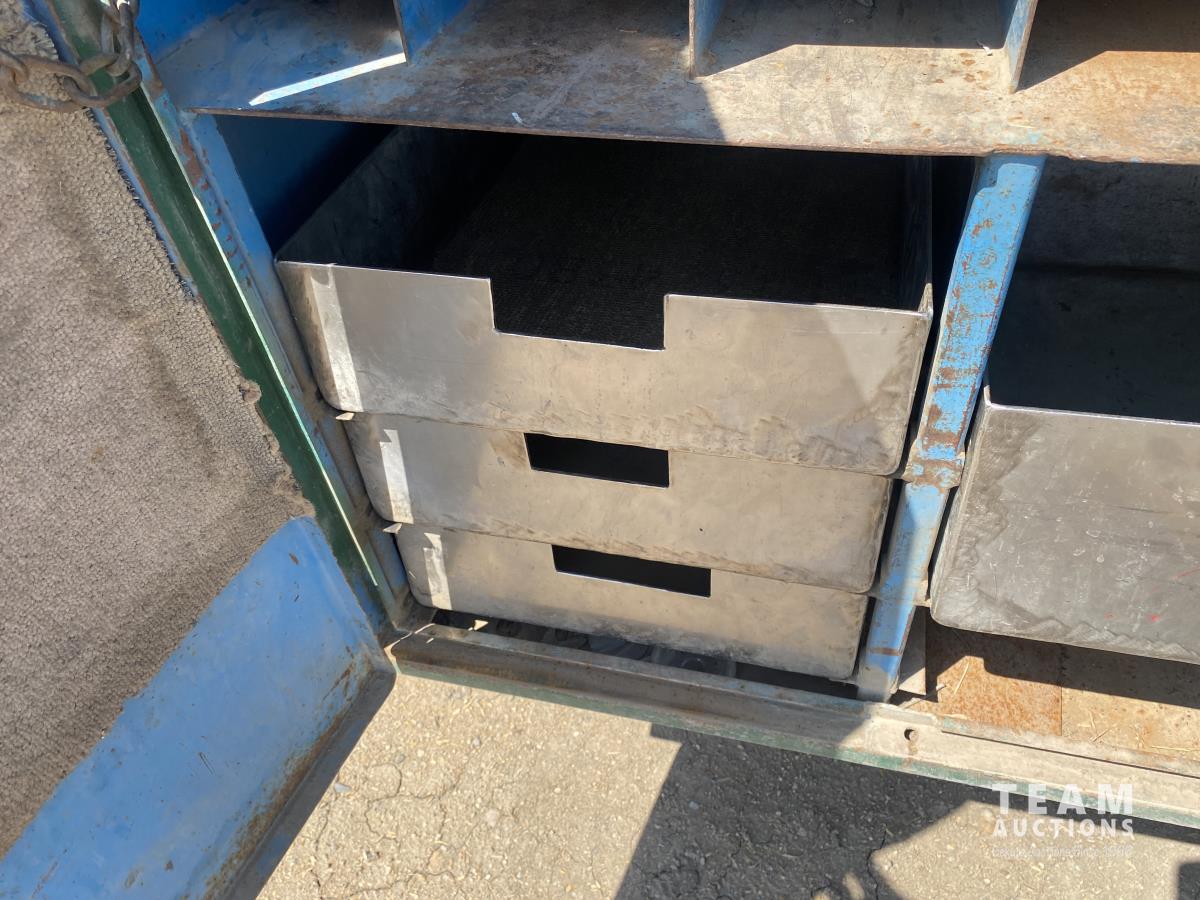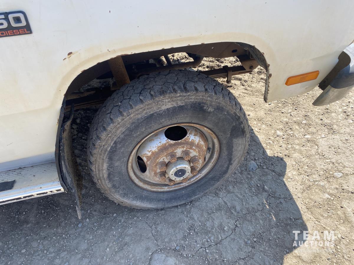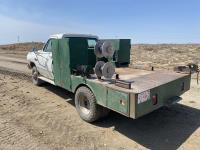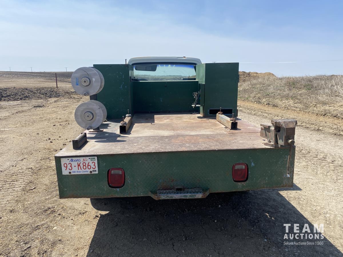 Cummins 5.9 L 6 cylinder diesel engine, 5 speed manual transmission, steel toolbox, side tool boxes, cord reel, hose reels, rear vice, 7ft x 107 inch service body, LT215/85R16 tires