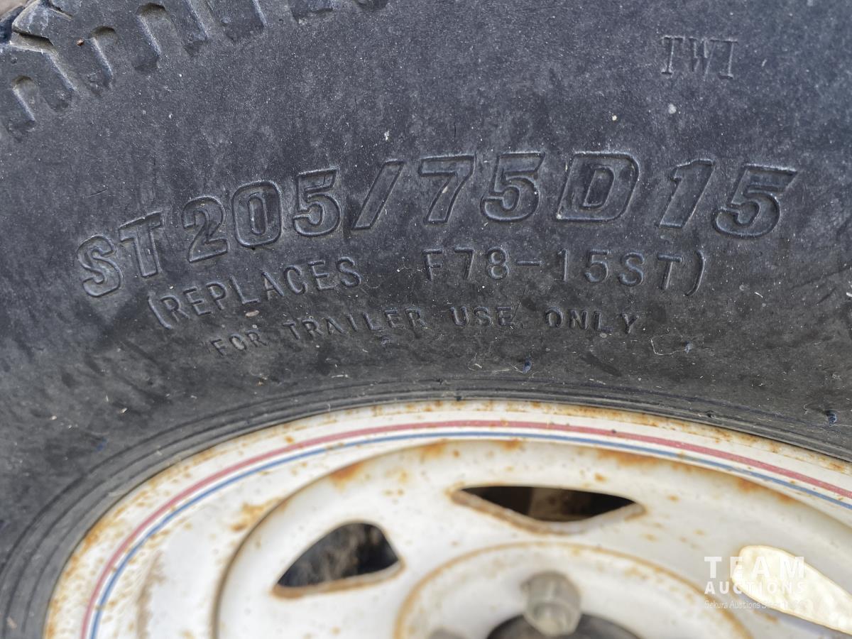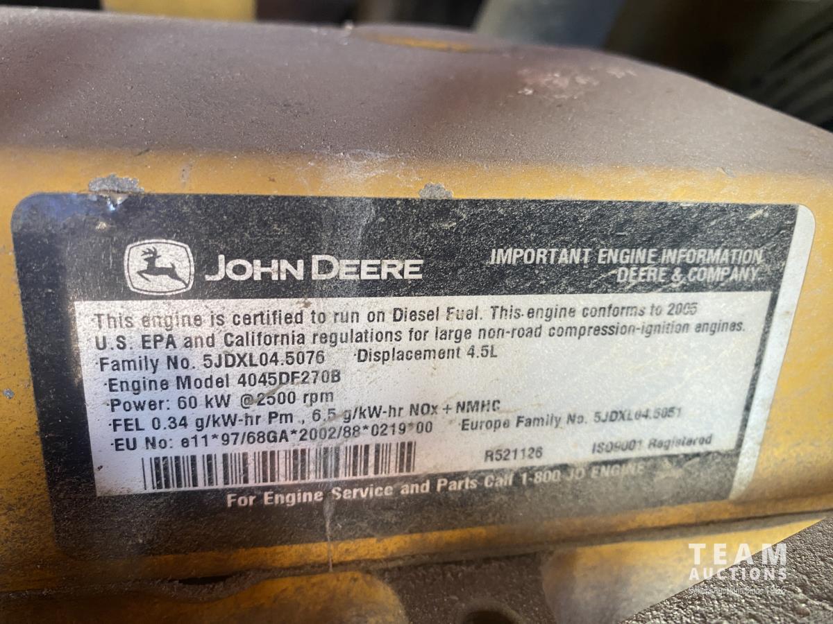 4 cylinder JD diesel engine, gauges, w/hose, tongue hitch, ST205/75D15 tires.