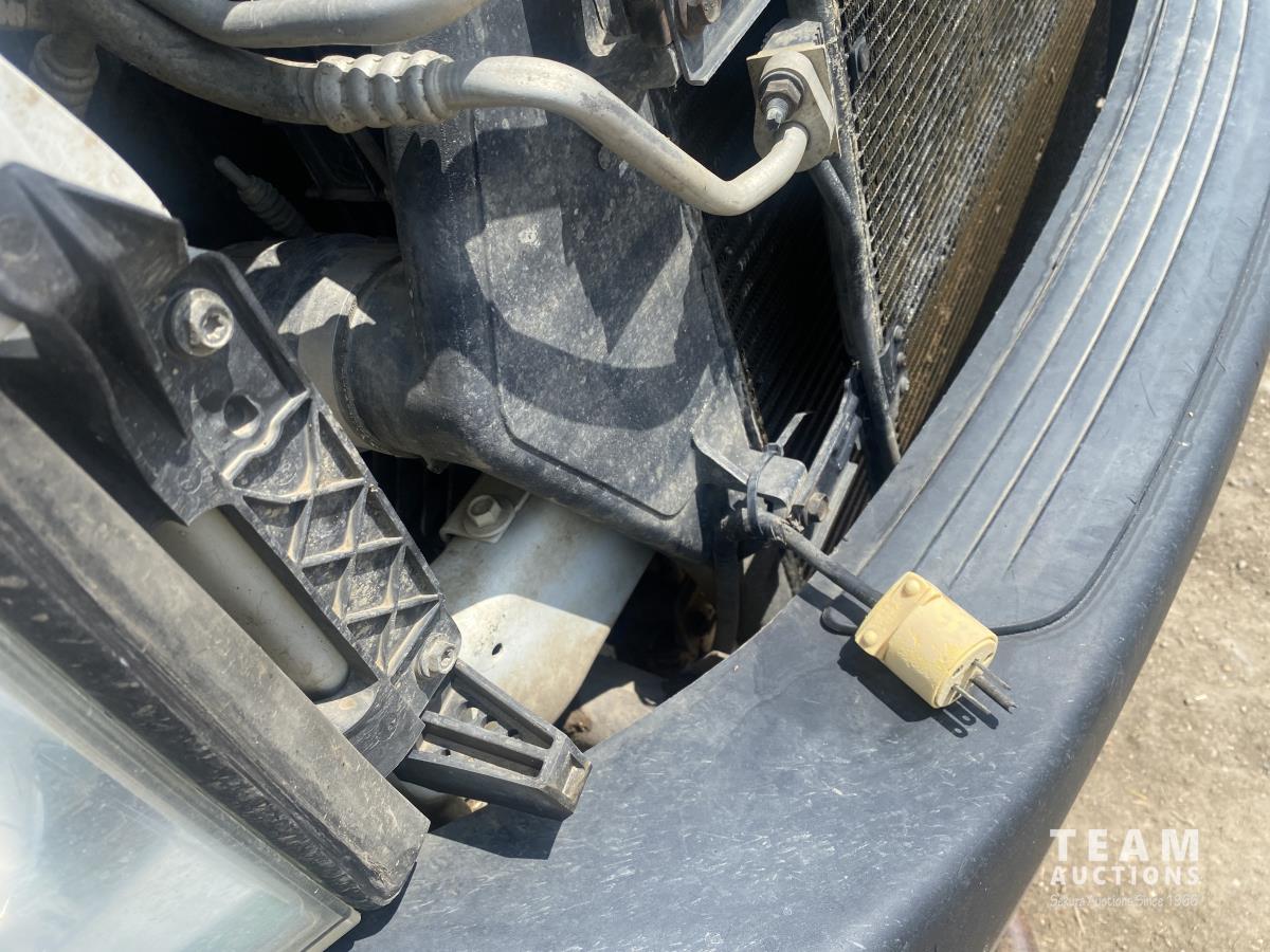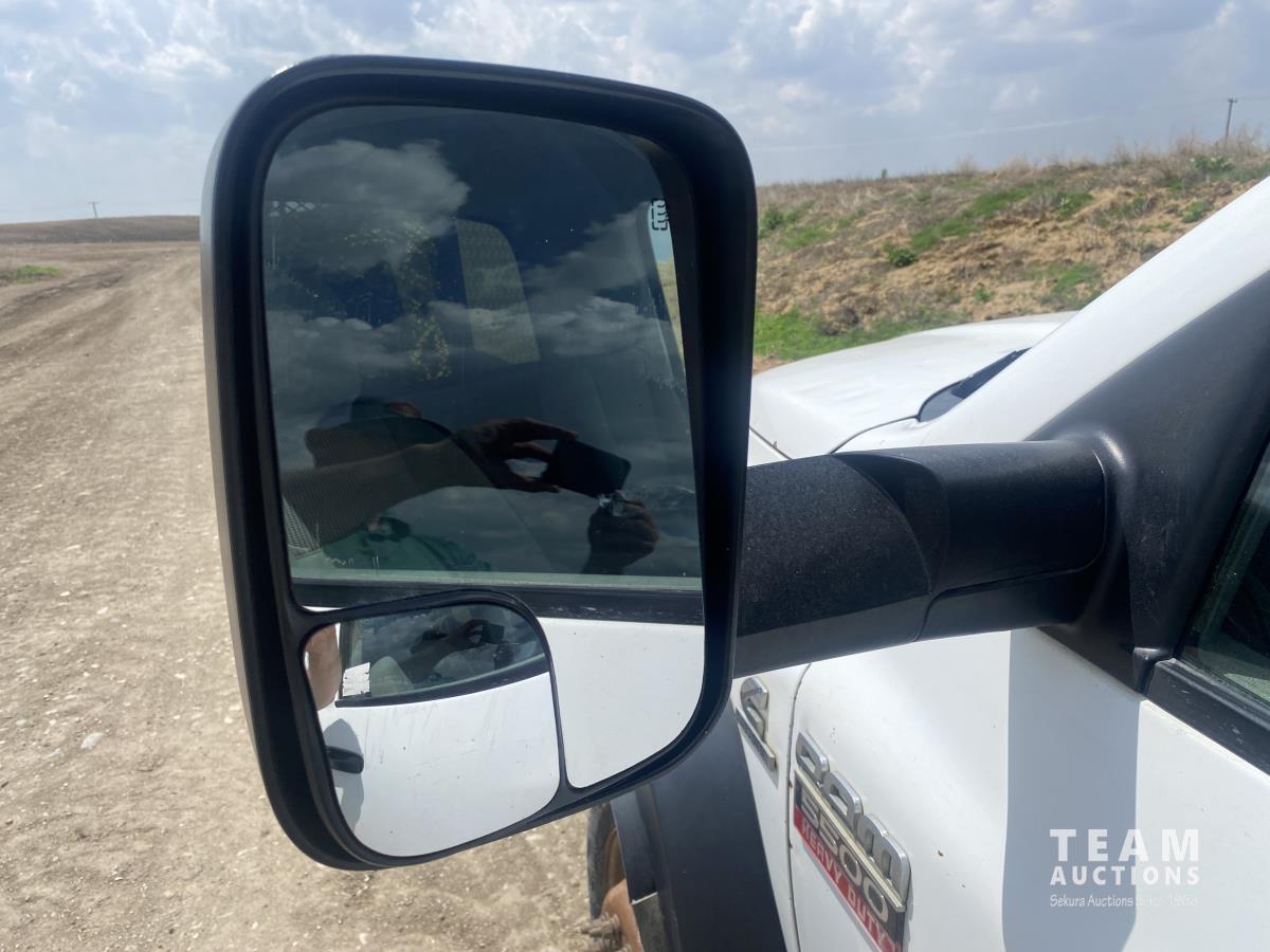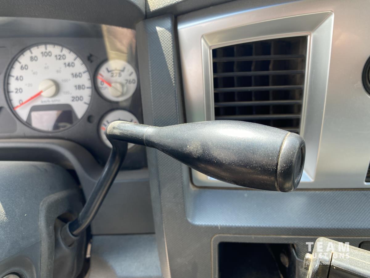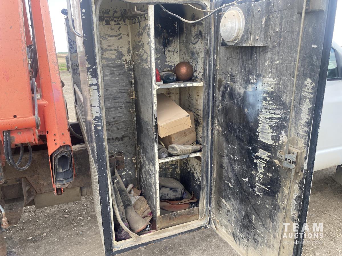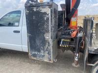 Cummins 6.7 L 6 cylinder diesel engine, automatic transmission, A/C, cruise control, radio, steel tool boxes, 76 inch x 98 inch deck, 2003 Palfinger PK4501 3 section knuckle crane, outriggers, 5th wheel hitch, block heater, power windows, locks, mirrors, 225/70R19.5 tires