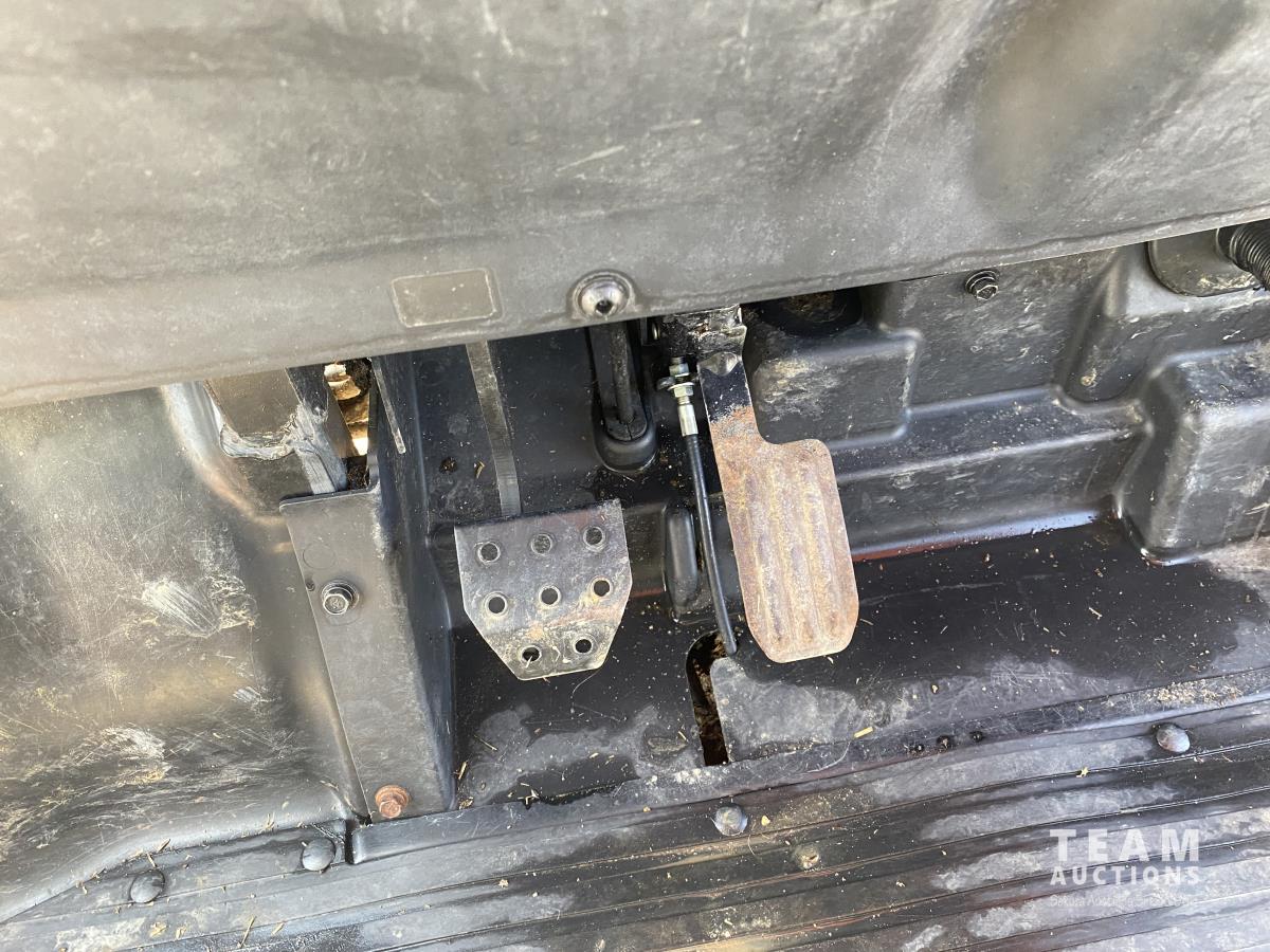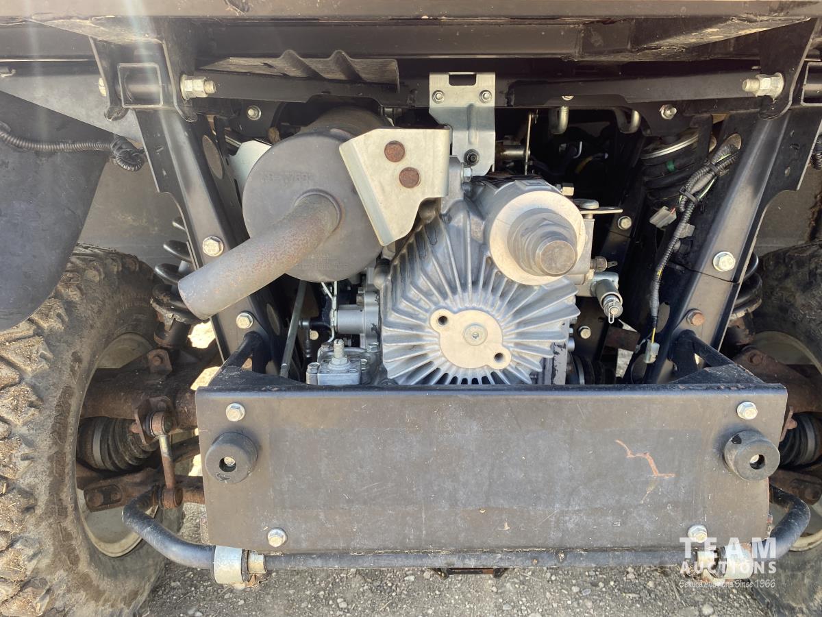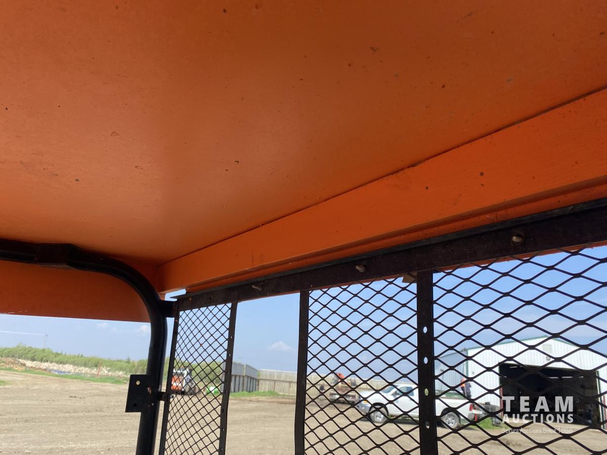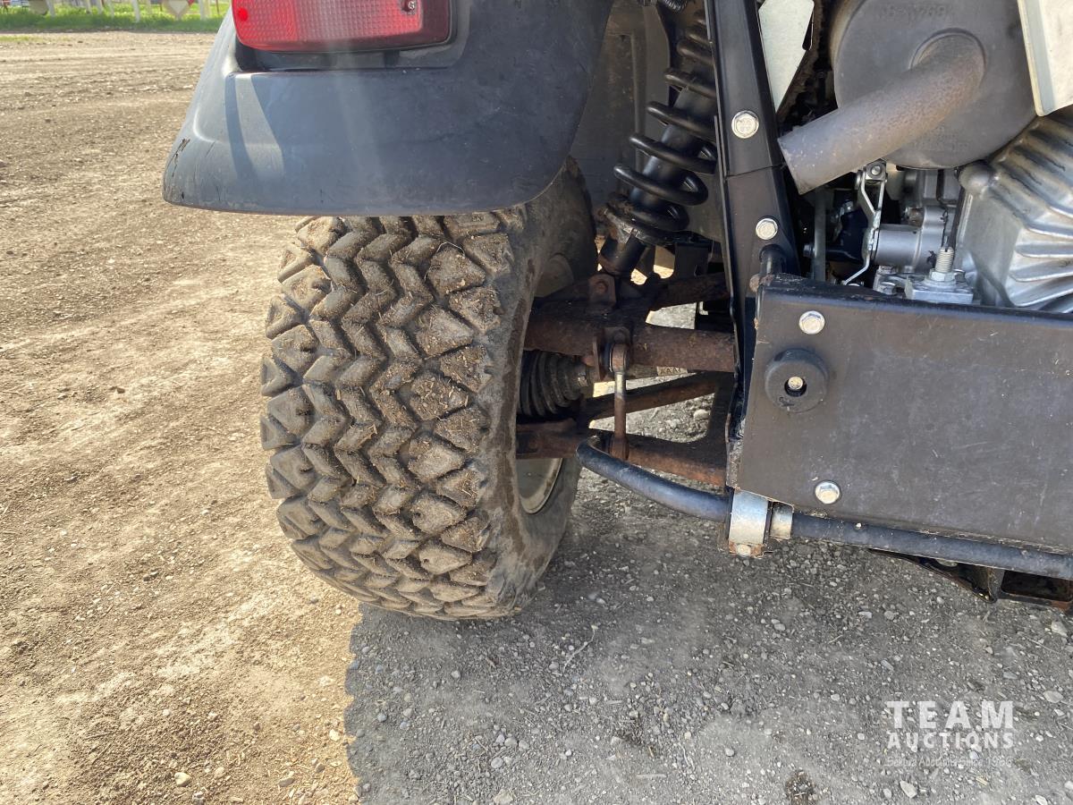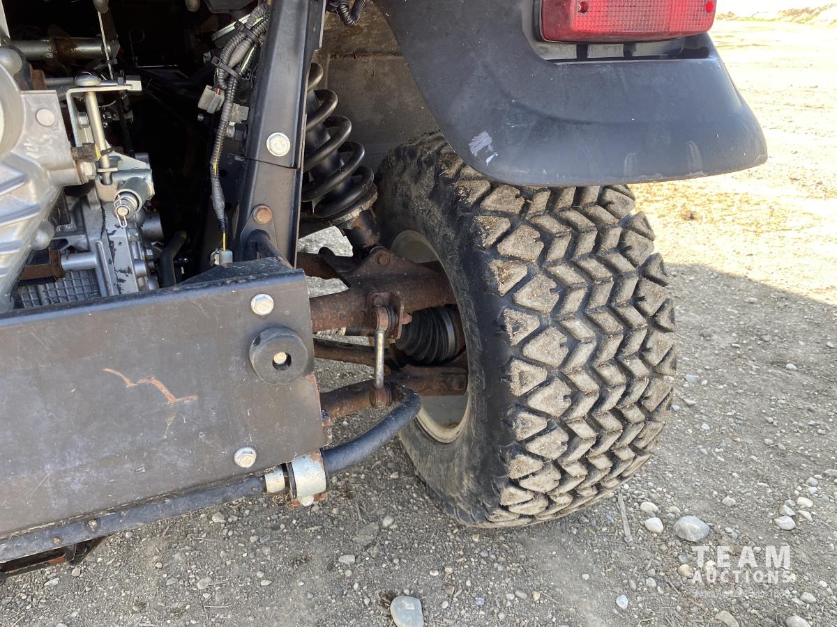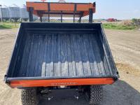 3 cylinder diesel engine, variable hydro transmission, power steering, differential lock, block heater, 43 inch X 60 inch manual dump box, custom built canopy, 25 x 10.00-12 NHS tires.