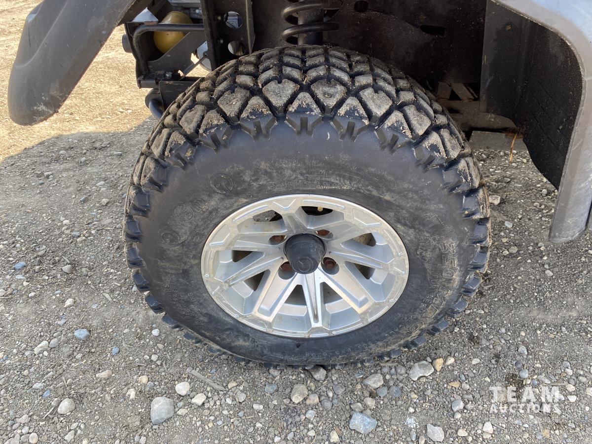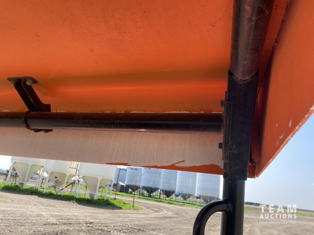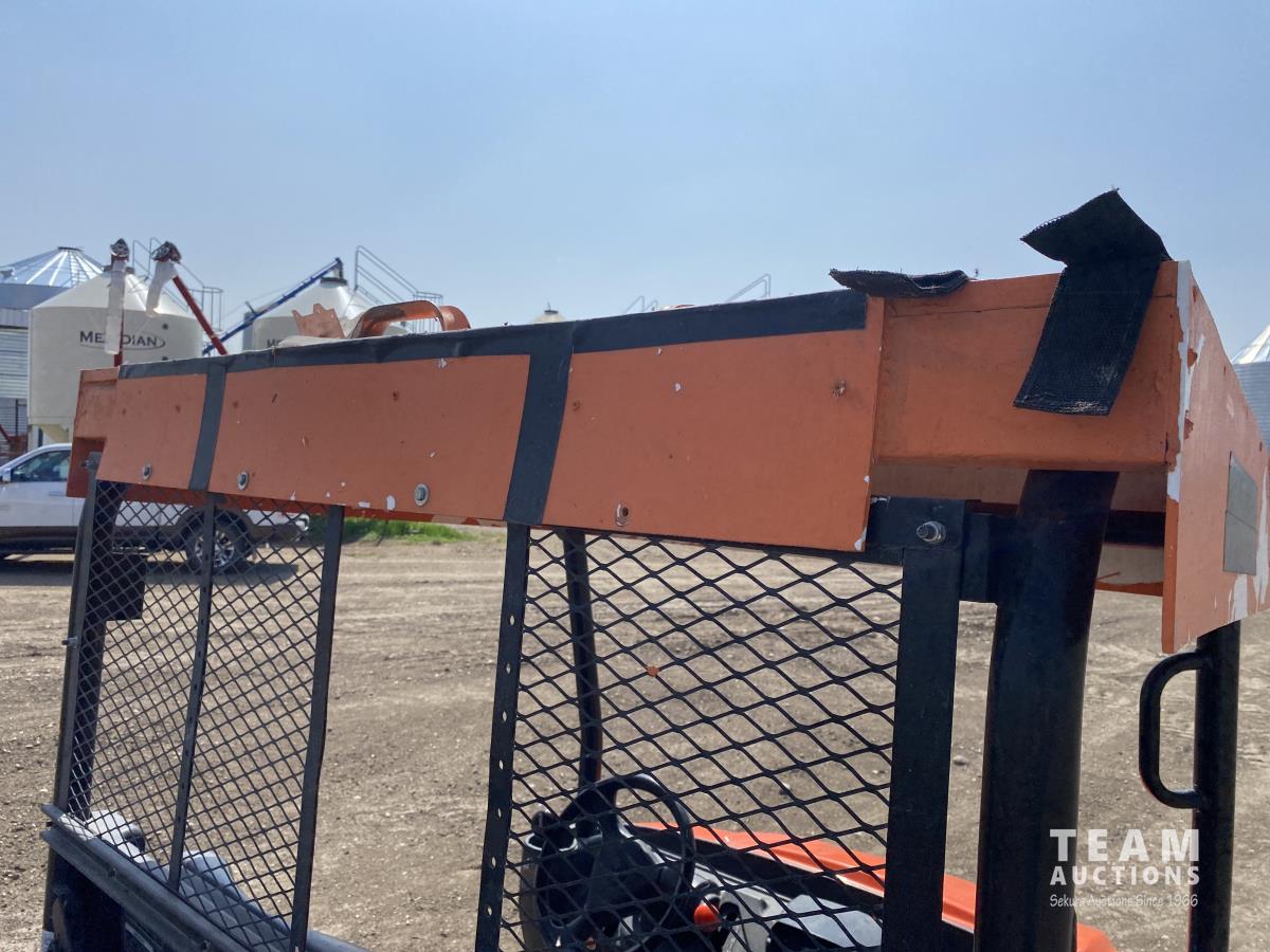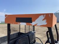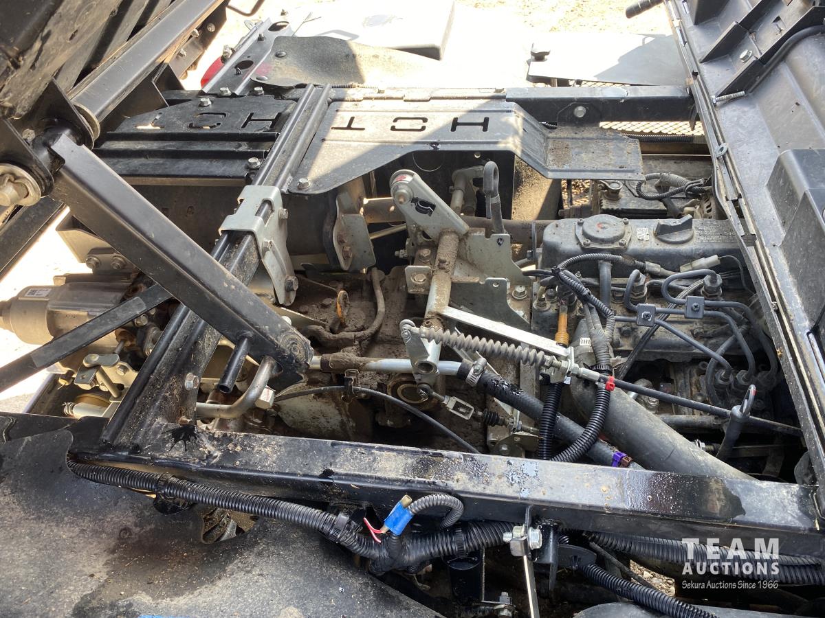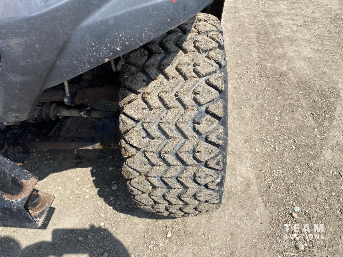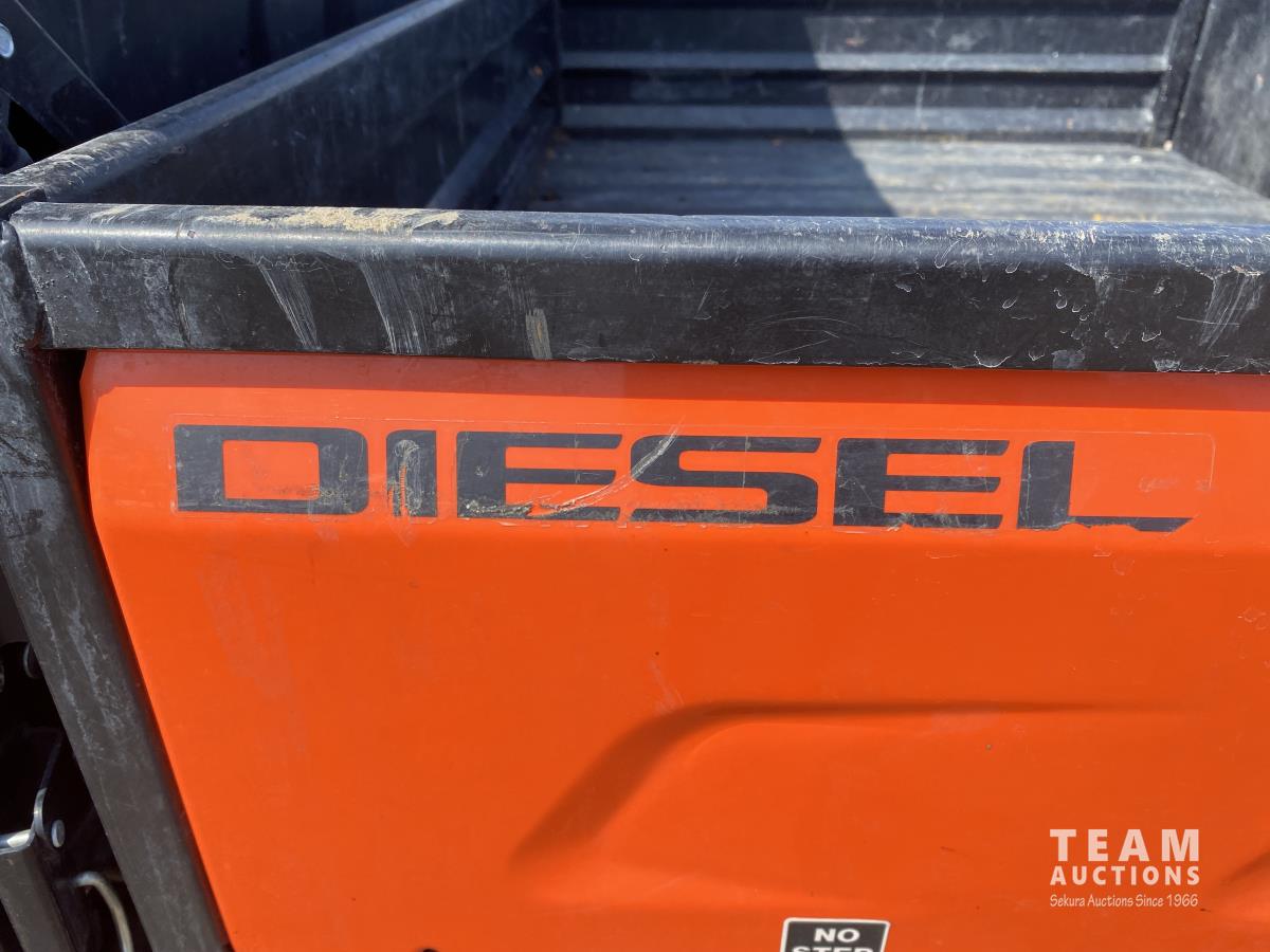 3 cylinder diesel engine, variable hydro transmission, power steering, differential lock, block heater, 43 inch X 60 inch manual dump box, custom built canopy, 25 x 10.00-12 NHS tires.