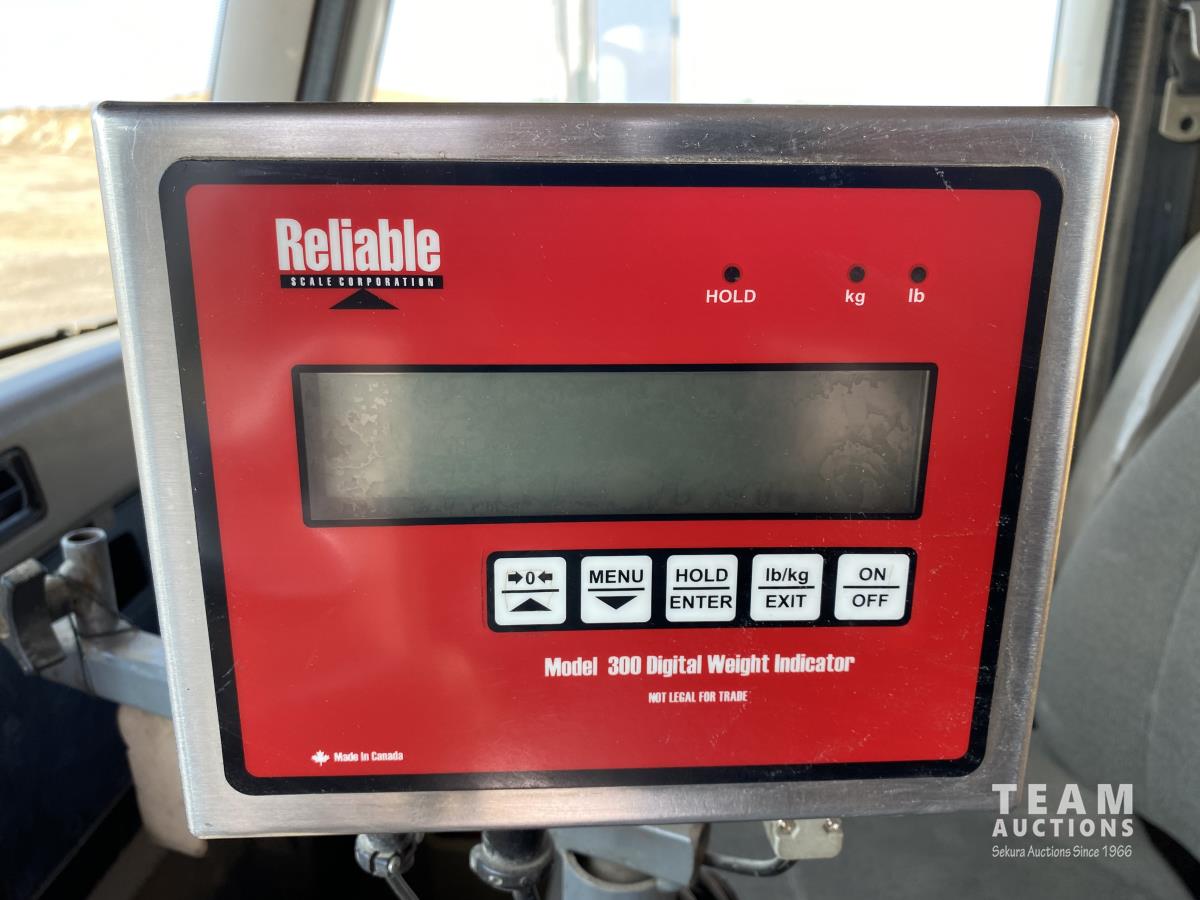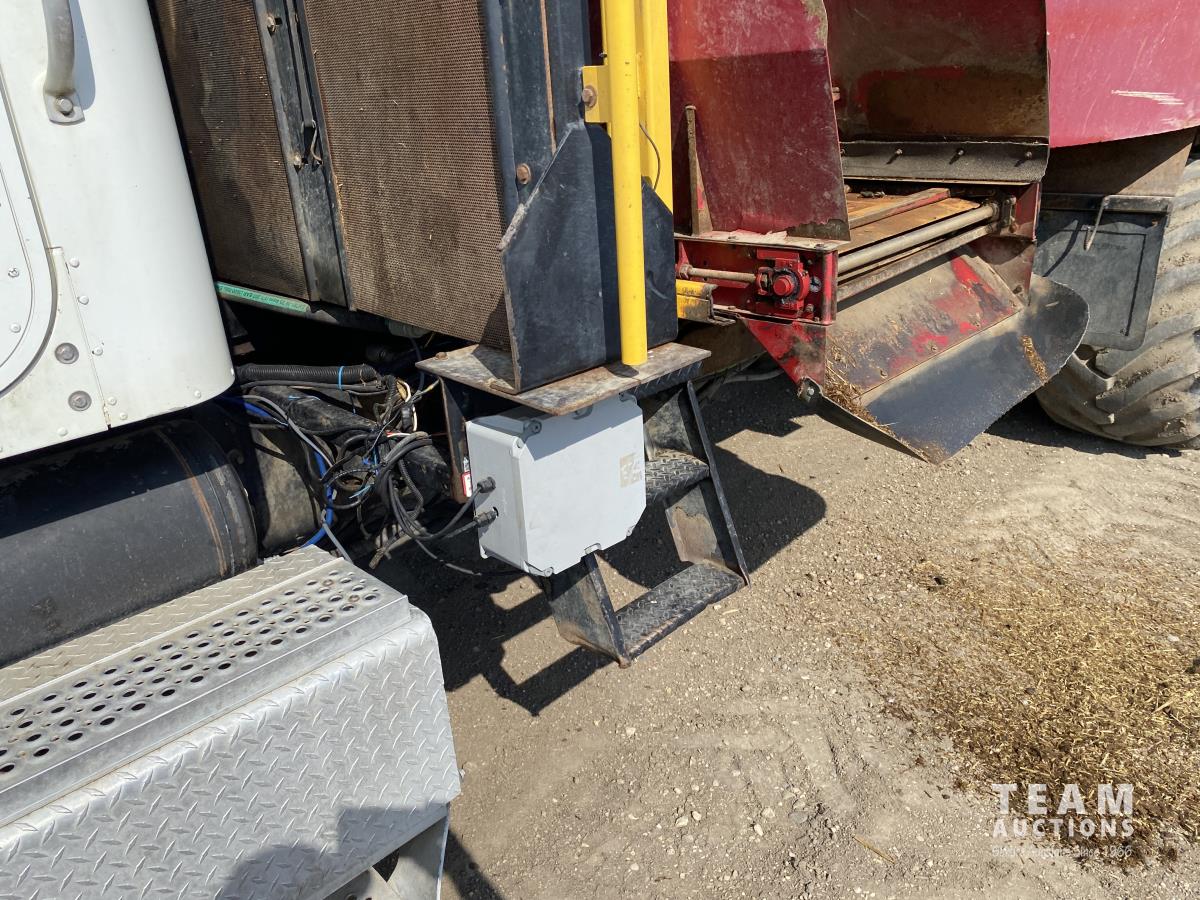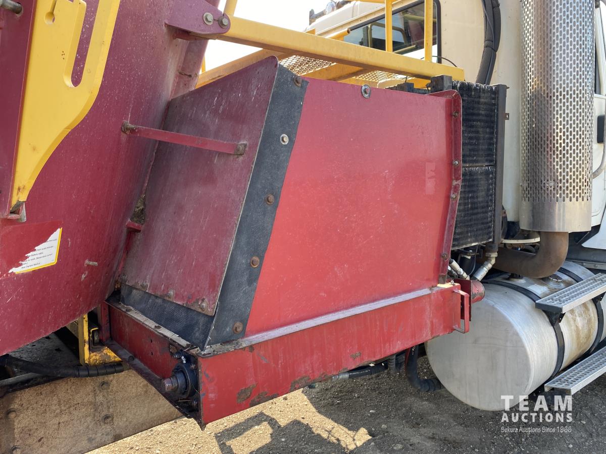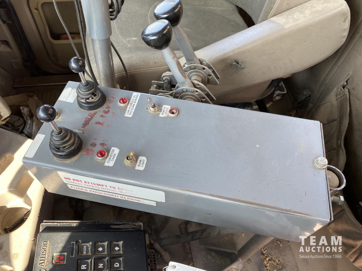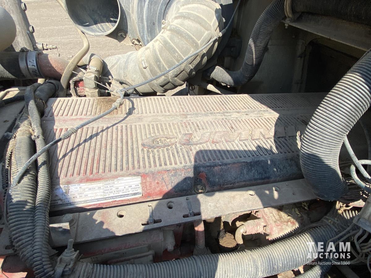 Cummins ISX02 6 cylinder 450 HP diesel engine, engine brake, Allison automatic transmission, cruise control, Supreme 1400TTM Feed Box, Reliable 300 cab scale, rubber block suspension, 10,433 lb front axle, 46,000 lb rear axles, diff lock, 244 inch WB, aluminum front wheels, 385/65R22.5 front tires, 700/40-22.5 rear tires