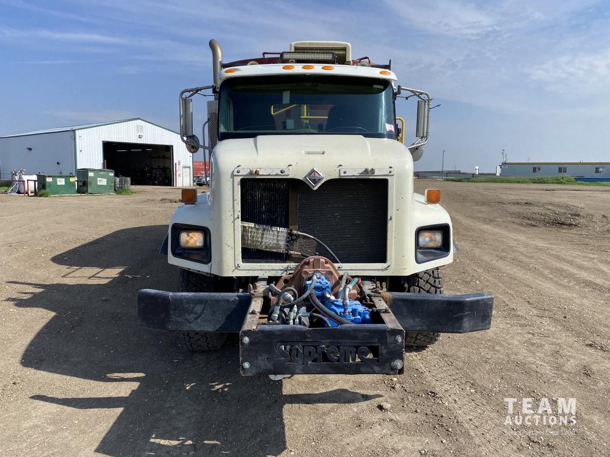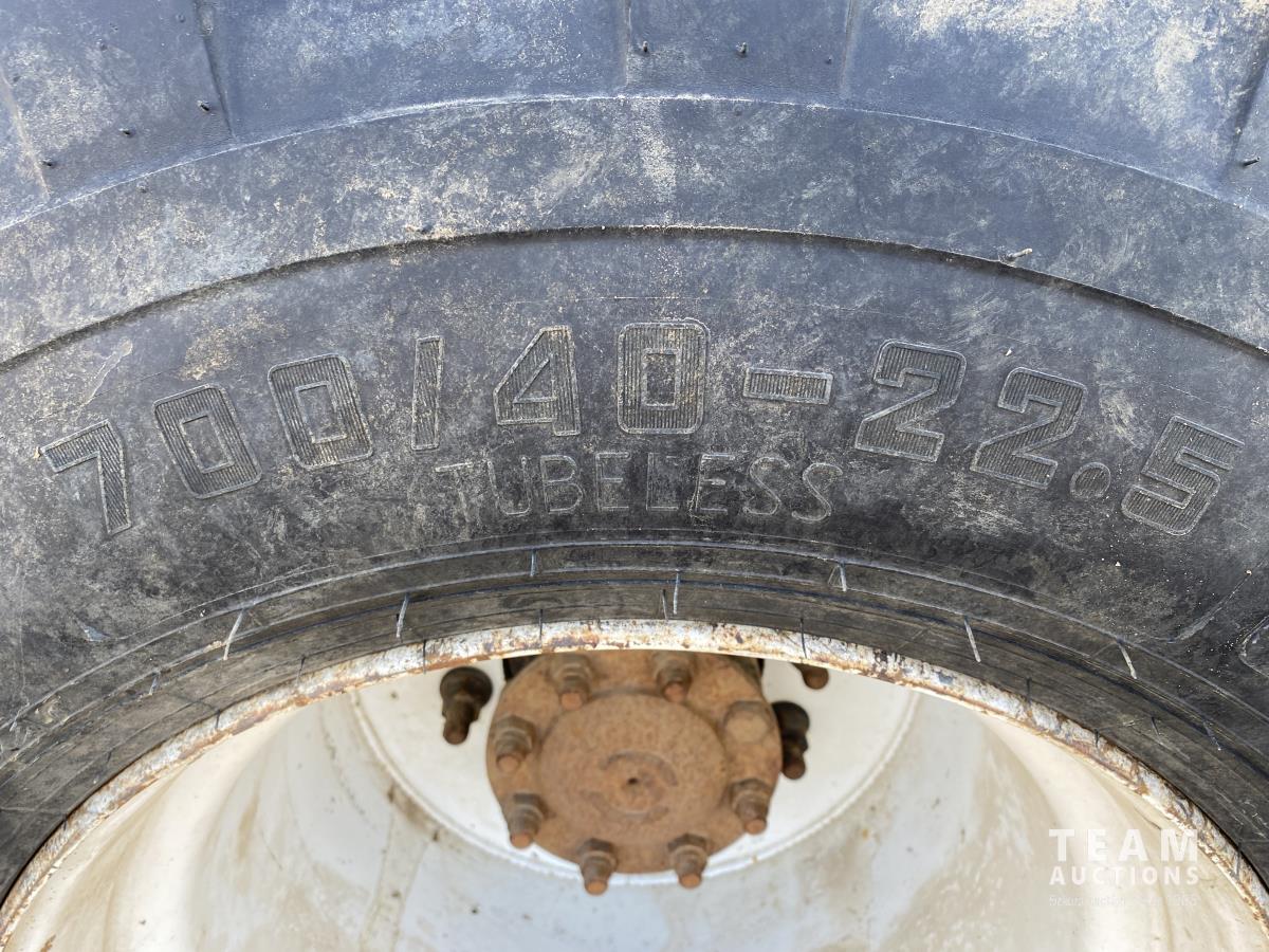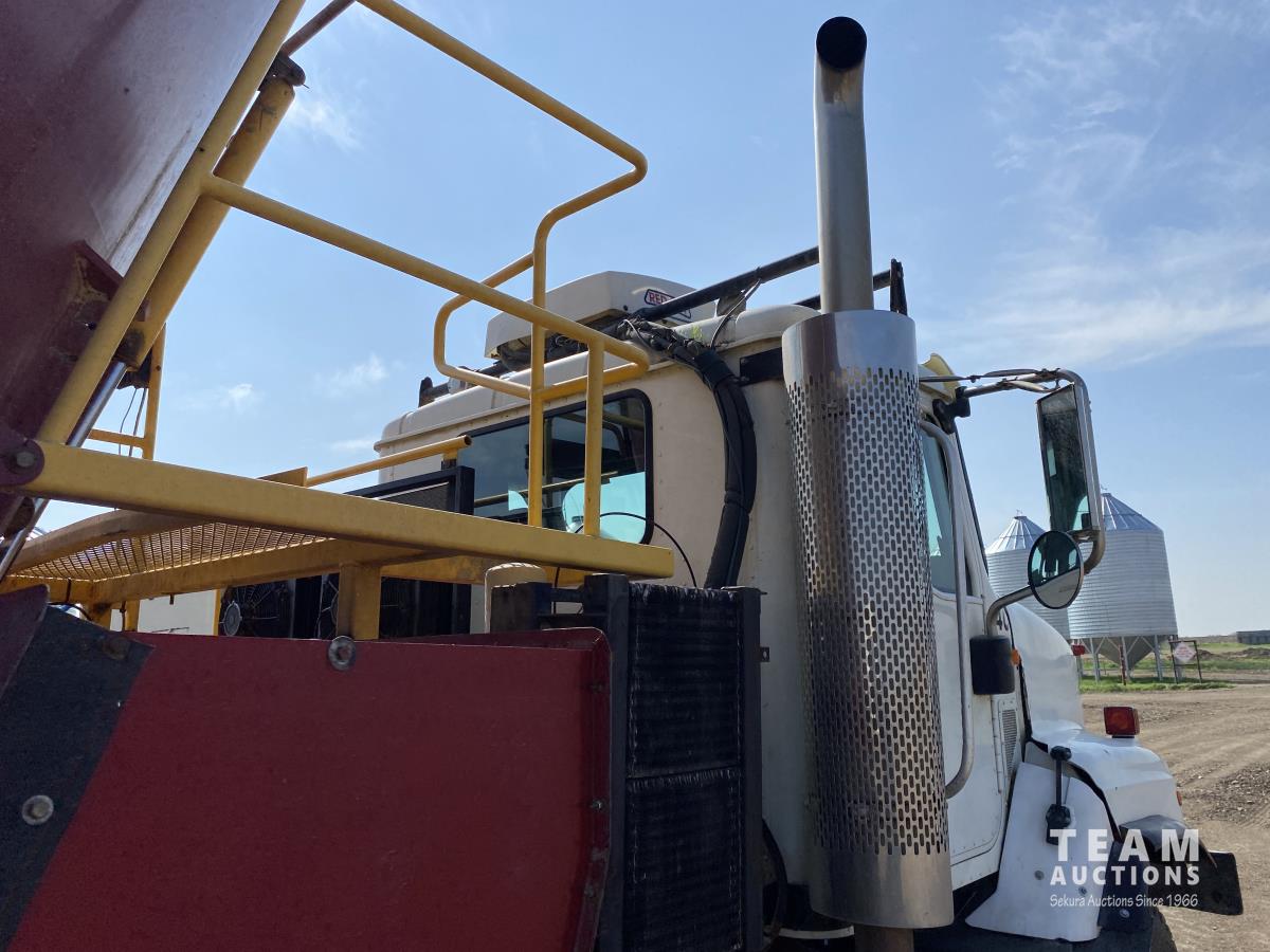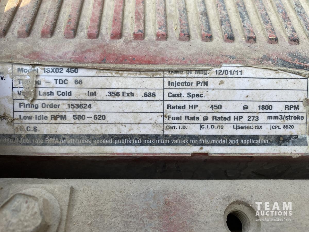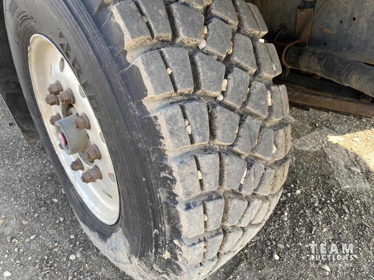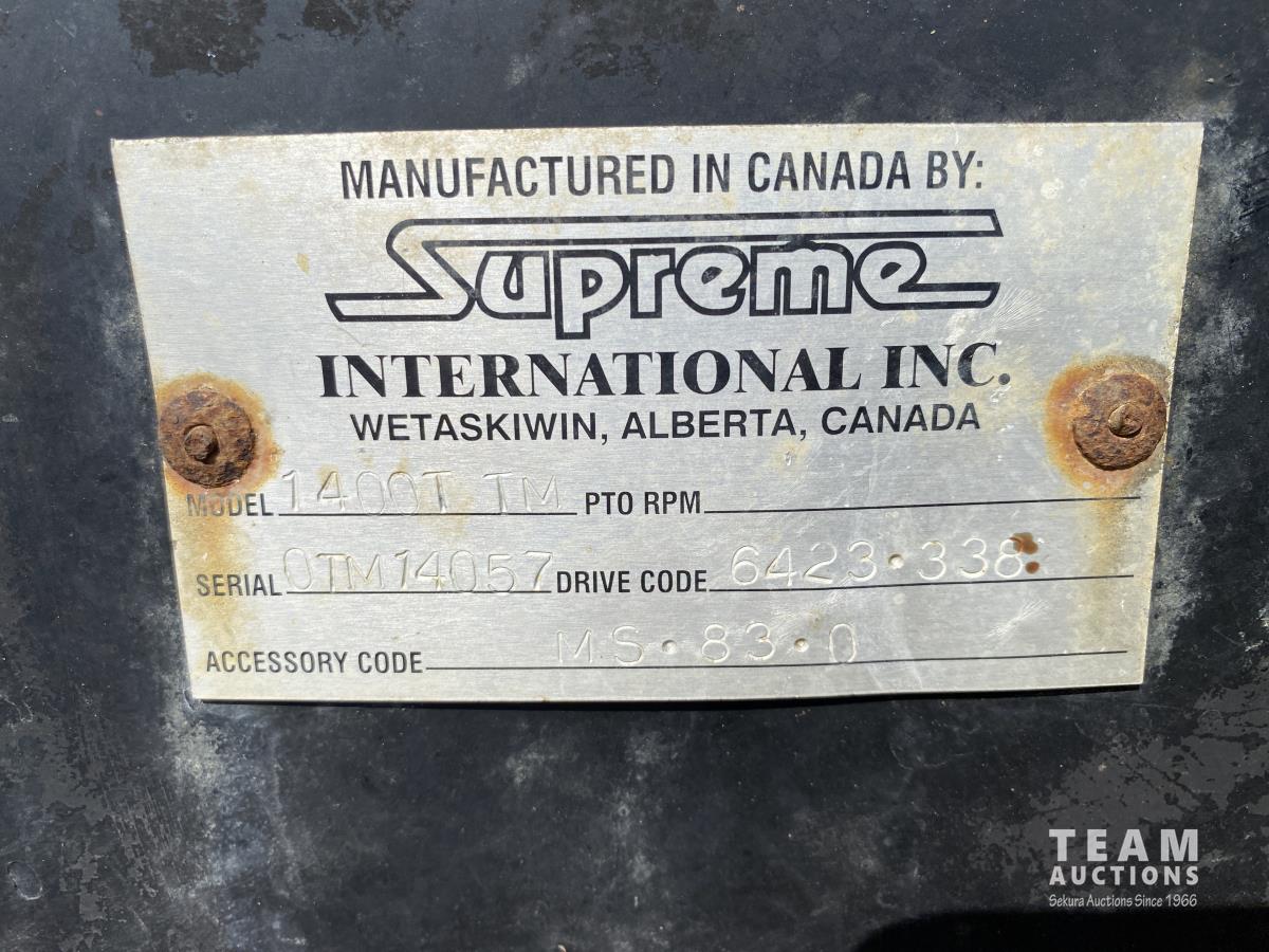 Cummins ISX02 6 cylinder 450 HP diesel engine, engine brake, Allison automatic transmission, cruise control, Supreme 1400TTM Feed Box, Reliable 300 cab scale, rubber block suspension, 10,433 lb front axle, 46,000 lb rear axles, diff lock, 244 inch WB, aluminum front wheels, 385/65R22.5 front tires, 700/40-22.5 rear tires