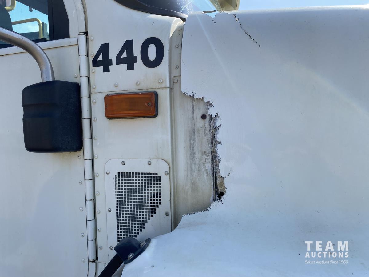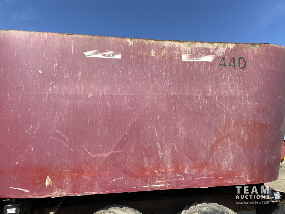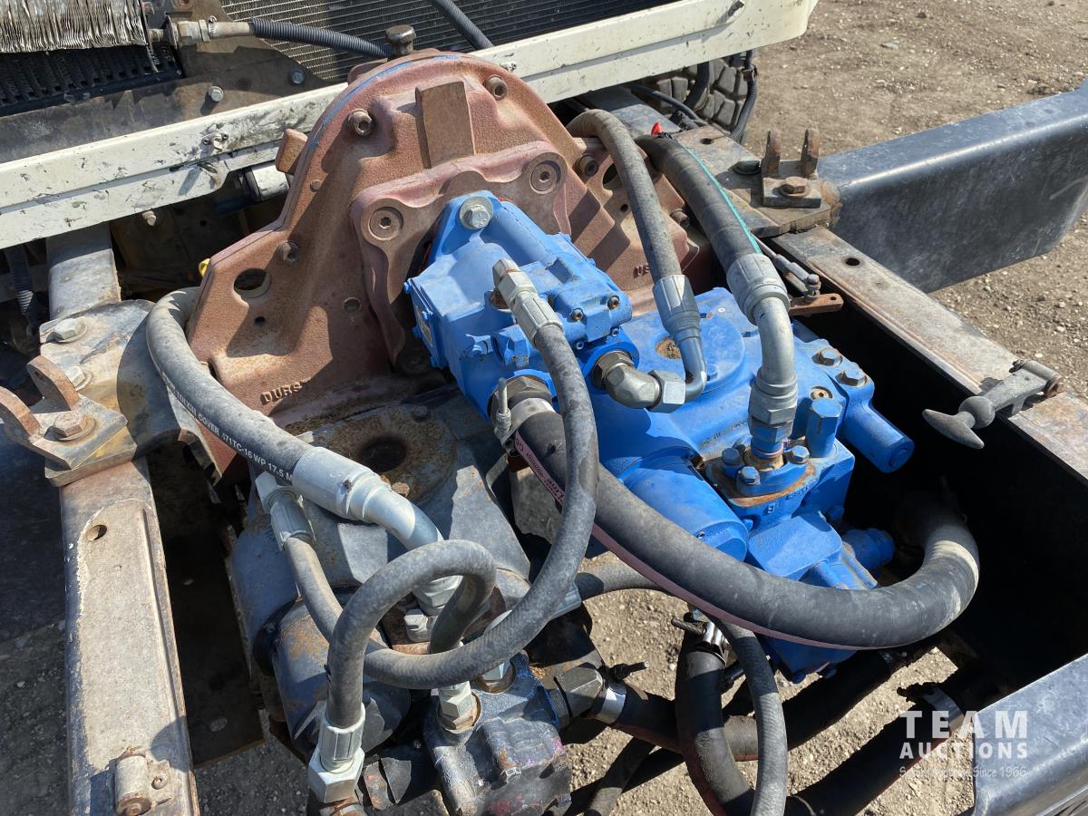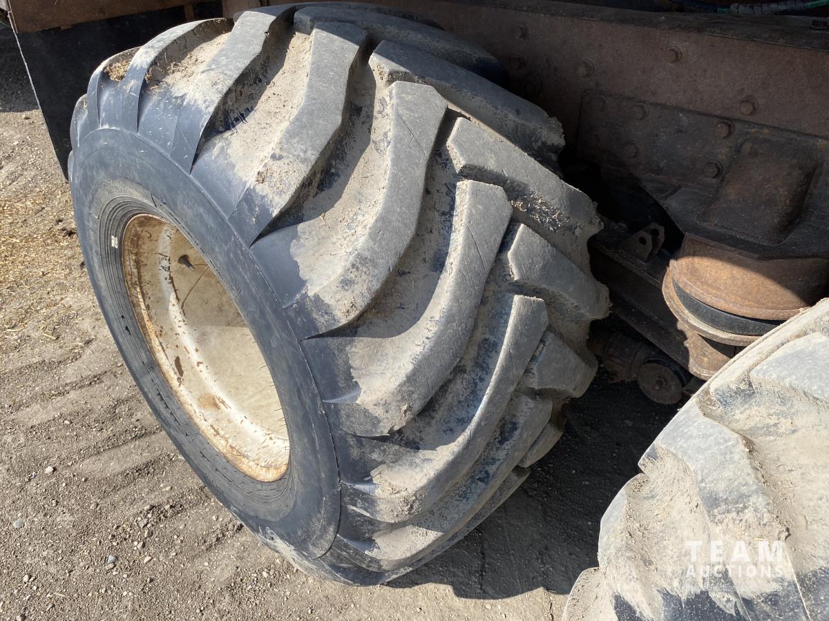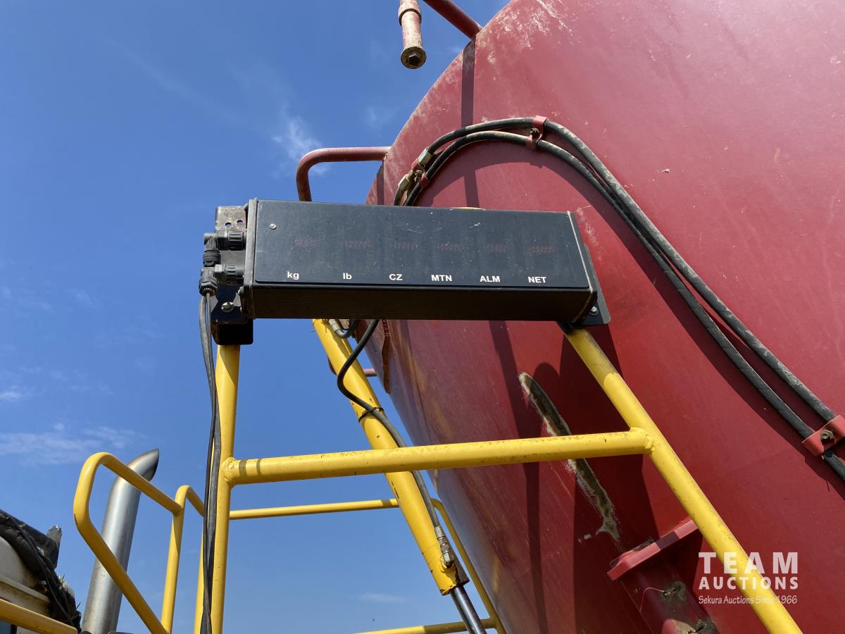 Cummins ISX02 6 cylinder 450 HP diesel engine, engine brake, Allison automatic transmission, cruise control, Supreme 1400TTM Feed Box, Reliable 300 cab scale, rubber block suspension, 10,433 lb front axle, 46,000 lb rear axles, diff lock, 244 inch WB, aluminum front wheels, 385/65R22.5 front tires, 700/40-22.5 rear tires