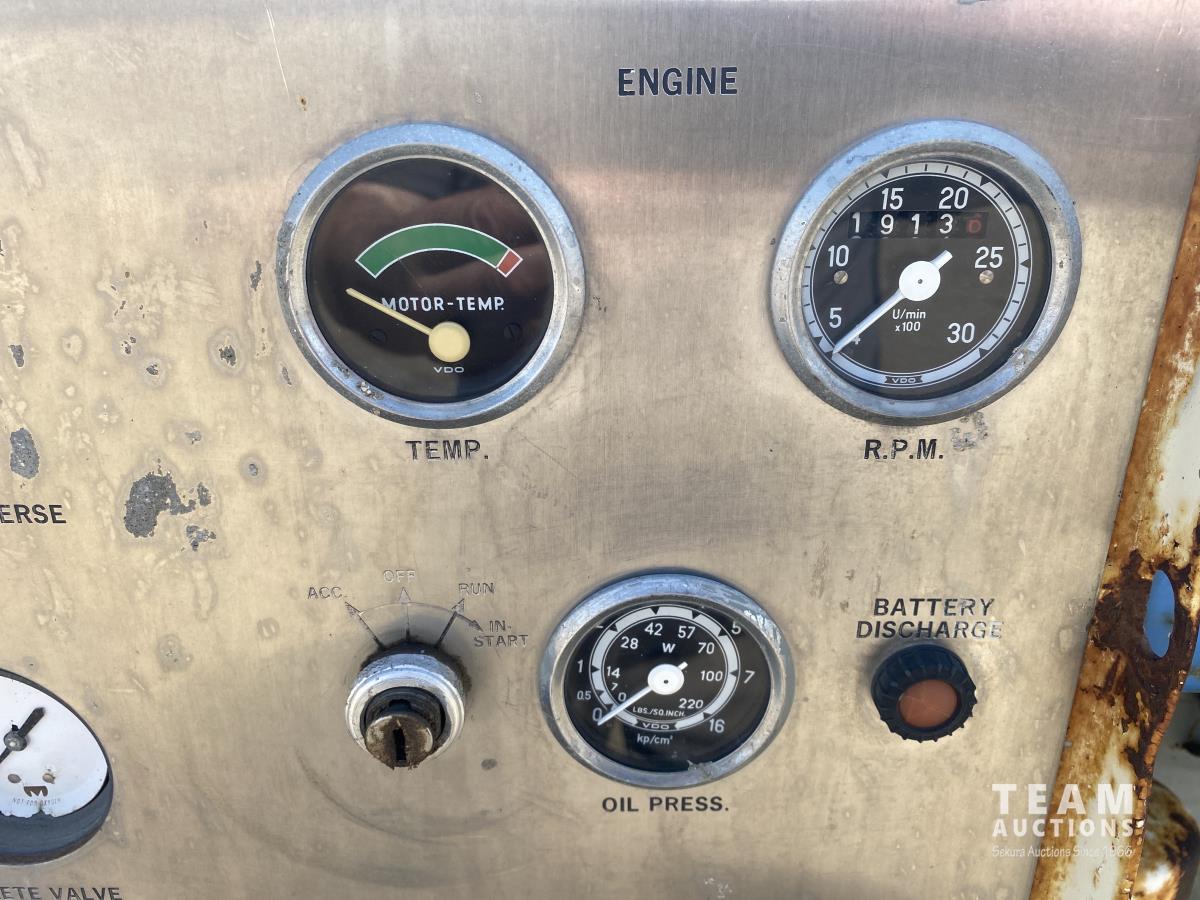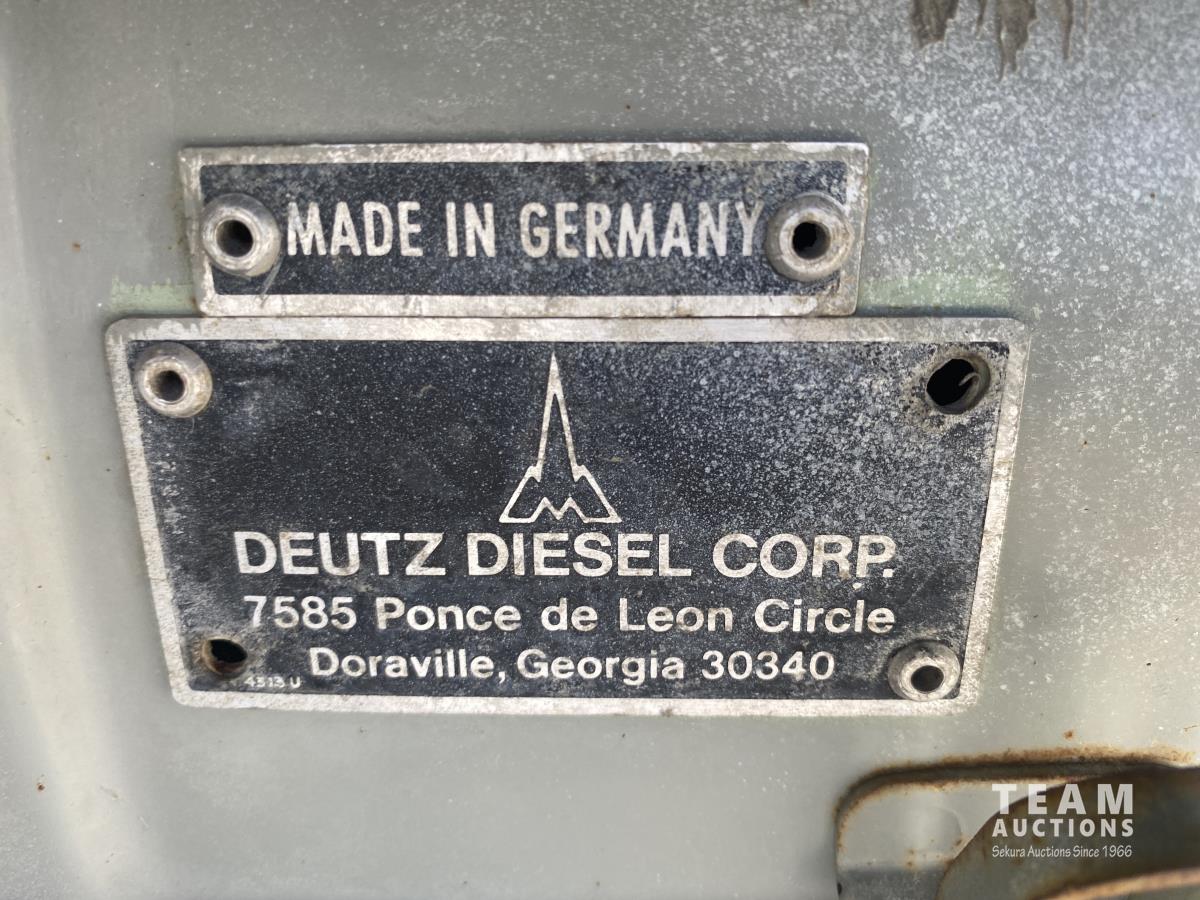 6 cylinder Deutz air cooled diesel engine, electric start, 6 inch rear discharge, control panel, dual front jacks, 8.25-15 TR tires.