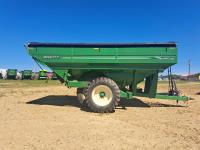 Big 1000 PTO, 20 inch discharge auger, road lights, roll tarp, walking axles, 520/85D38 tires