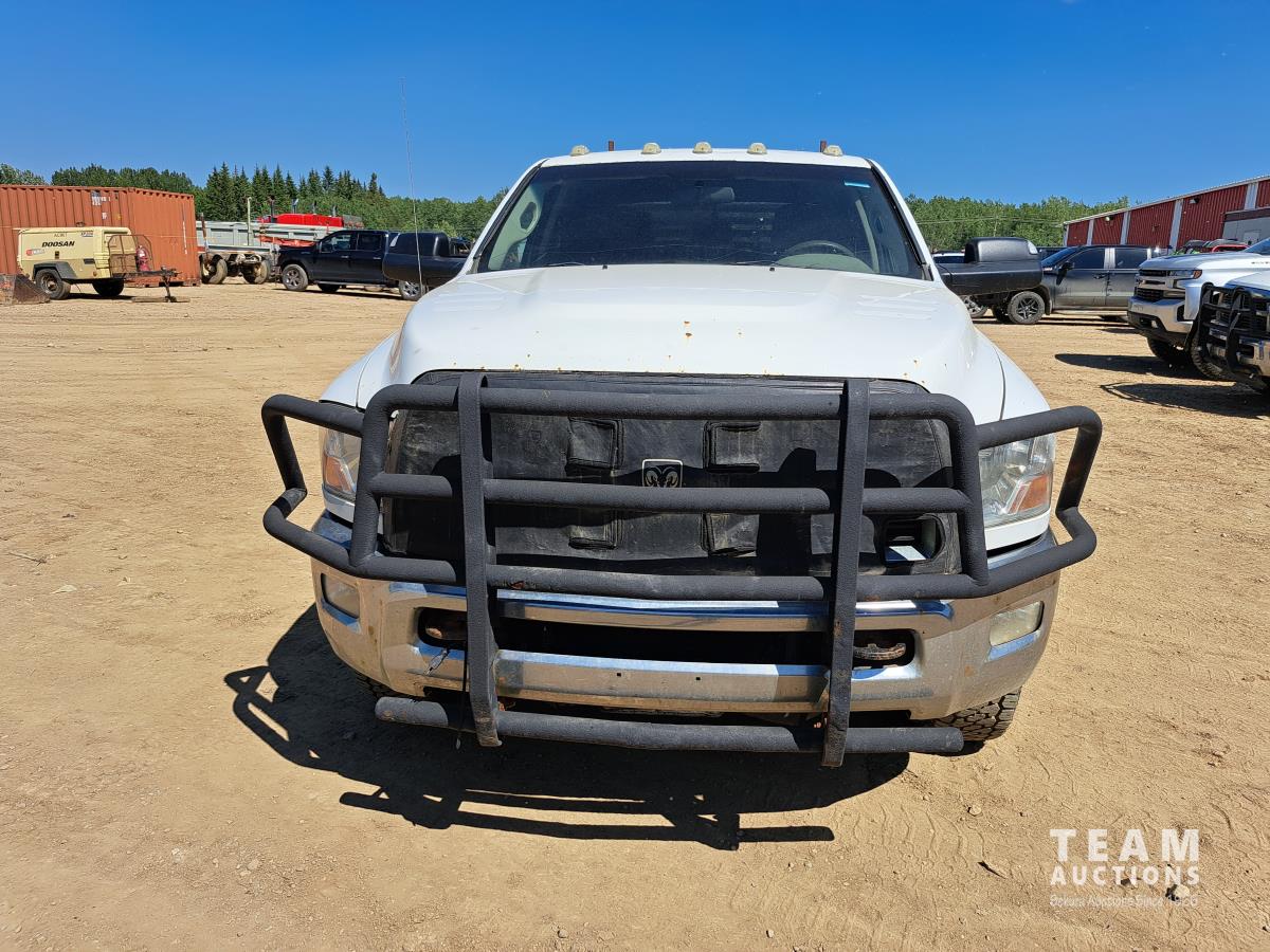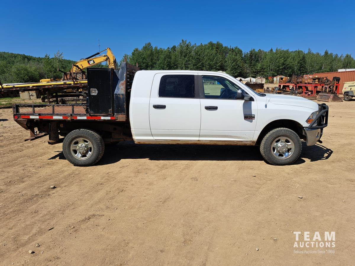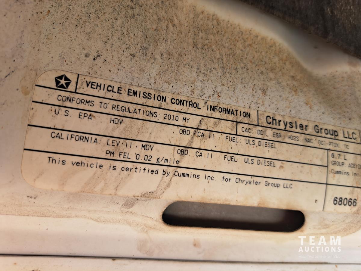 6.7 L, 6 cylinder, diesel, automatic transmission, P/W, P/L, A/C, Mega cab, 80 inch wide x 86 inch long flat deck, (2) tool cabinets, 2" receiver hitch, backup beeper, positive air shut off, grill guard bumper, rear air bags, 265/70R17 tires