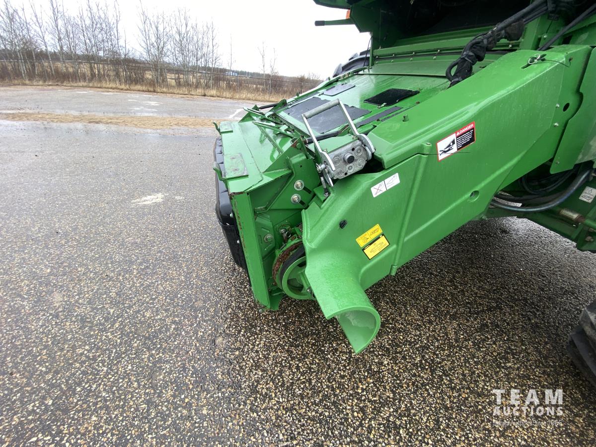 variable speed reel, auto header height, fore & aft, reverser, rock trap, yield & moisture, fine cut chopper/spreader, grain tank extensions, 22 ft auger, A/C, air ride seat, buddy seat, topper, GS1 display , hydraulic rear wheel drive, 800/65R32 front tires, 480/85R26 rear tires
