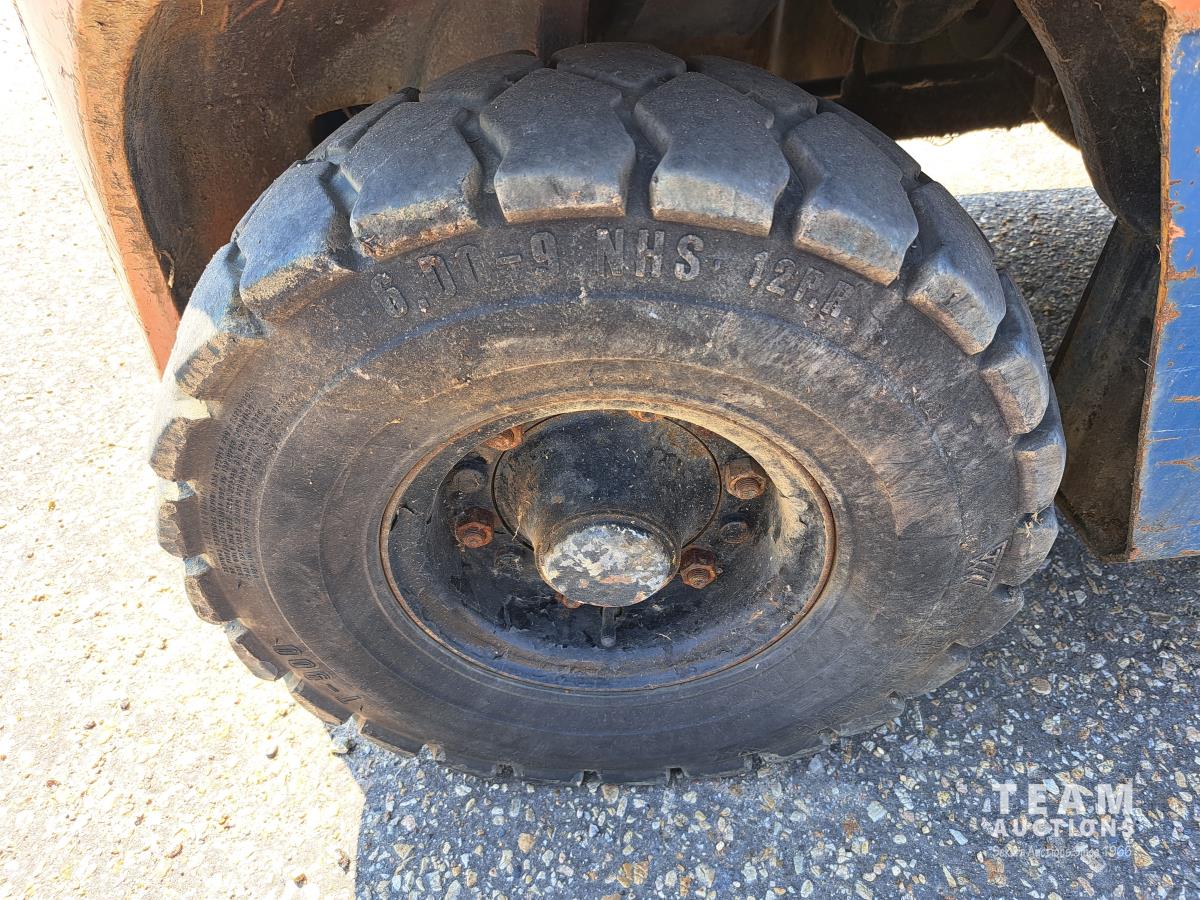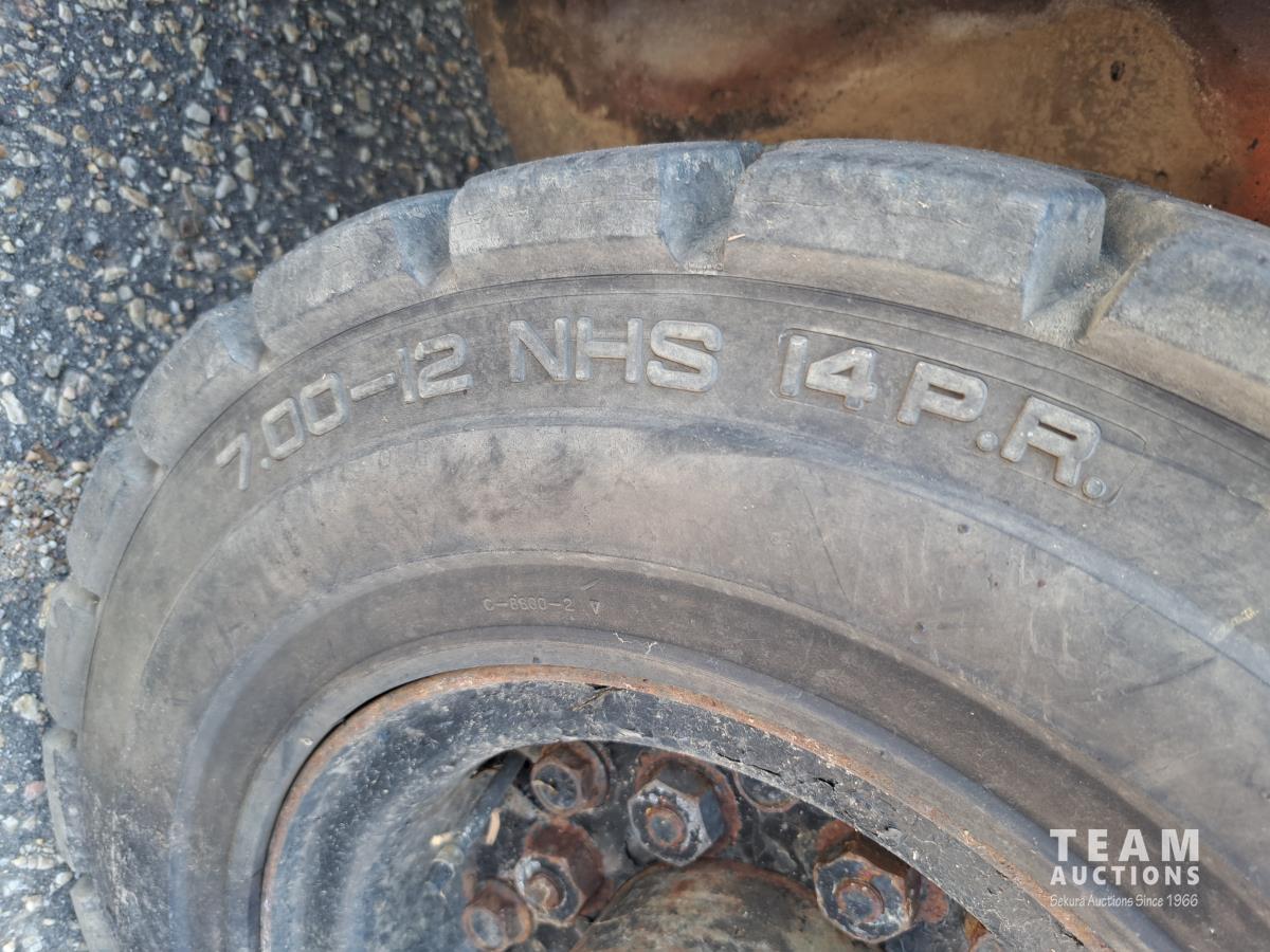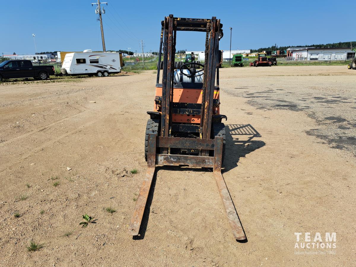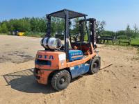 4 cylinder engine on propane, 2 speed, 115 inch lift, canopy, 7.00-12 front, 6.00-9 rear tires