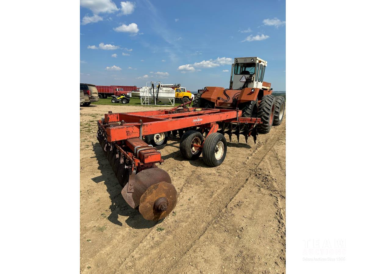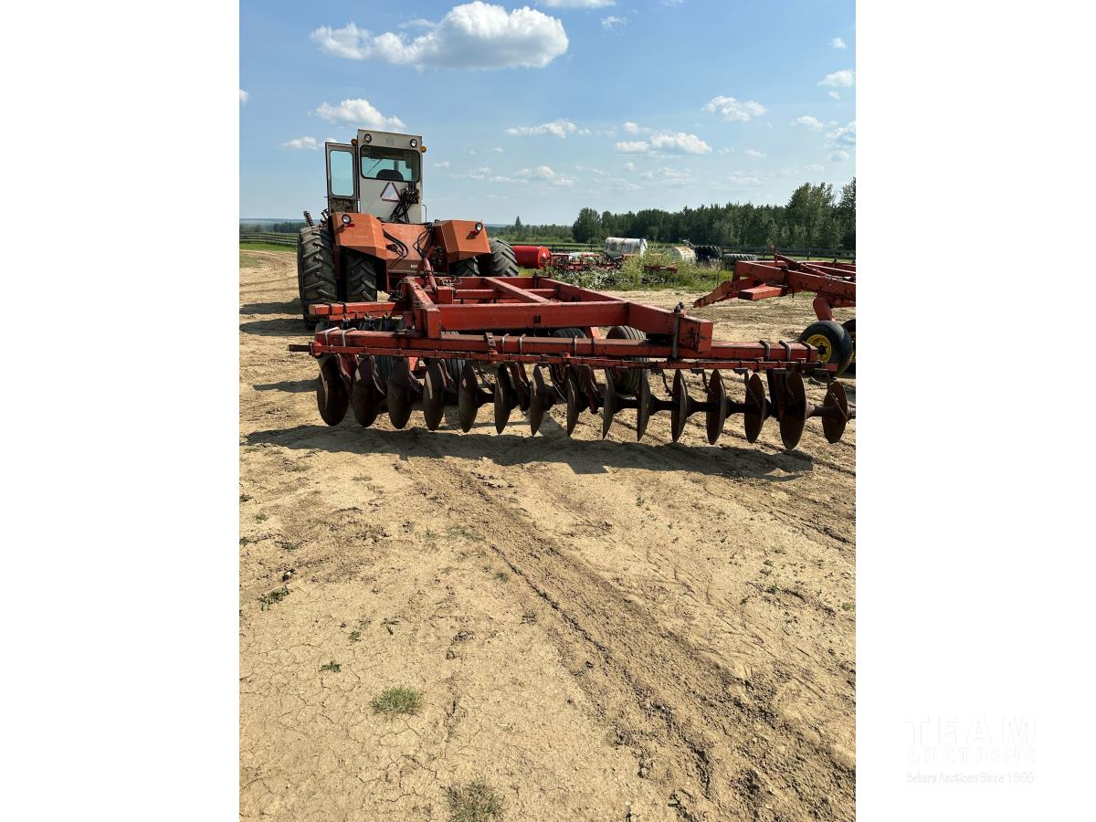 9 inch front spacing, 22 inch new front discs, 11 inch rear spacing, 23 inch discs, 11L-15 duals, plus (1) Hutch Master 12 ft offset disc for parts