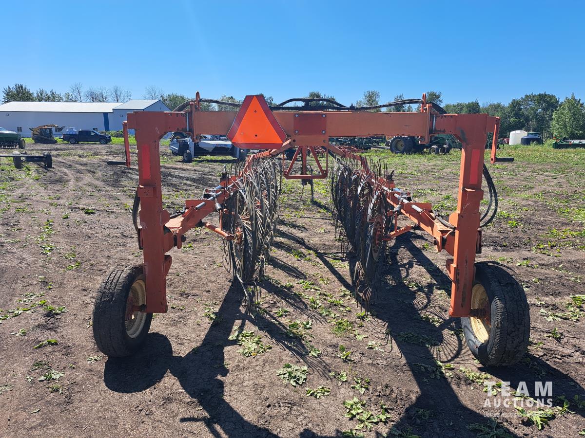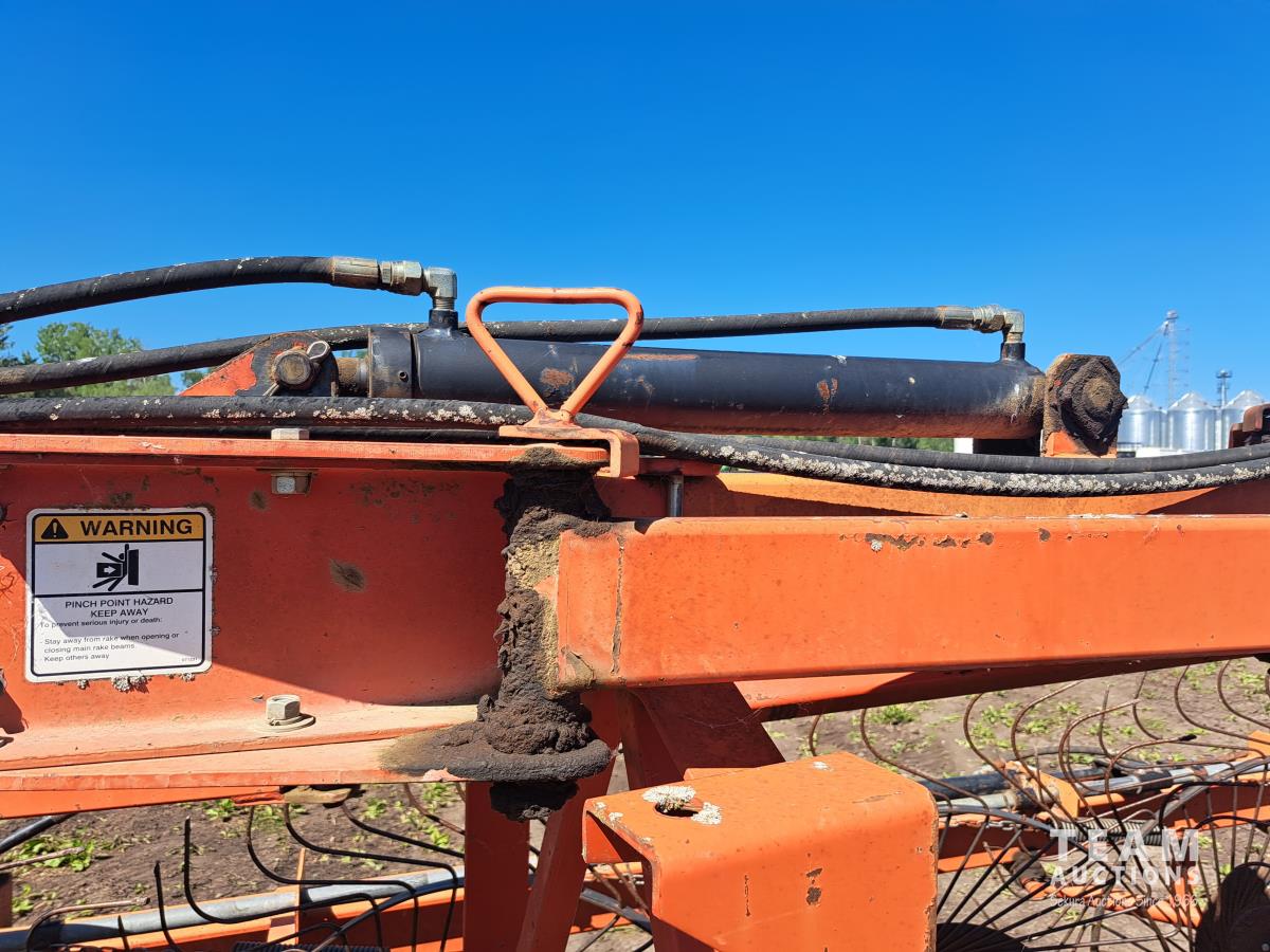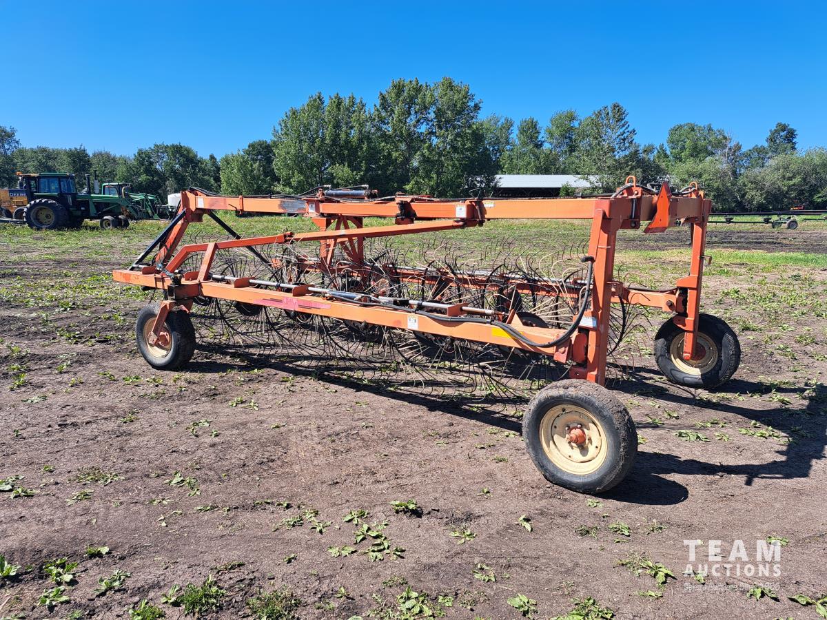 hydraulic fold, manual rear width opening adjustment, 24 ft 6 inch max raking width, 205/R15 tires