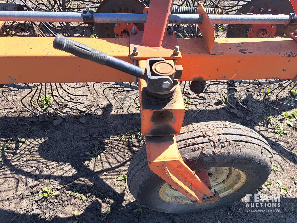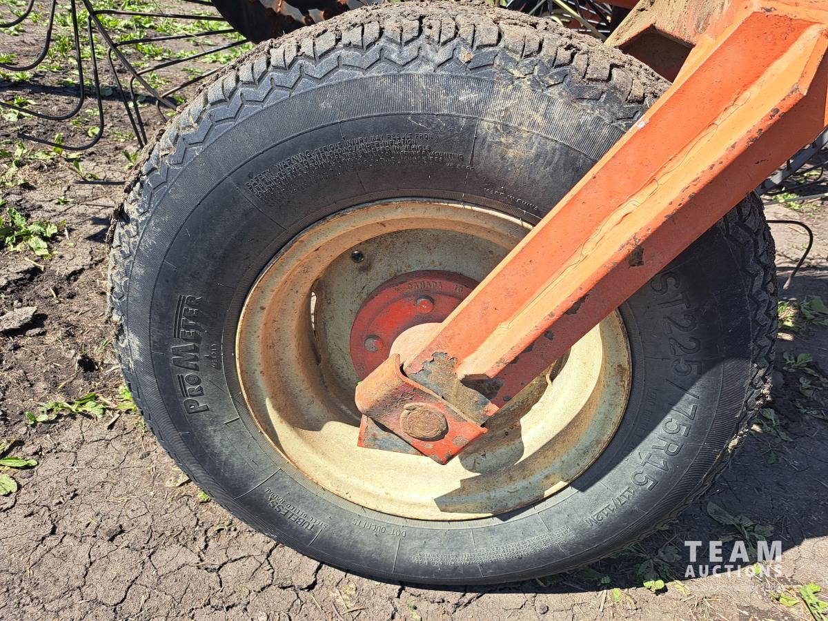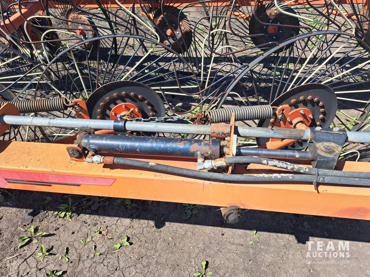 hydraulic fold, manual rear width opening adjustment, 24 ft 6 inch max raking width, 205/R15 tires