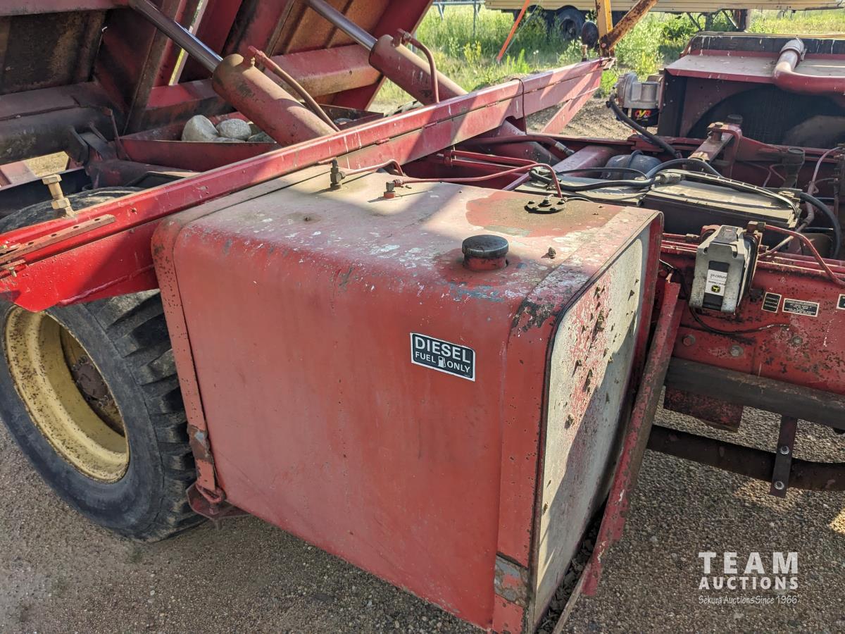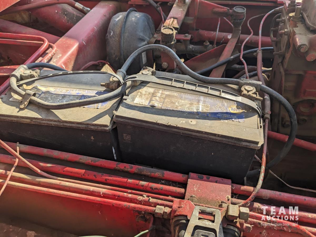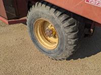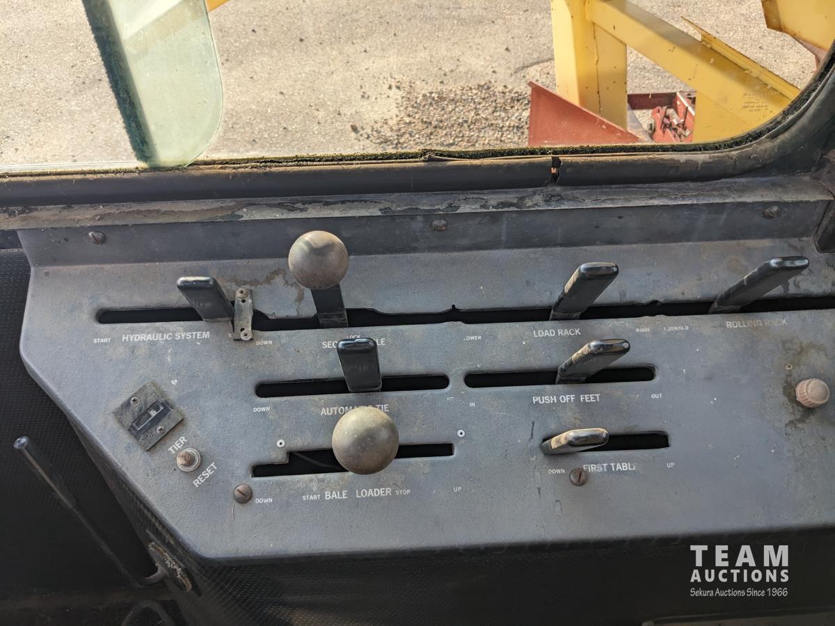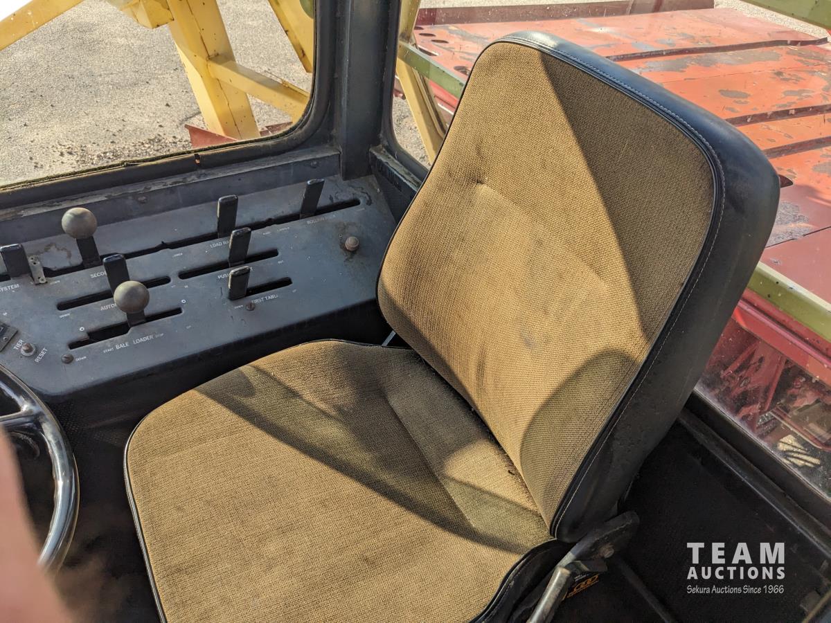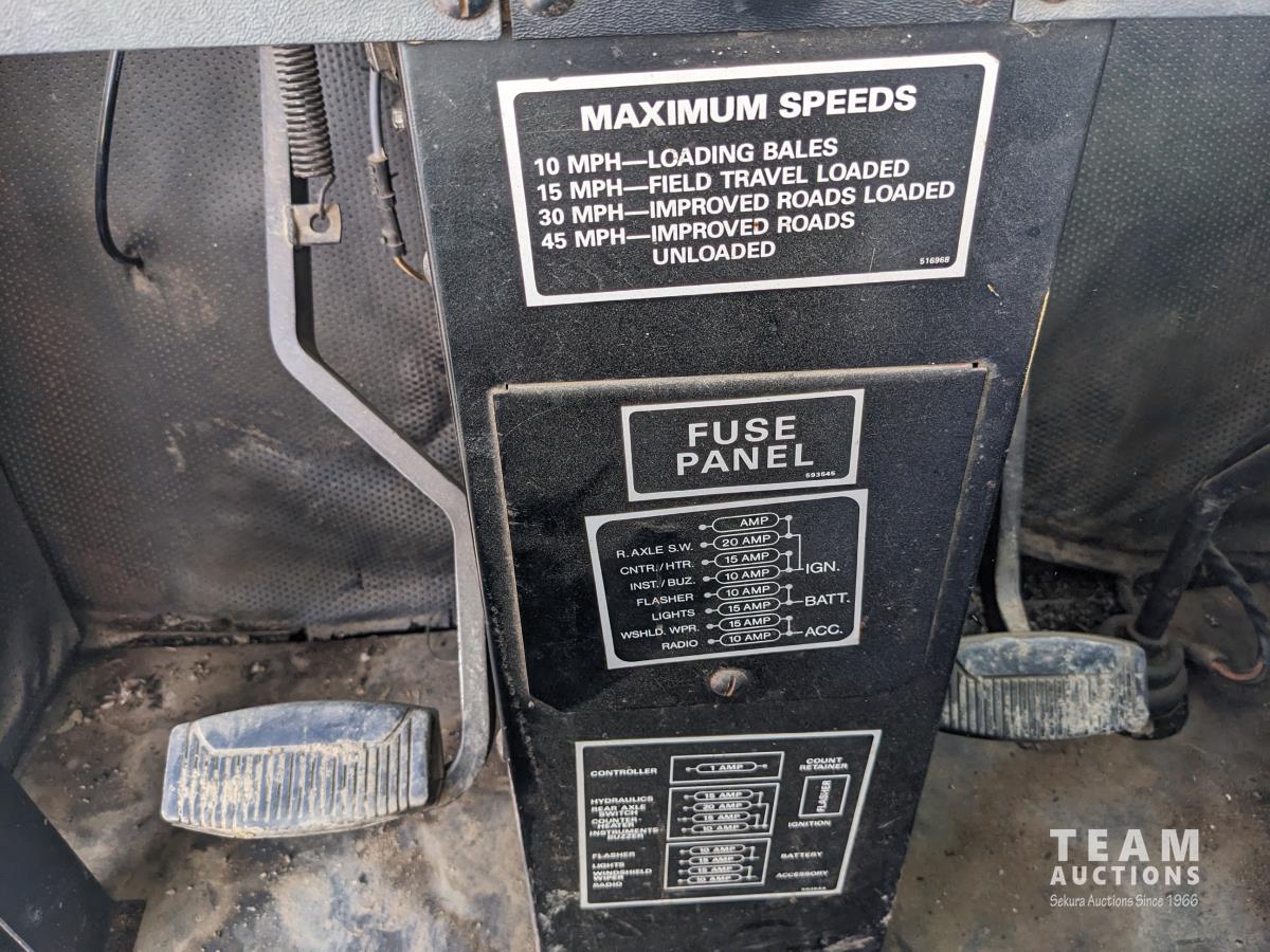Perkins 6 cylinder diesel engine, 5 speed transmission, 2 speed axle, AC, auto tier tie, 160 bale capacity, 36X16-17.5 front, 40X19-19.5 rear tires
