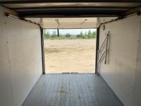 Ford V8 diesel engine, automatic transmission, 16 ft van, 90 inch high, spring suspension, staircase with railing. slide out ramp, 2 inch receiver hitch, roll up rear door,, 225/70R19.5 front tires