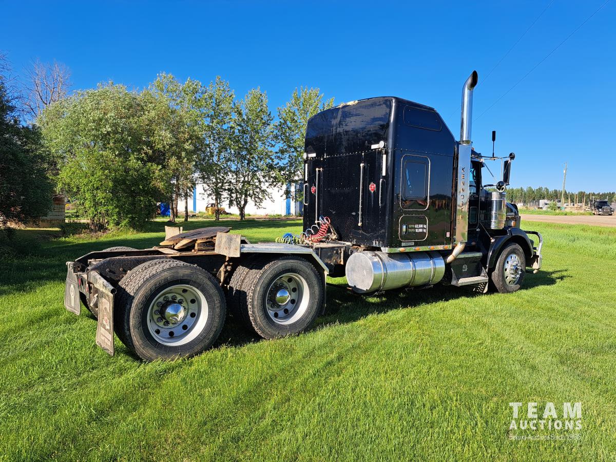 Caterpillar C15 ACERT 6 cylinder diesel engine, engine brake, Eaton Fuller RTLO18918B 18 speed manual transmission, mid rise 62 inch sleeper, A/C, cruise control, air ride seats, 12,000 lb front axle, 46,000 lb rear axles, full lockers, 3.91 ratio, 234 inch WB, Kenworth 8 Bag Air Ride Suspension , all aluminum wheels, 11R24.5 tires