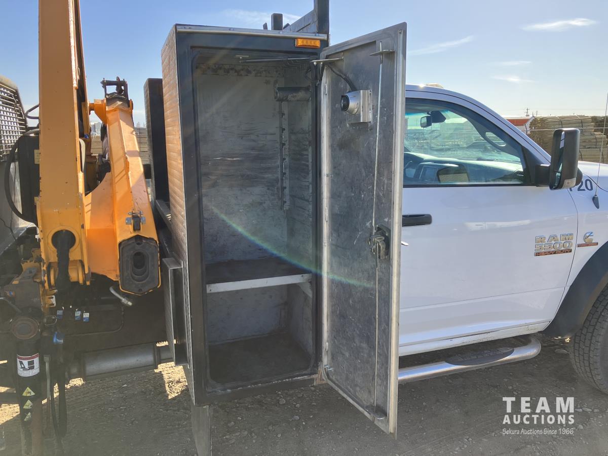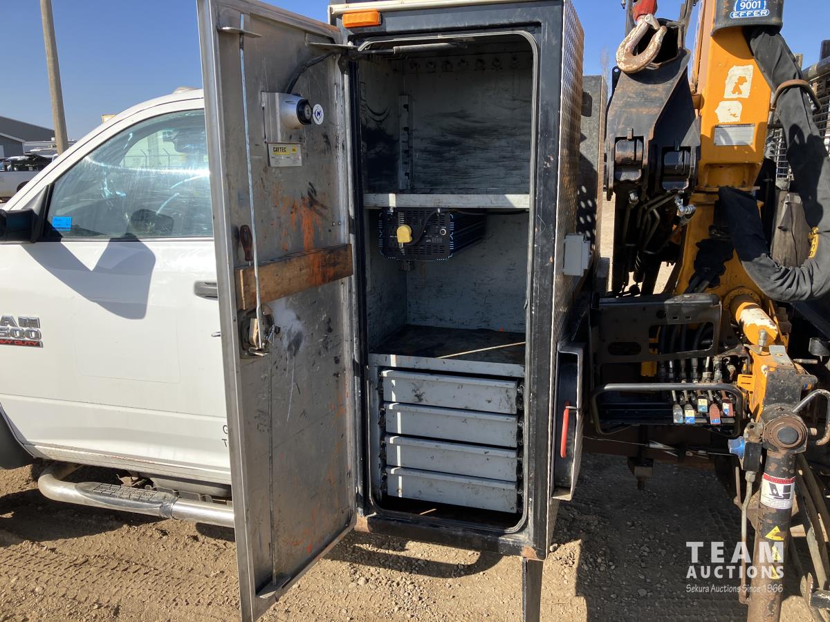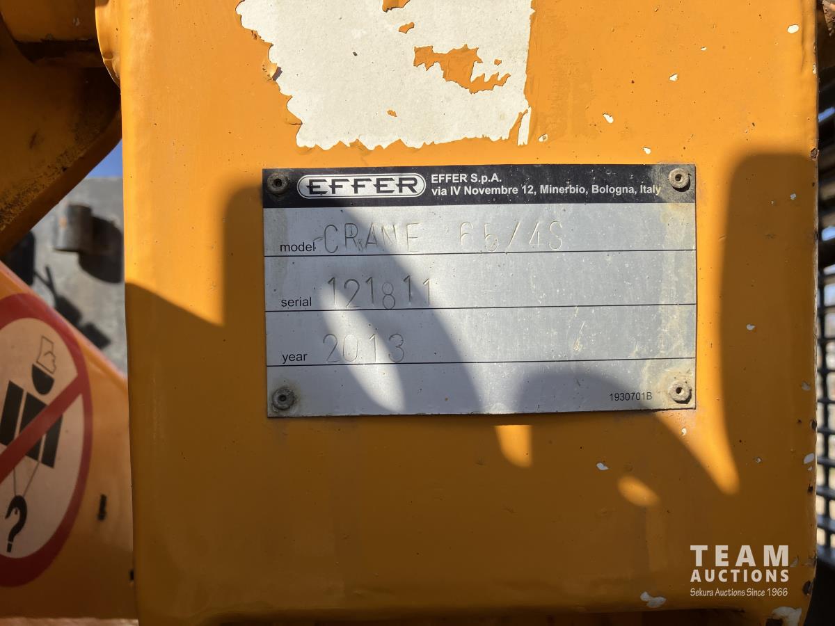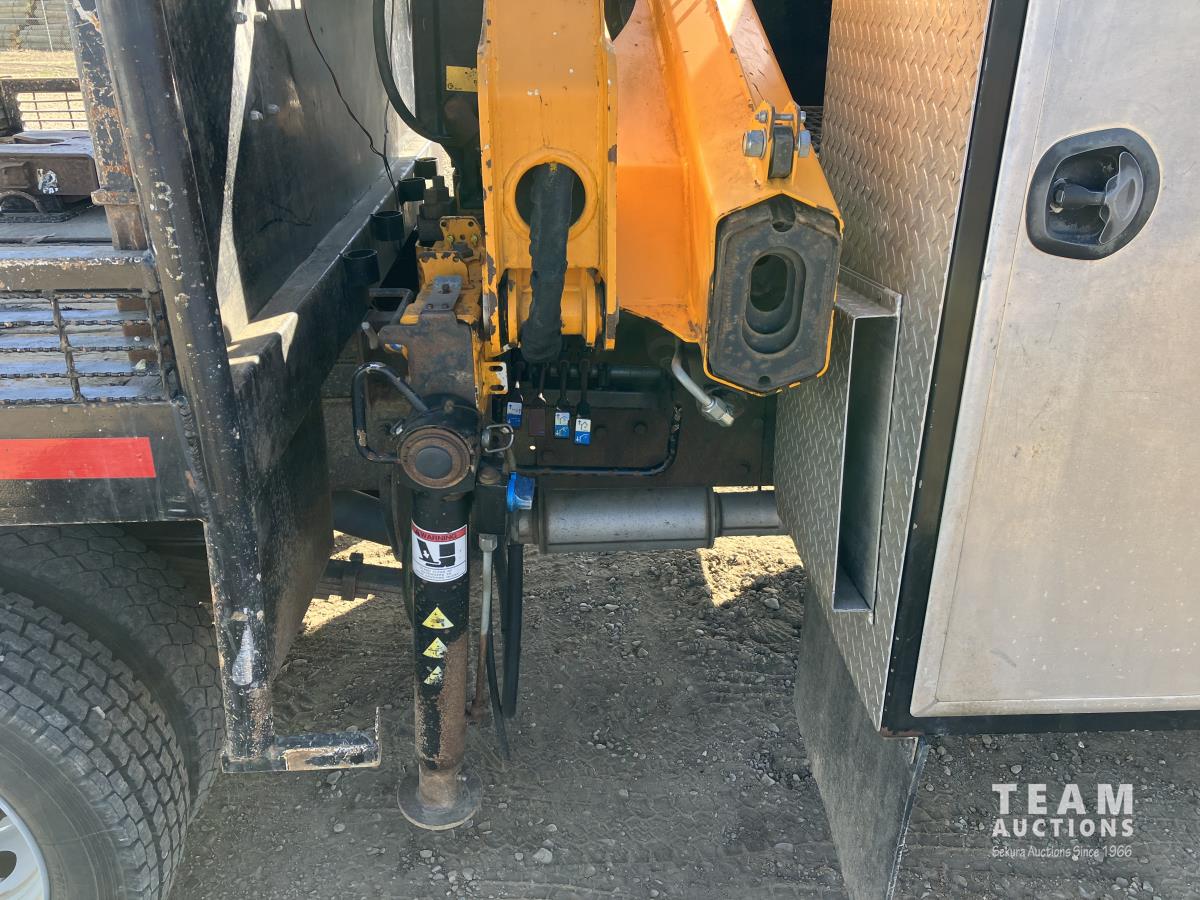 Cummins 6.7 L diesel engine, automatic transmission, A/C, tool boxes, 11 ft deck, 2013 Effer 65/4S 5 section 35 ft crane, 5037 lb capacity, dual control, p/w, p/l, 225/70R19.5 tires