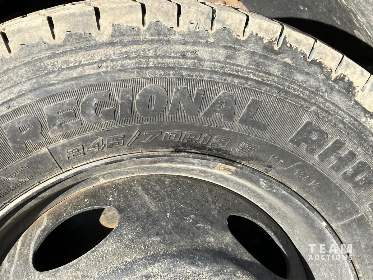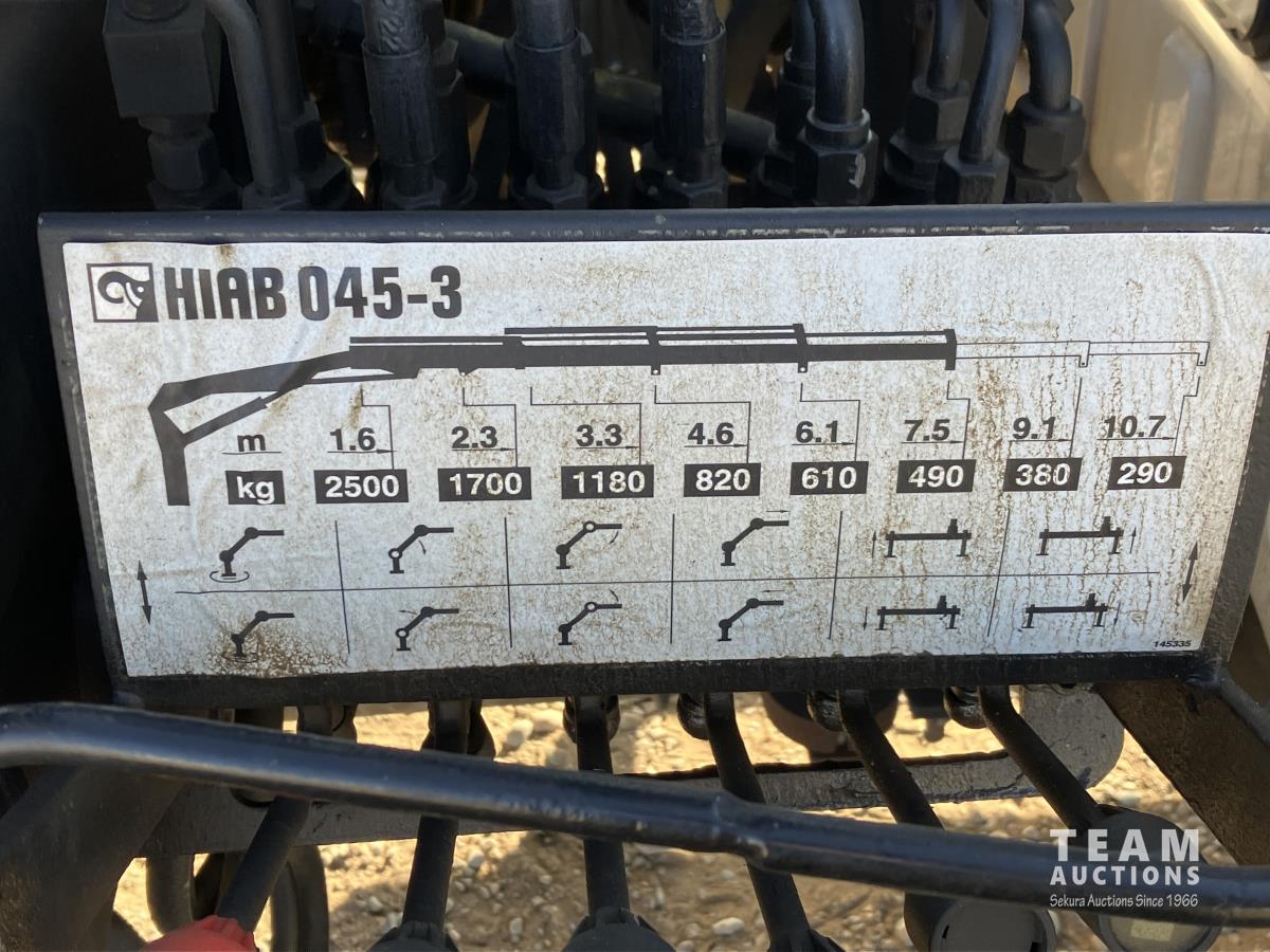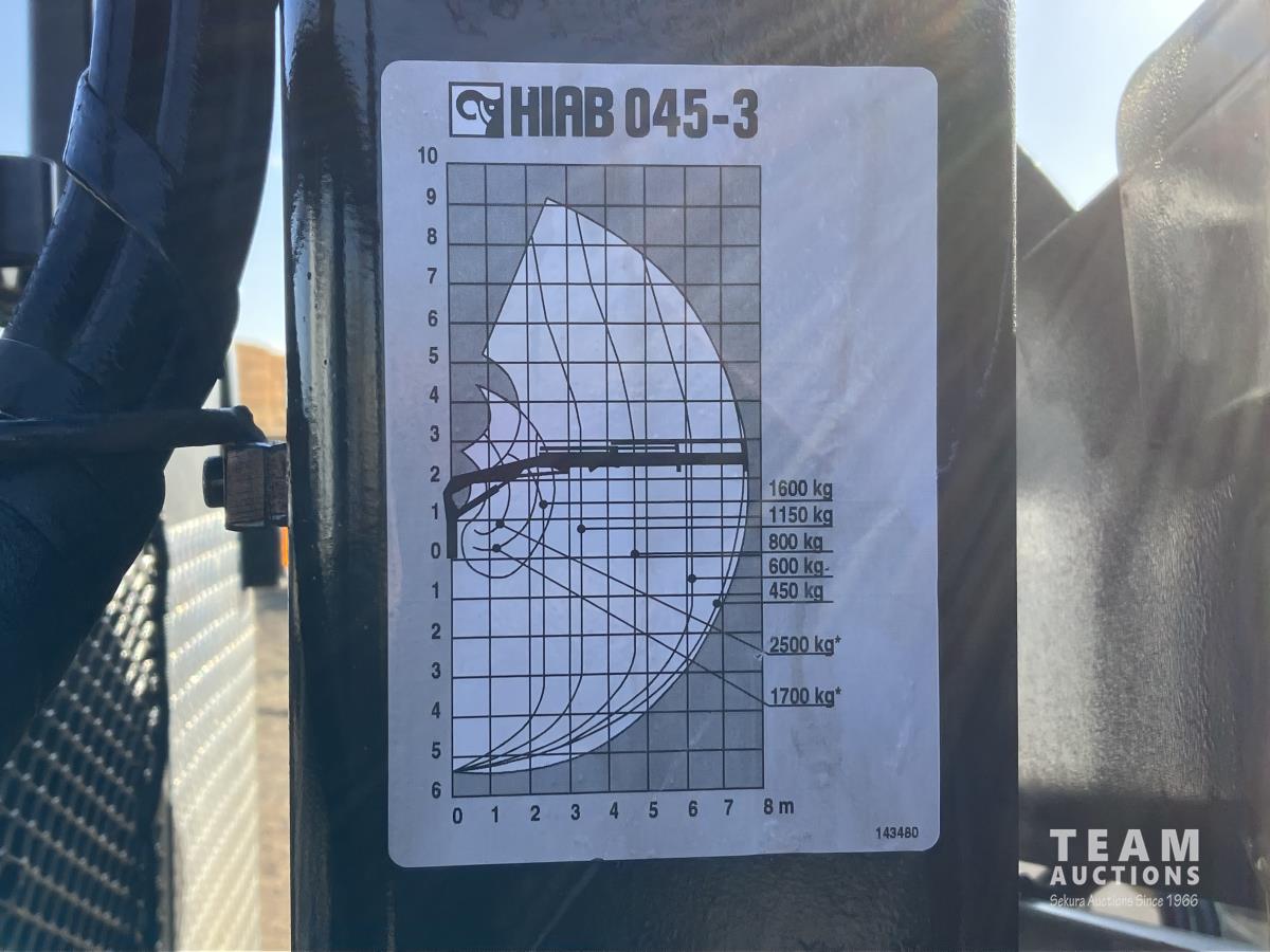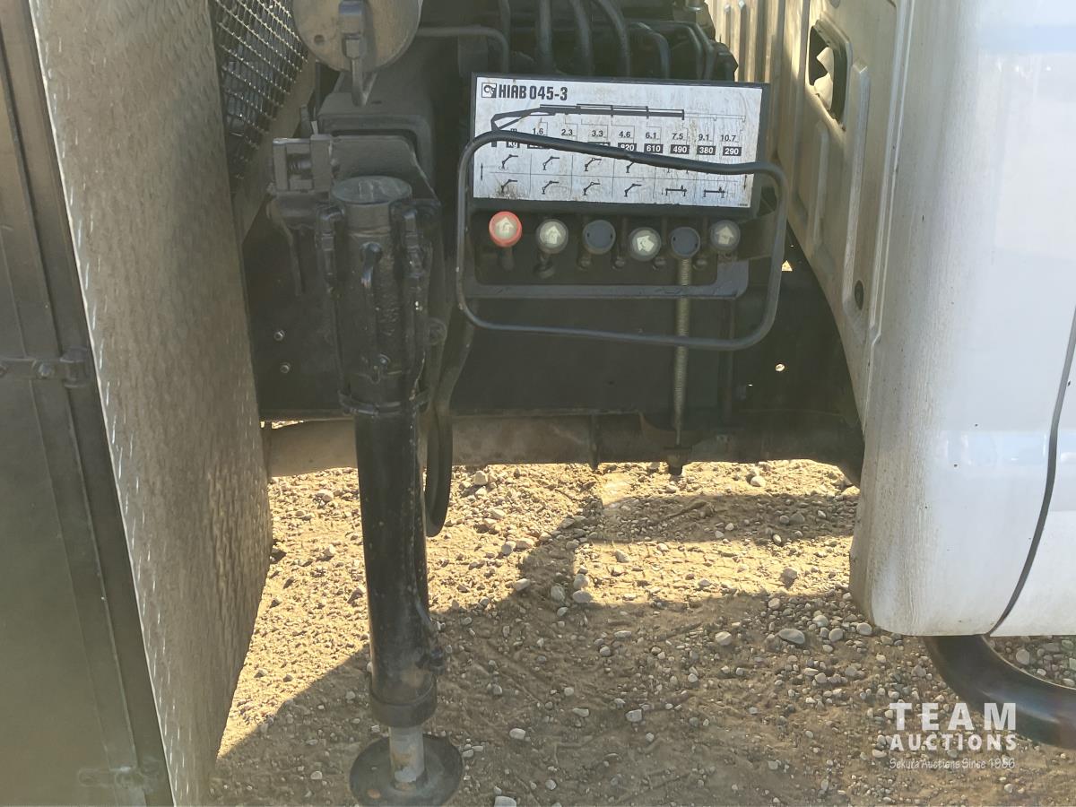 6.0 L diesel engine, 5 speed manual transmission, A/C, Hiab 045-3 3 section 25 ft crane, outriggers, dual control, 5500 lb capacity, p/w, p/l, 245/70R19.5 tires