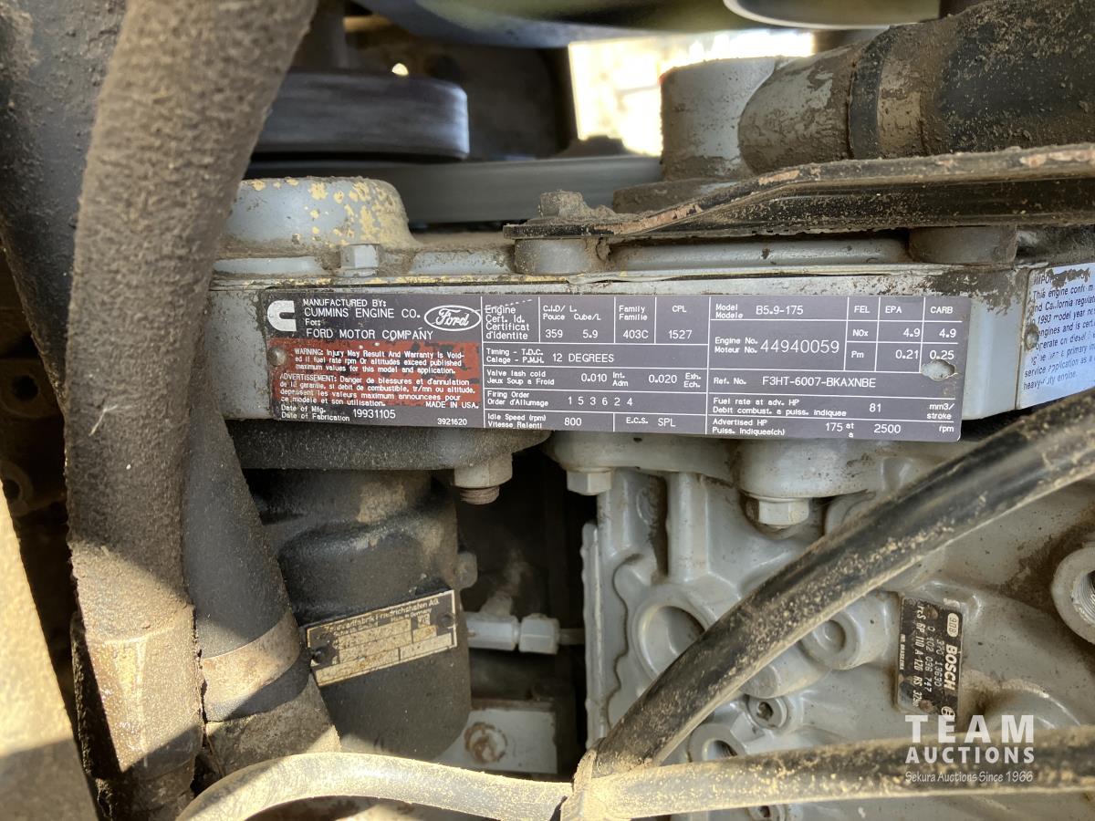 Cummins 5.9 L diesel engine, 5 speed manual transmission, back and side spray bars, spring suspension, 9,000 lb front axle, 19,000 lb rear axles, 153 inch WB, 11R22.5 tires