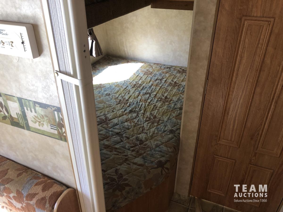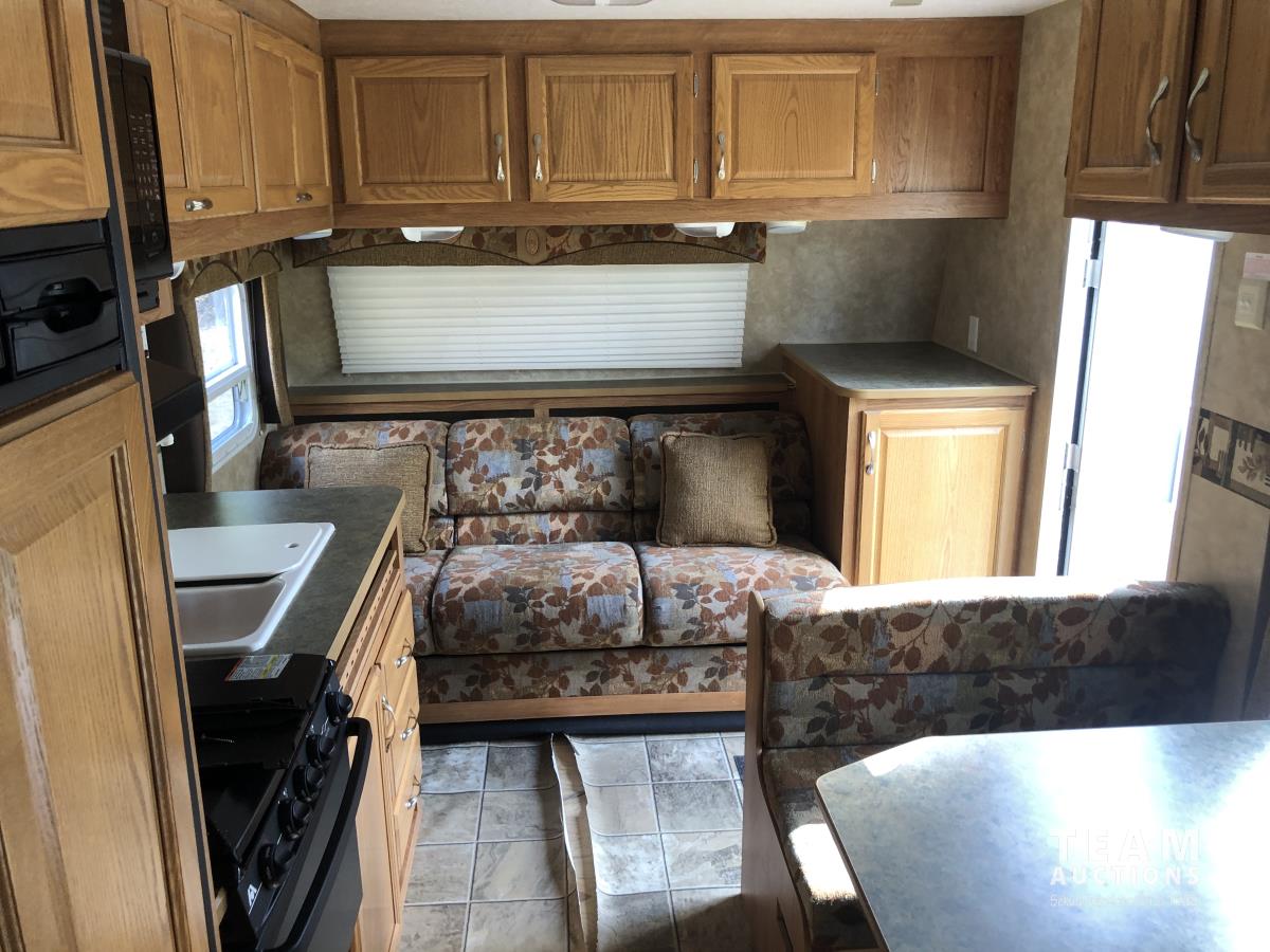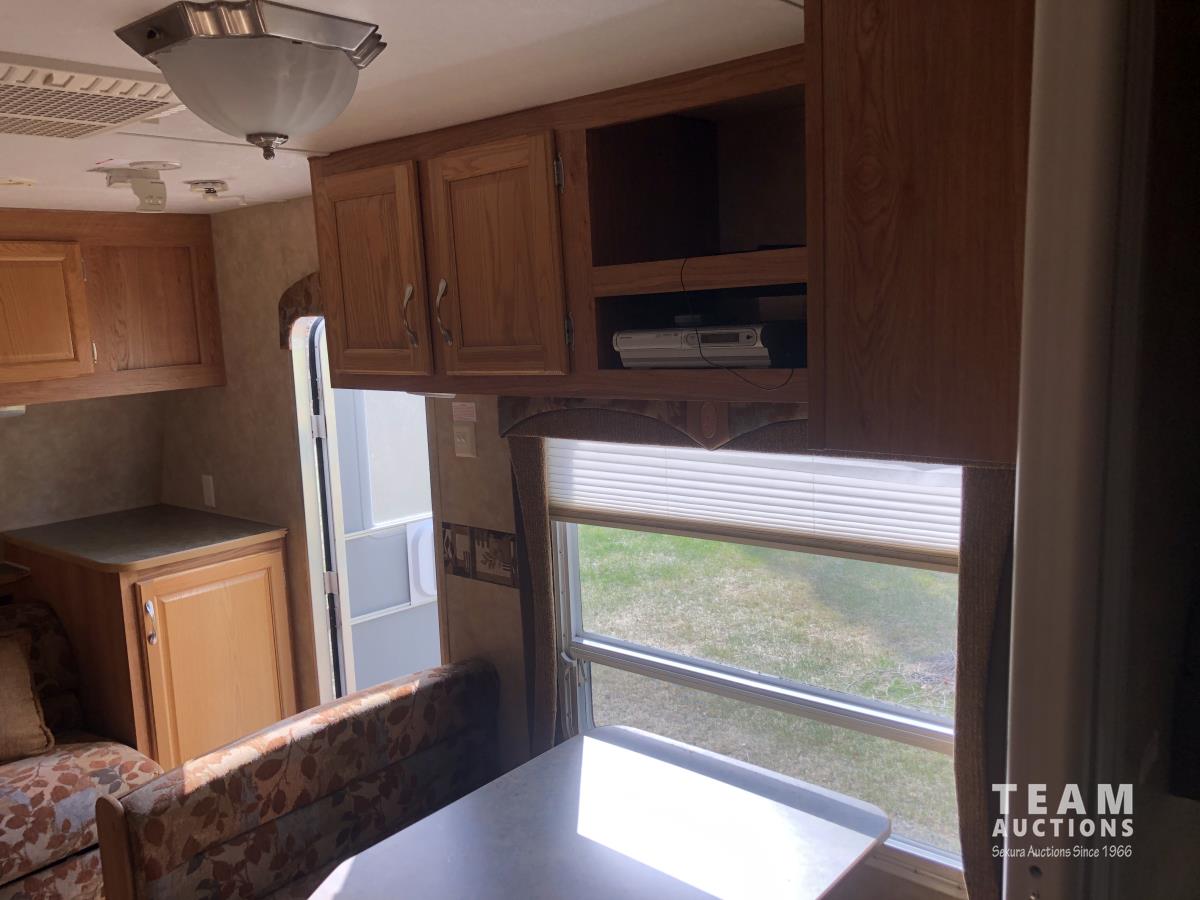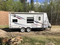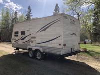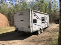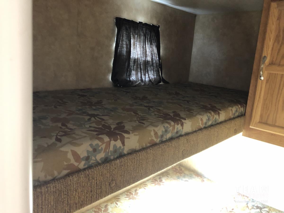 Fridge, stove, microwave, dinette, fold down couch, rear bunks, A/C, heat, 205/75R15 tires