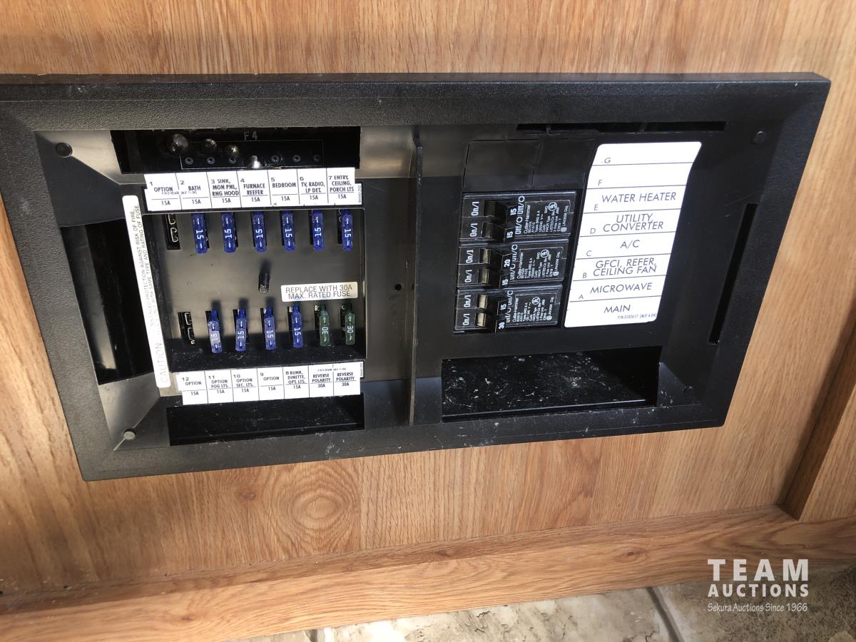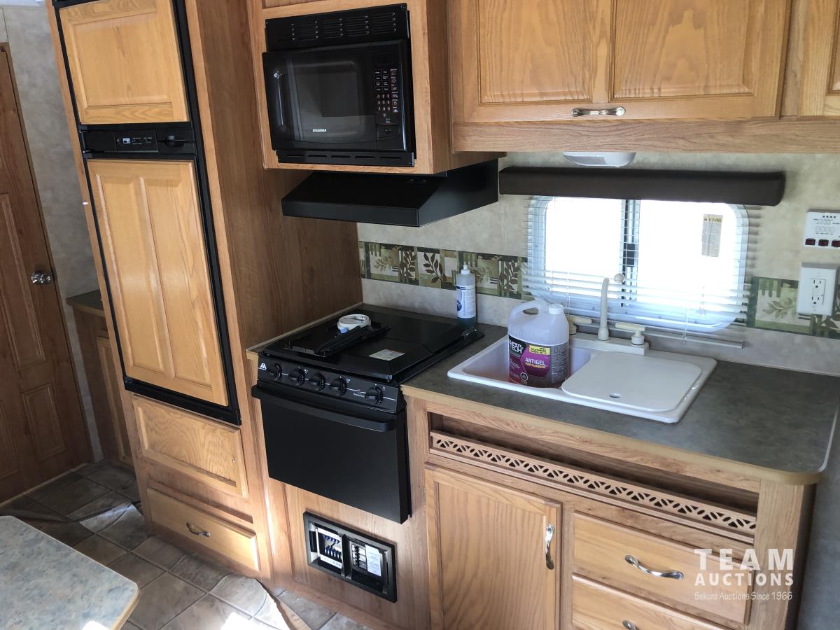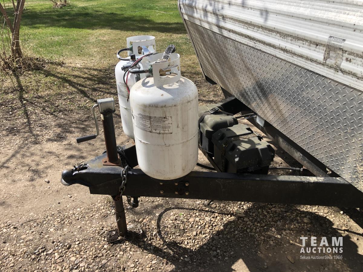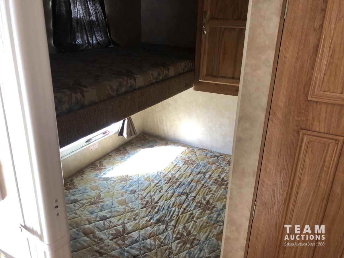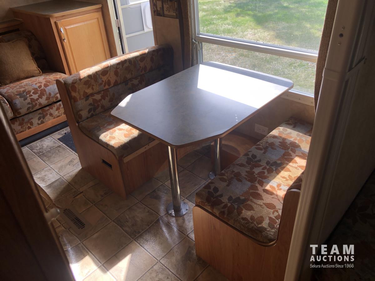 Fridge, stove, microwave, dinette, fold down couch, rear bunks, A/C, heat, 205/75R15 tires