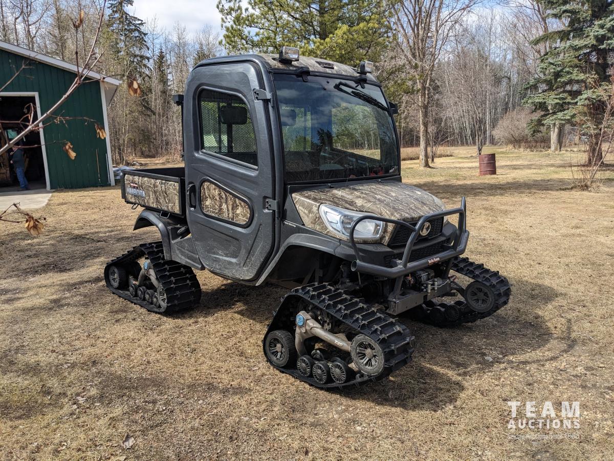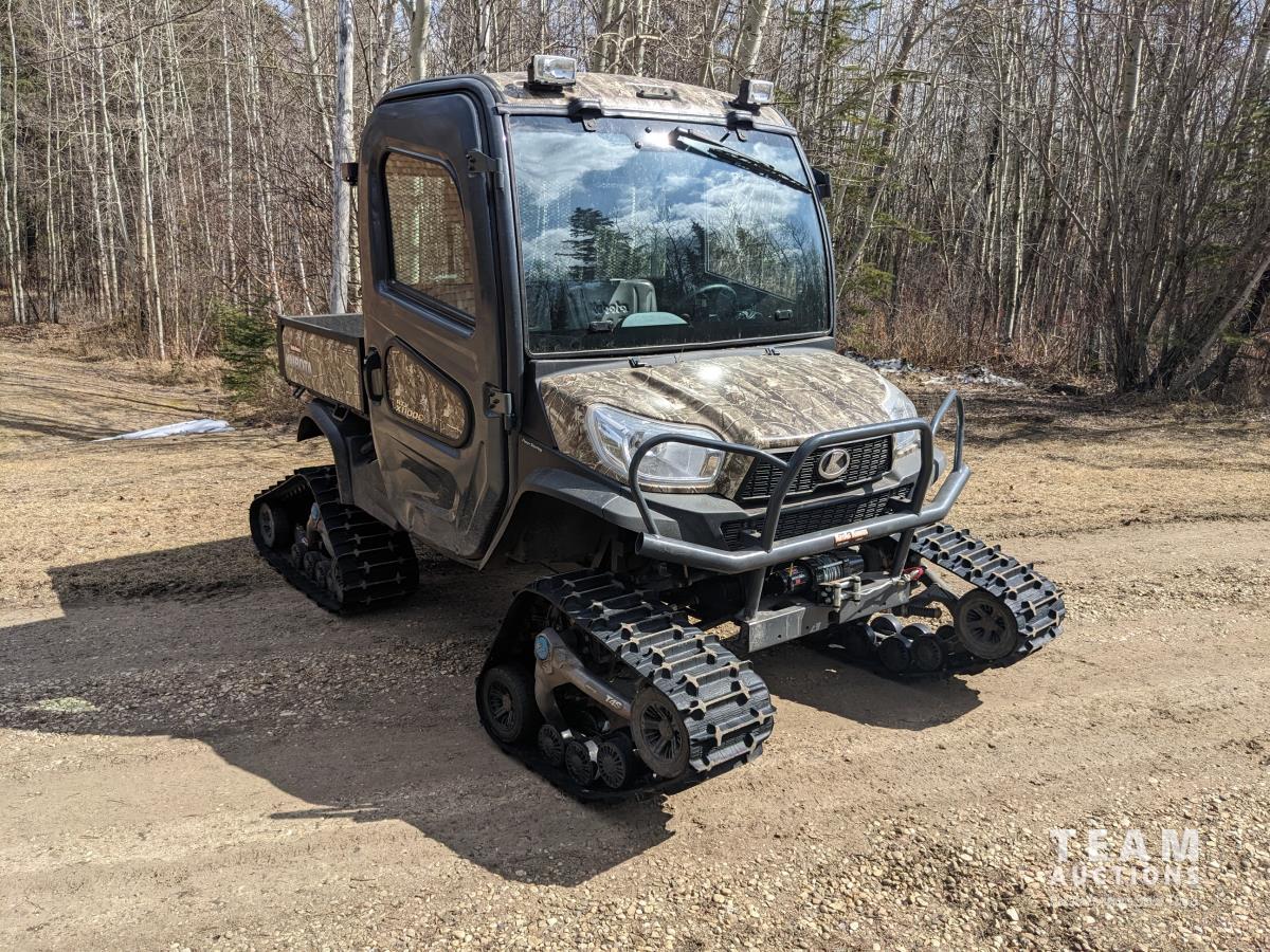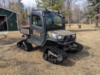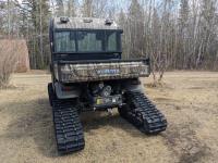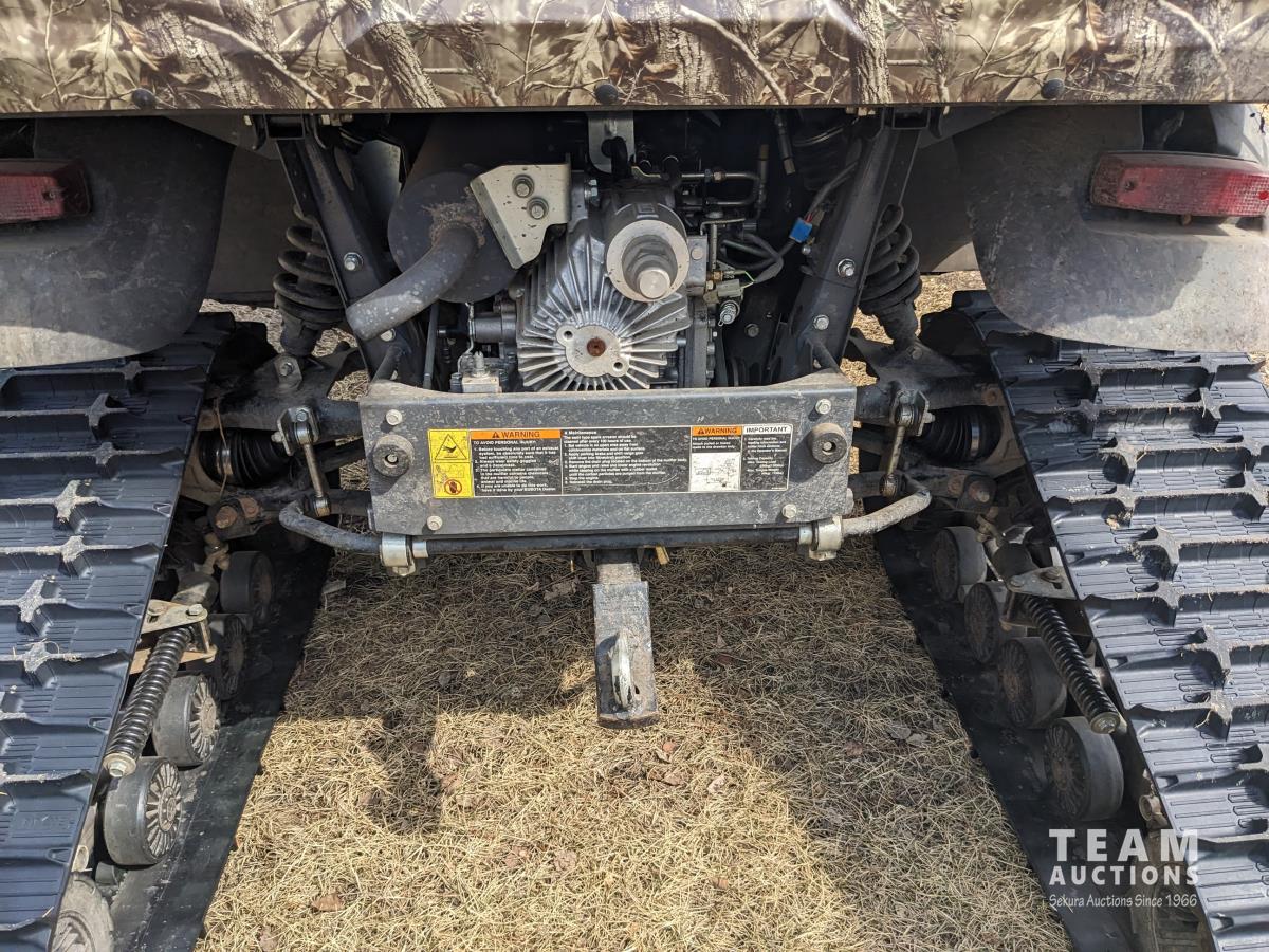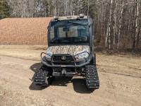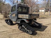 Kubota D1105 diesel engine, 2 speed variable hydro transmission, 3500 lb winch, cab, heater, A/C, Camoplast tracks, (4) unused 25X10-12 Tires
