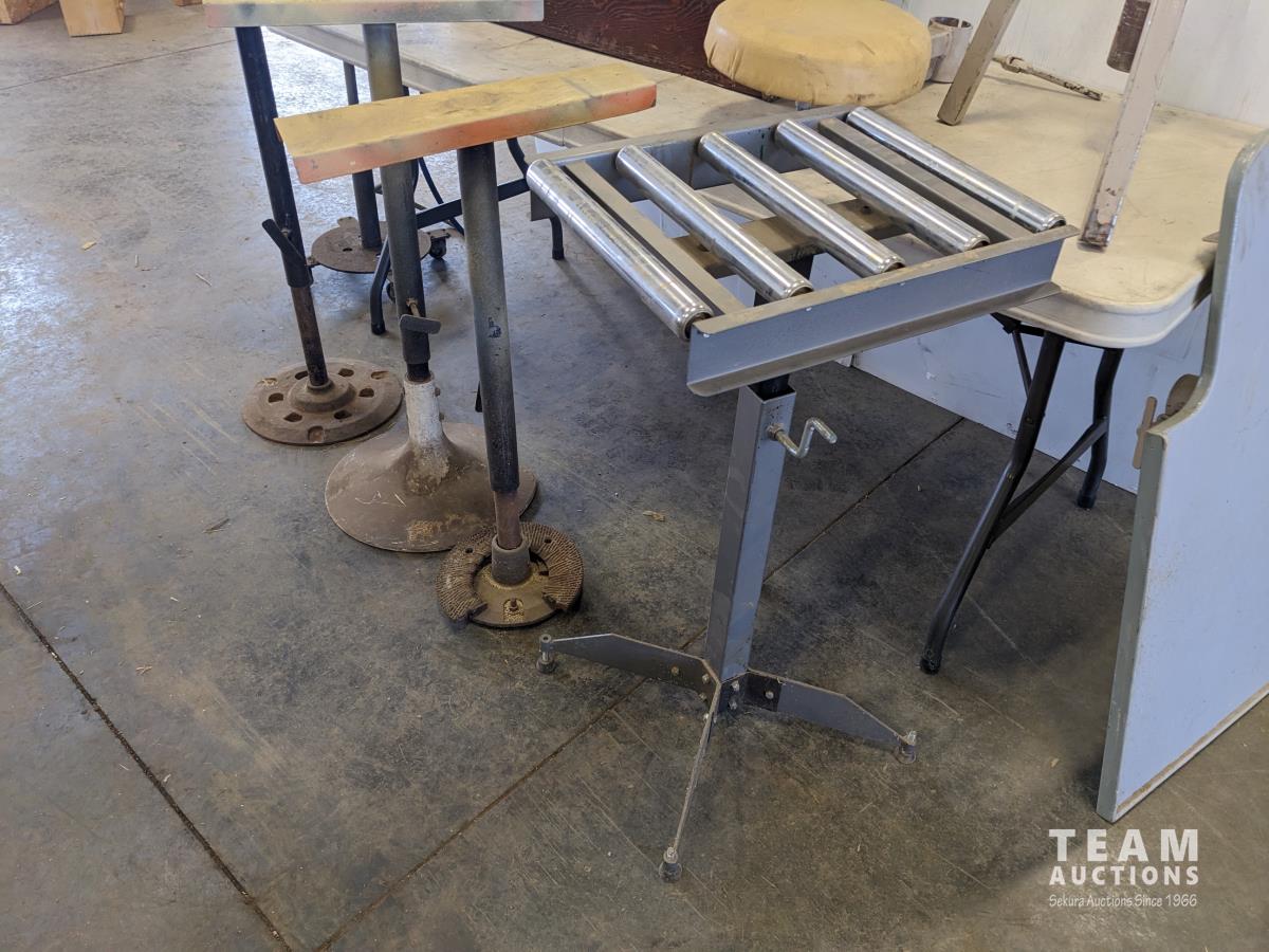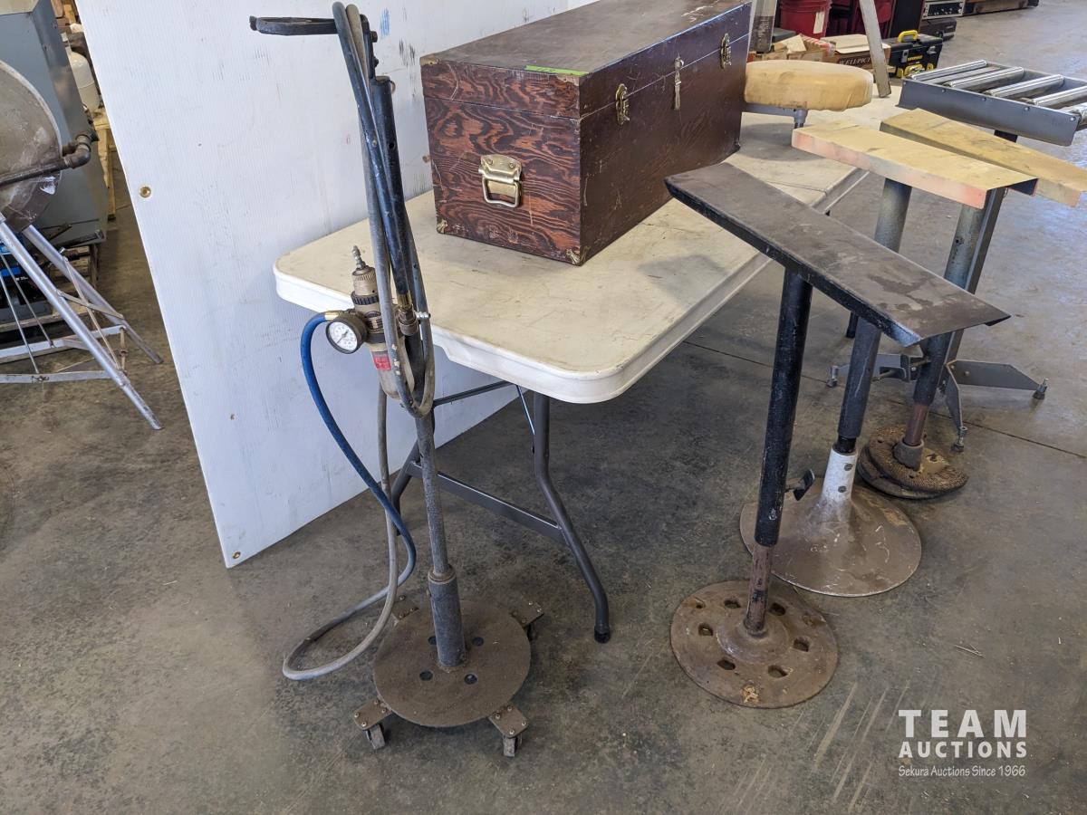91 (5) Adjustable Stands, Air Hose Stand, Wooden Box