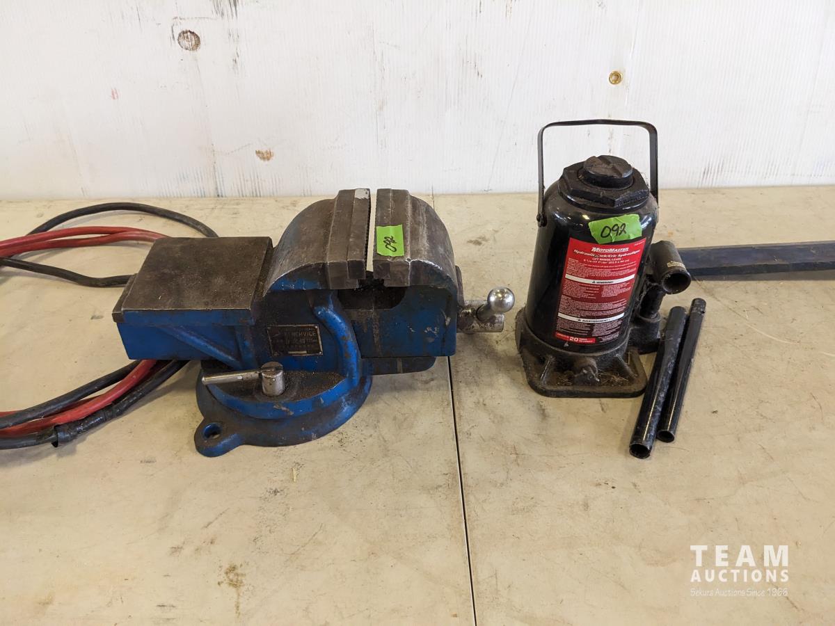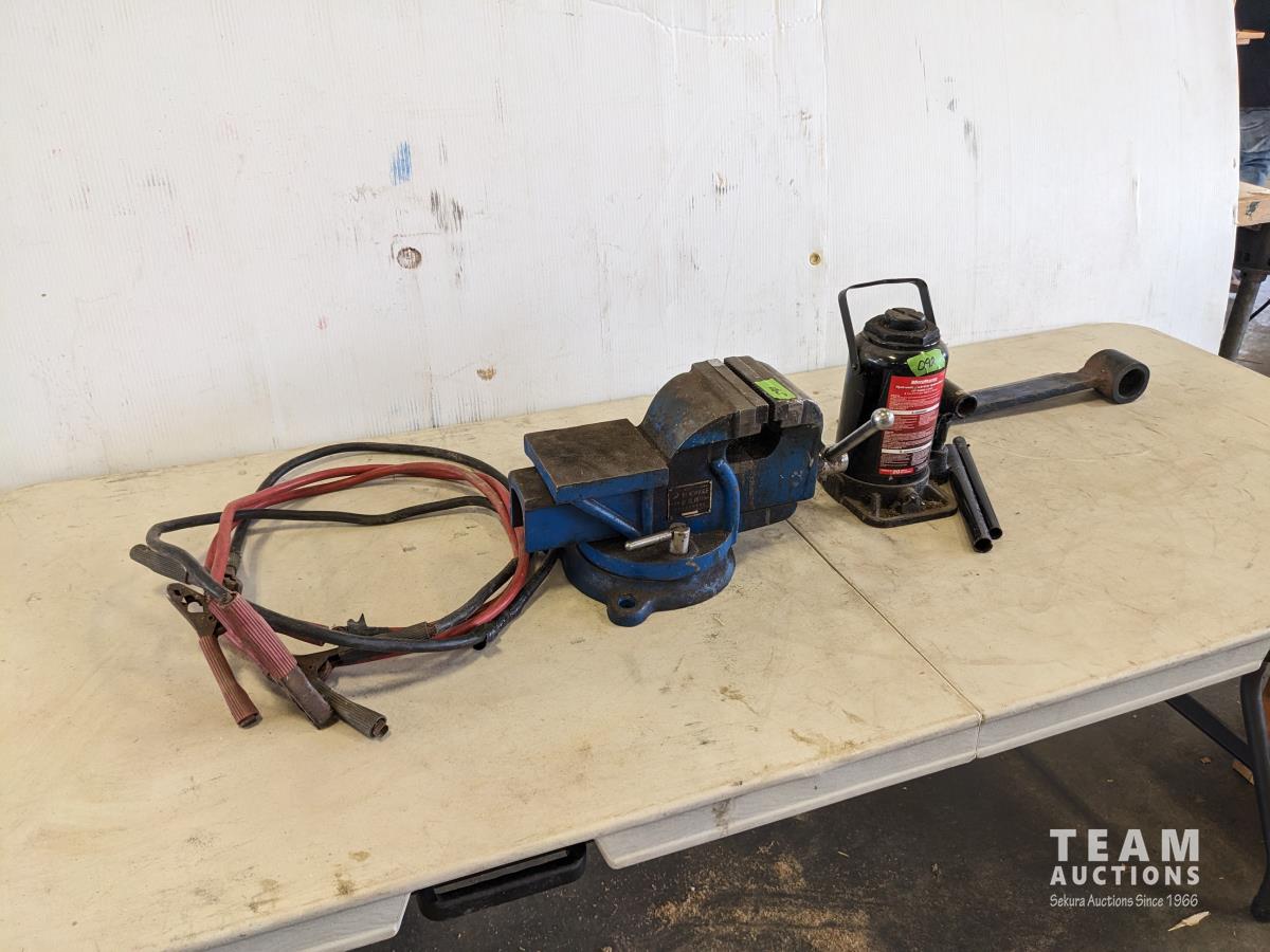 128 5 Inch Vise, 20 Ton Bottle Jack, Booster Cables, Log Splitter Blade