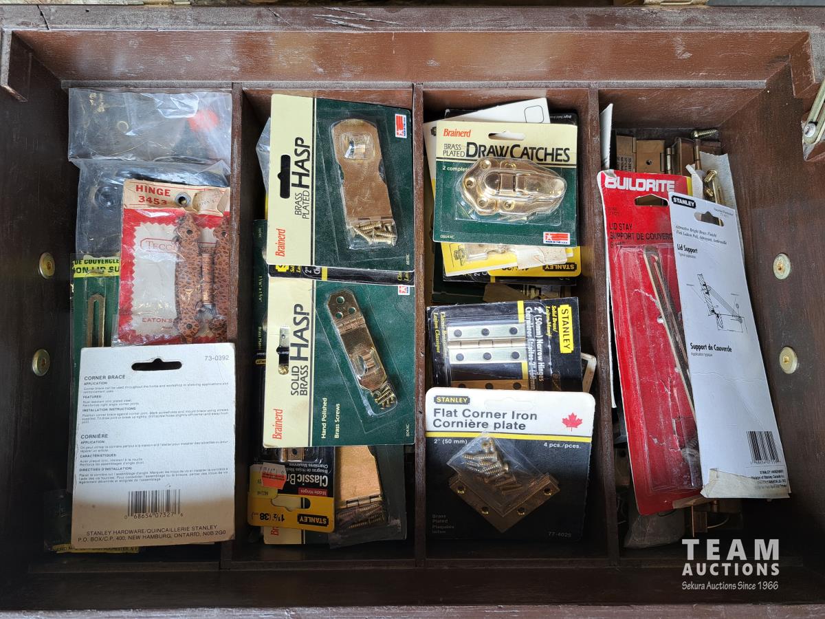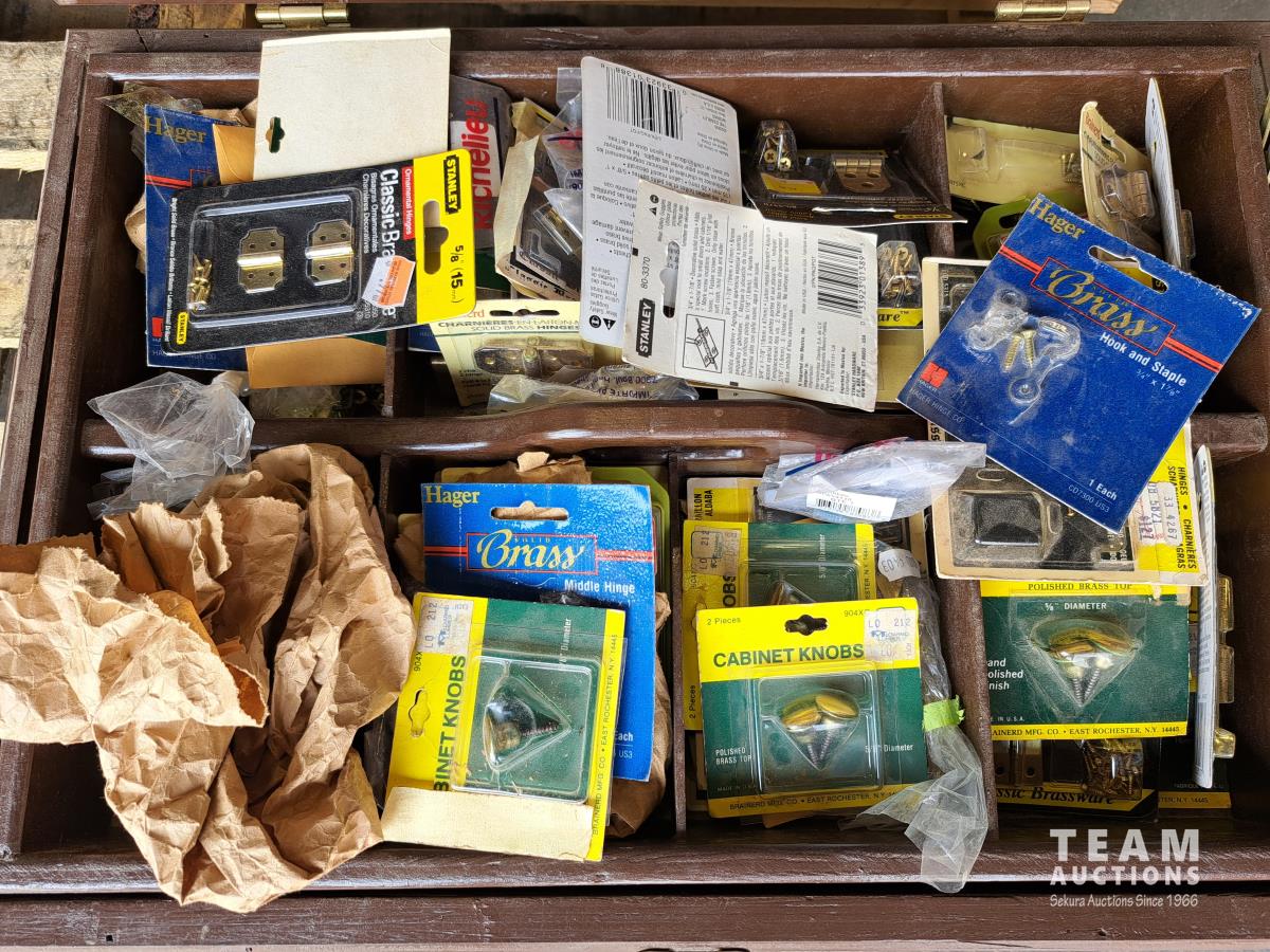 Hinges, screws, door knobs
