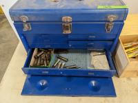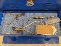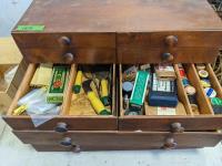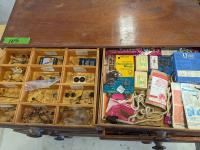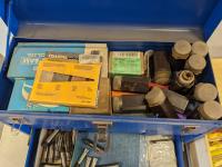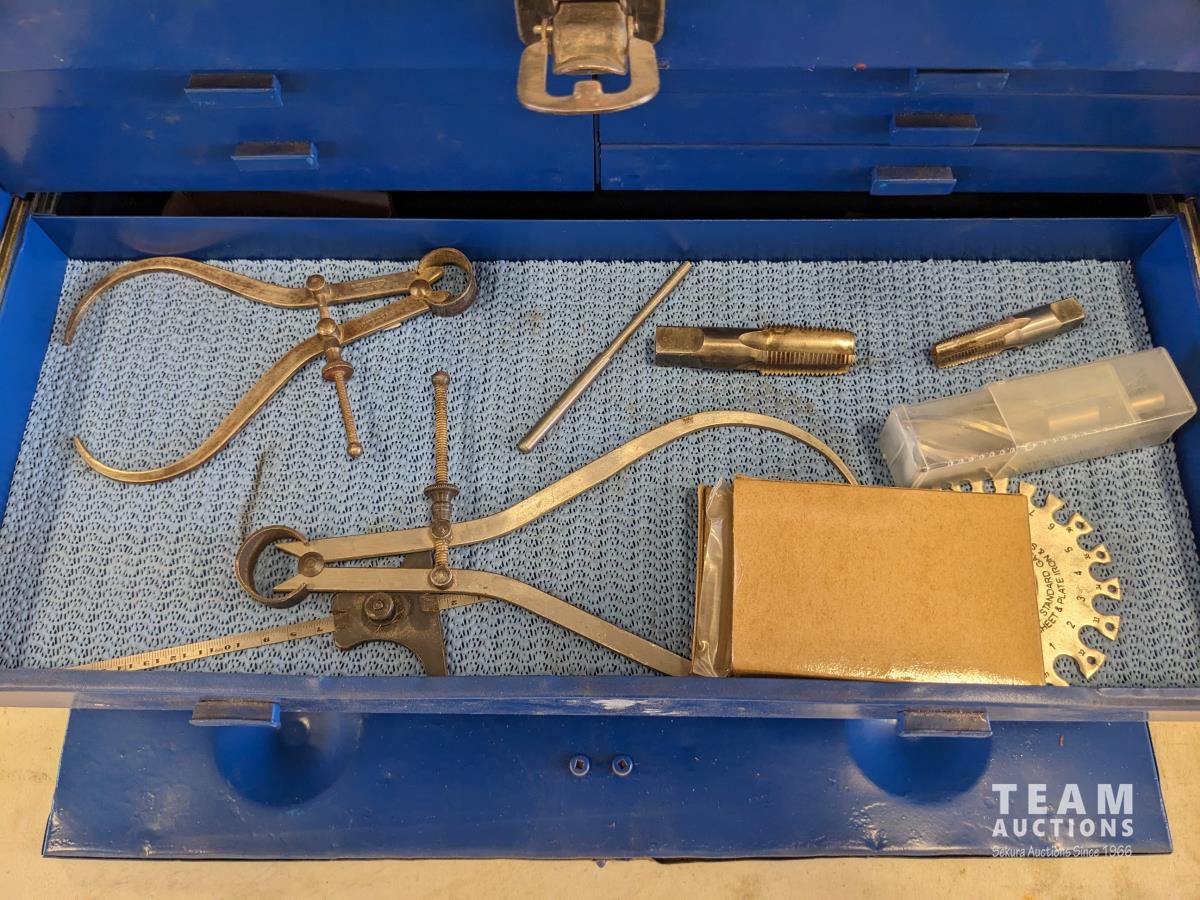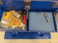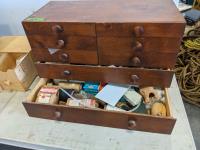Collets, mouse tarps, miscellaneous hardware, magnetic tool holder base, measuring tools, misc hardware