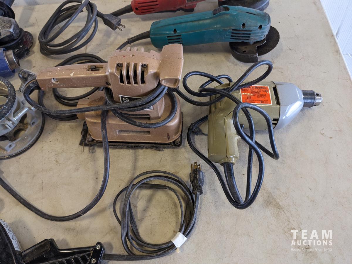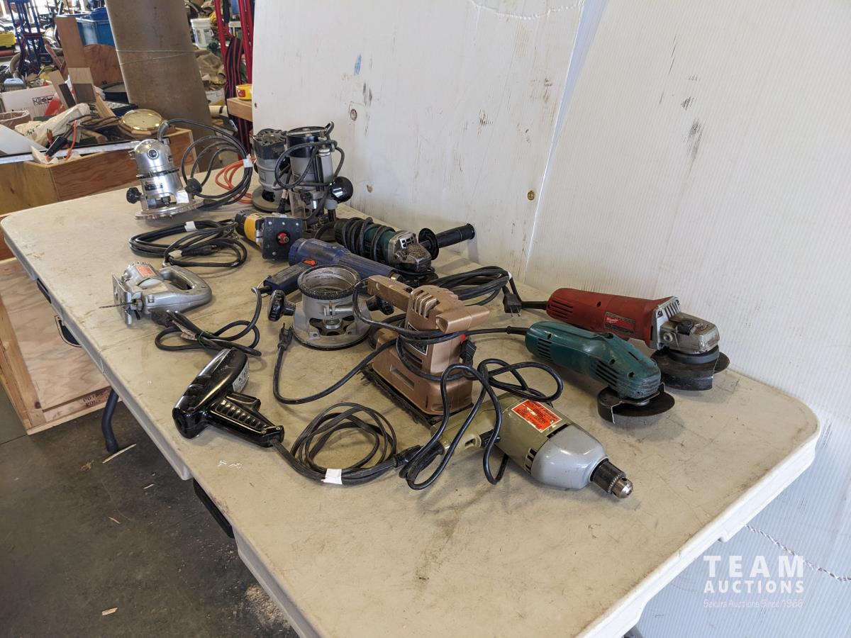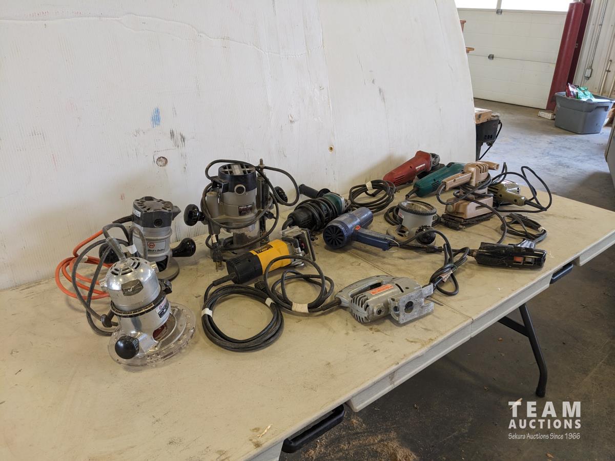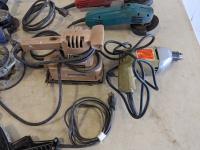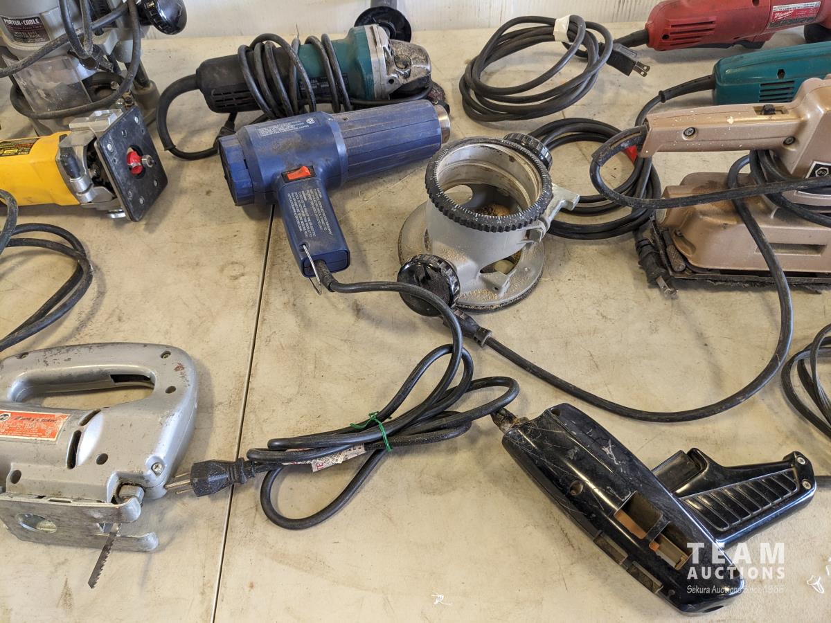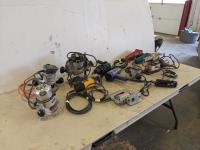 (4) routers, (3) angle grinders, heat gun, jig saw, (2) drills, sanders