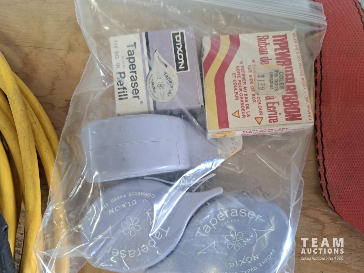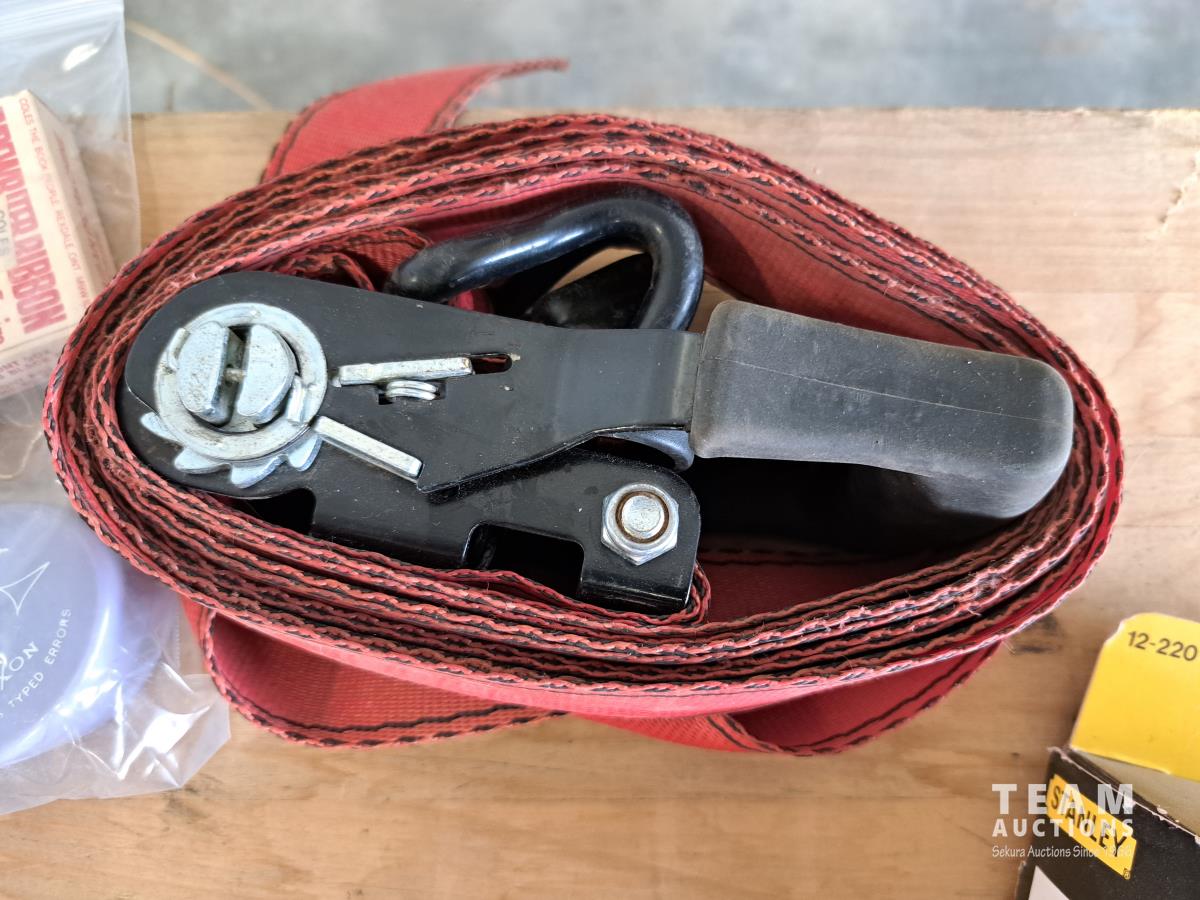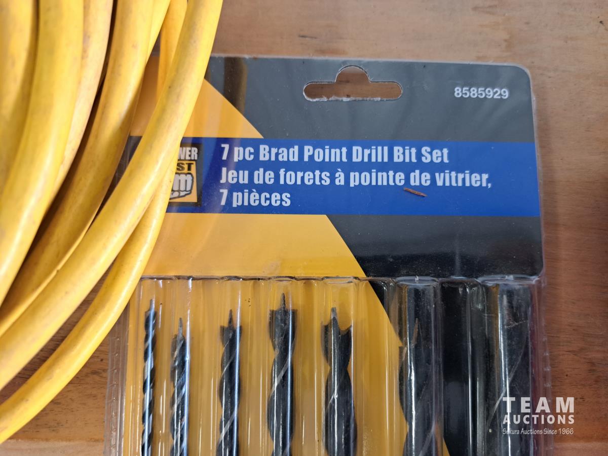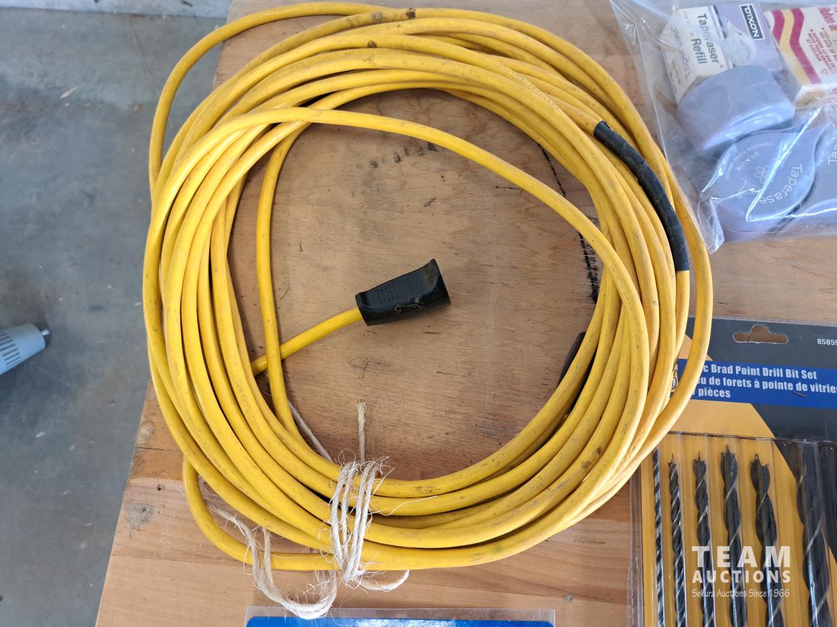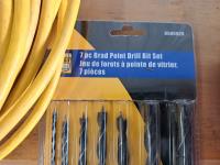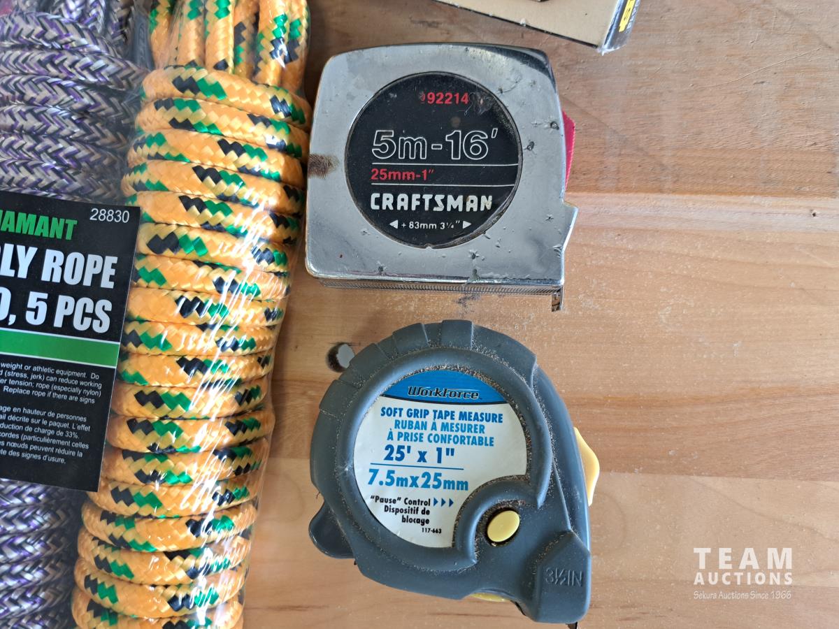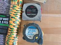 Tape measures, drill bits, felling wedge, rope, counter sink bits, miscellaneous