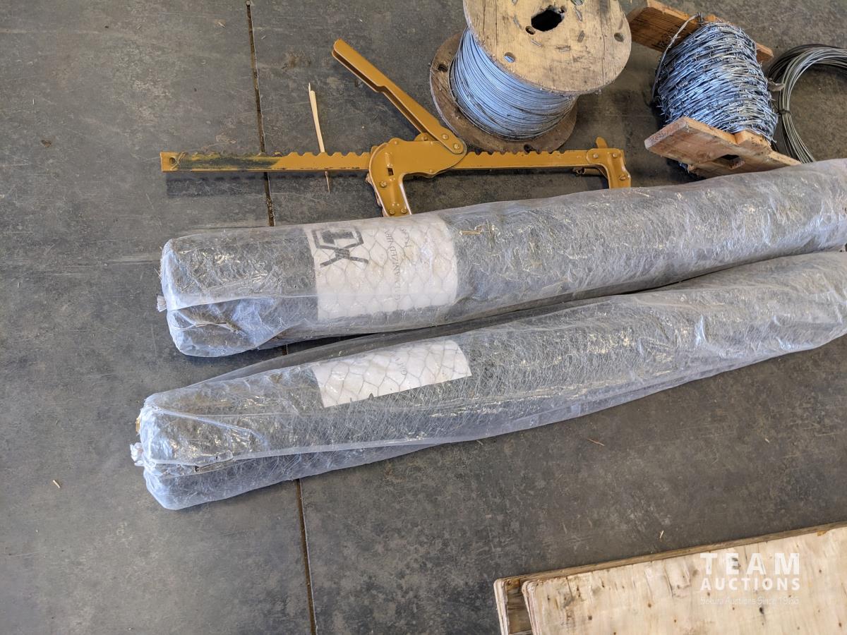 50 Qty of Smooth Wire, Small Roll of Barb Wire, Fence Stretcher, (2) Rolls of 48 Inch Chicken Wire