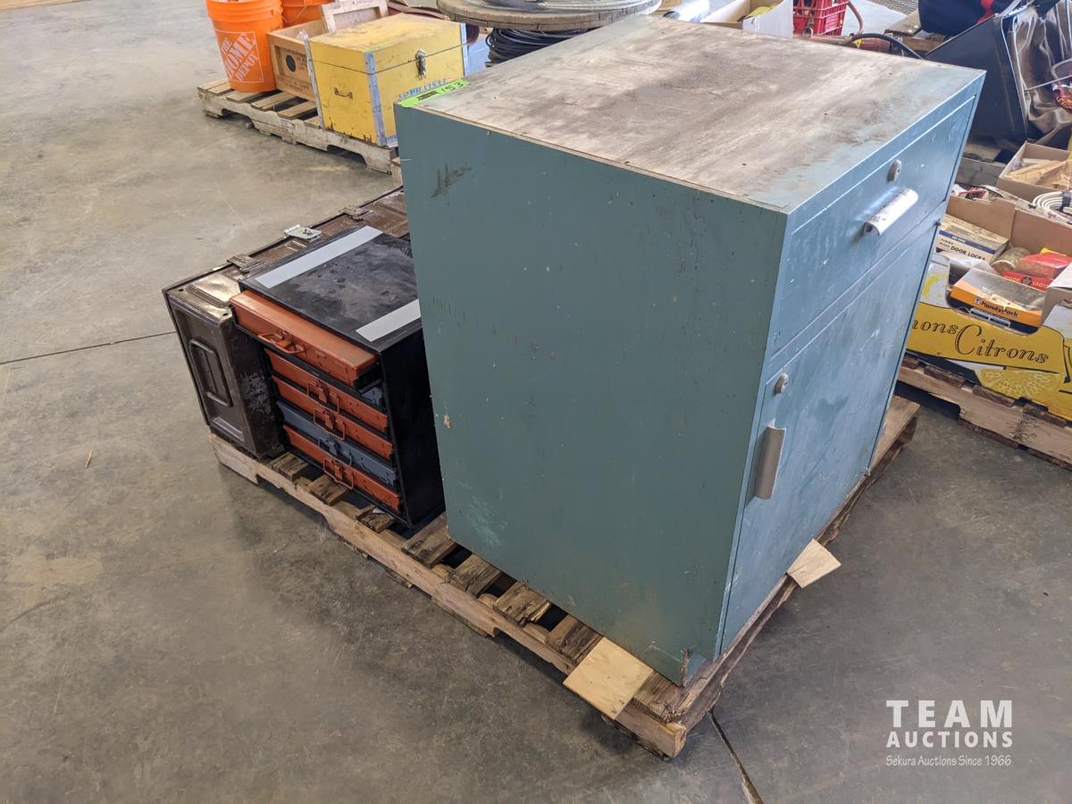46 Wood Tool Cabinet, Assortment Trays, Assorted Tools, Metal Case