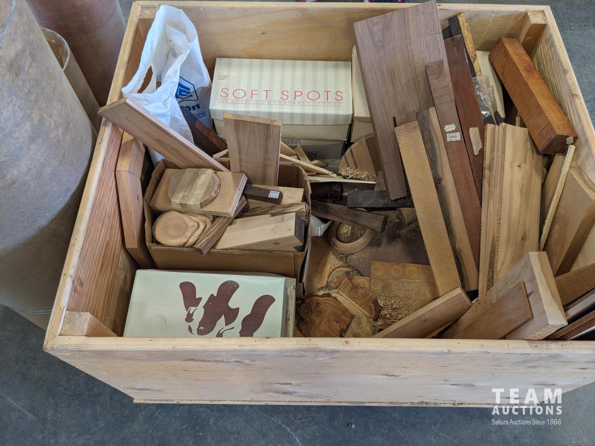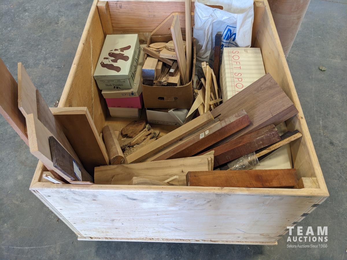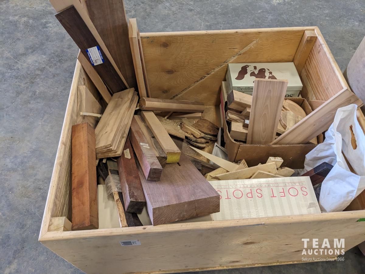 58 Wooden Box with Various Small Pieces of Hardwood