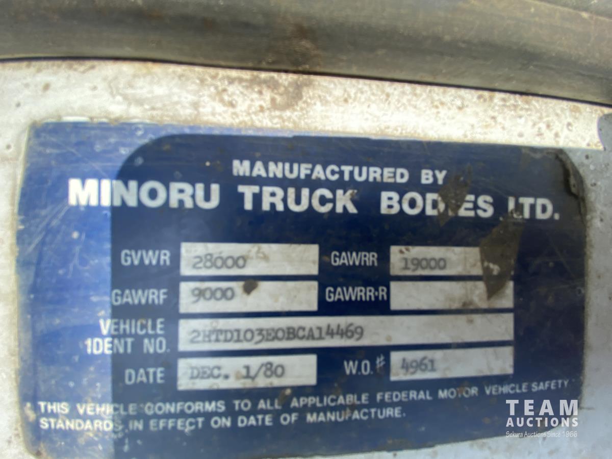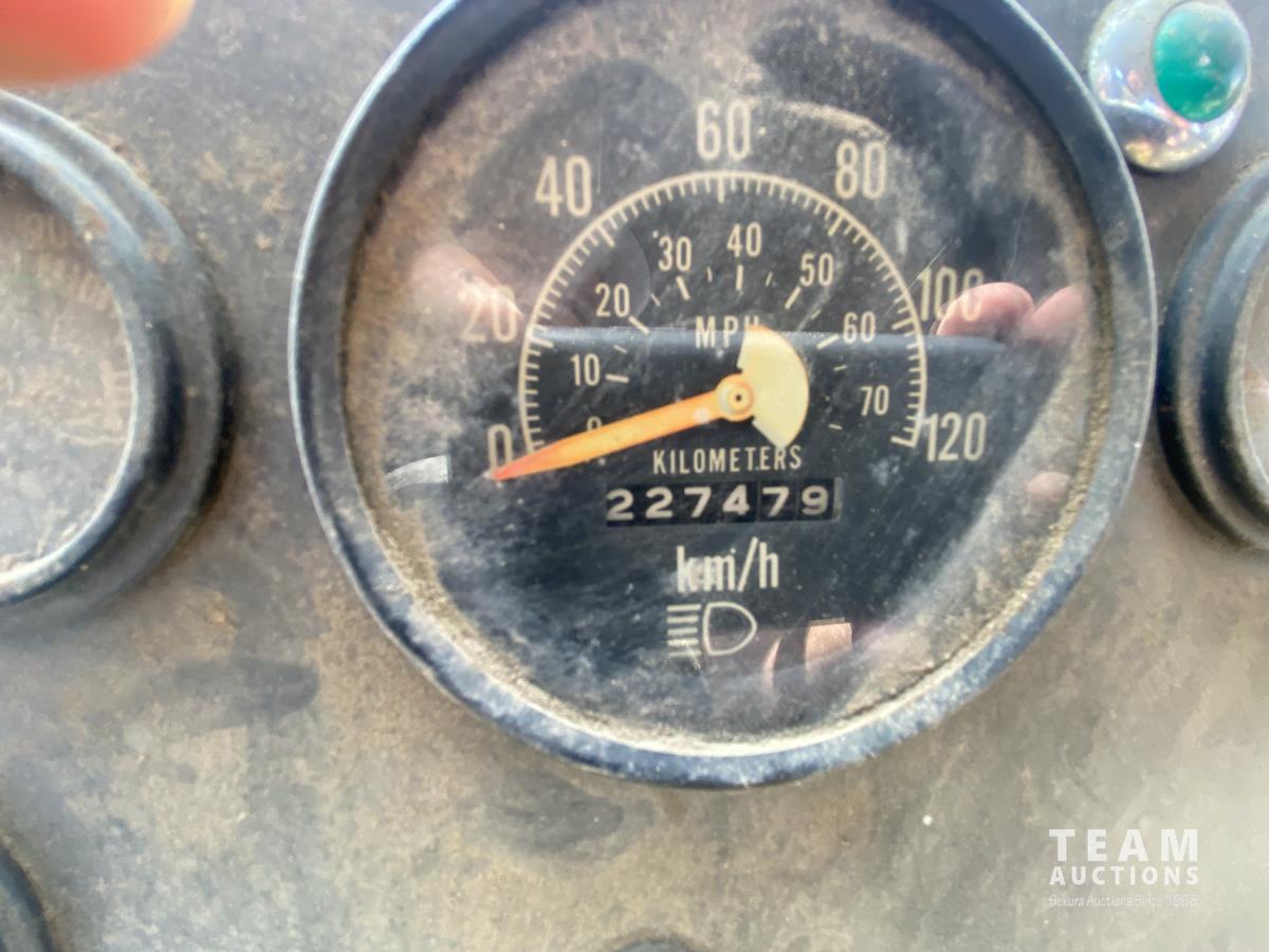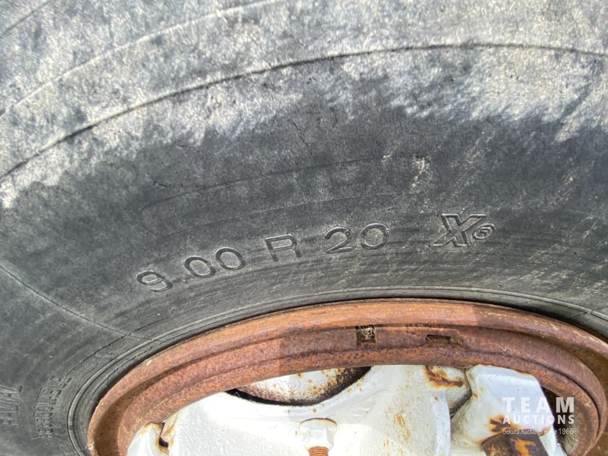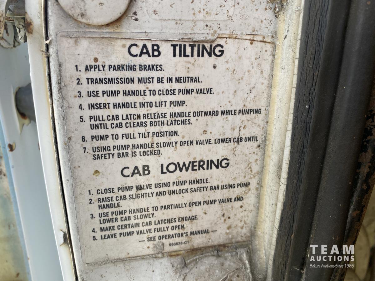 International 466 6 cylinder diesel engine, manual 5X2 transmission, 96 inch x 19 ft 8 inch deck, spring suspension, 182 inch WB, 9.00R20 front tires, 10.00R20 rear tires