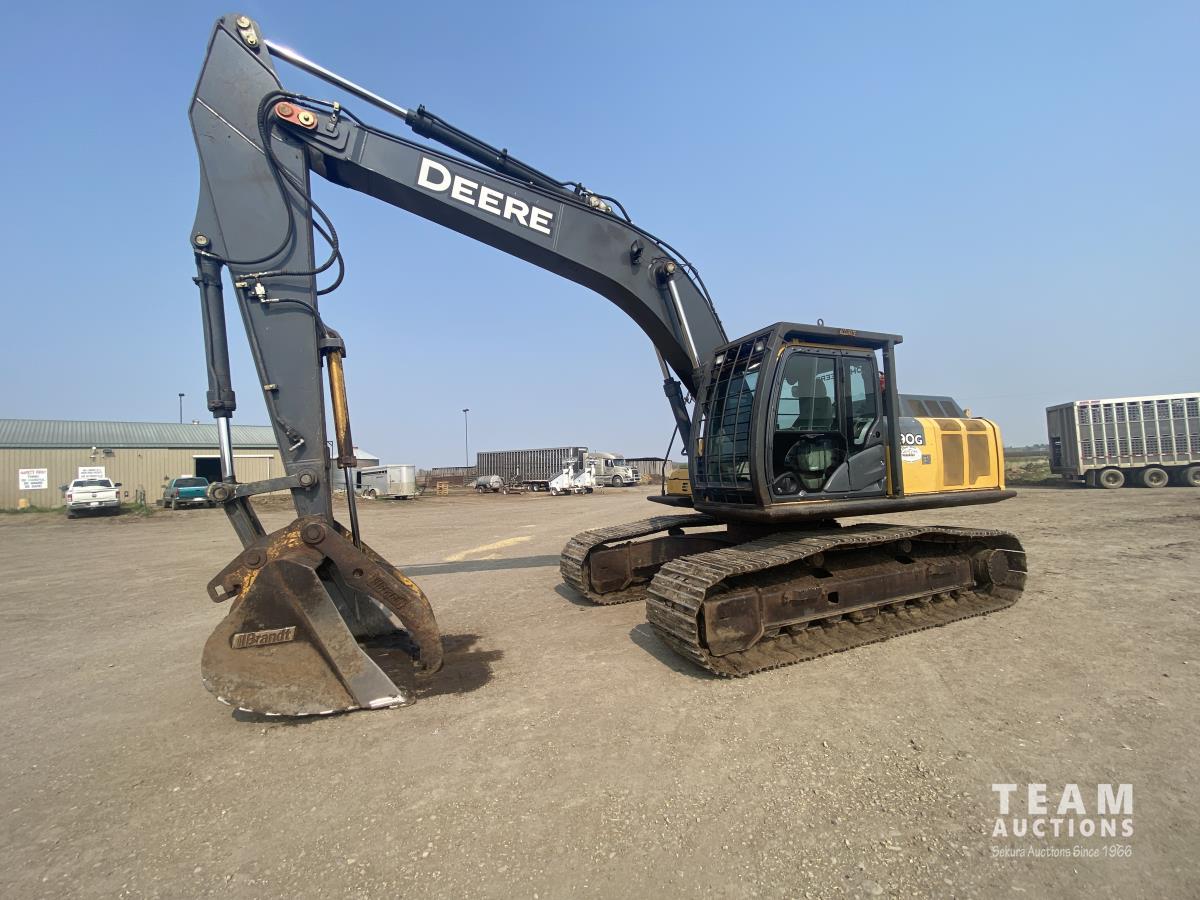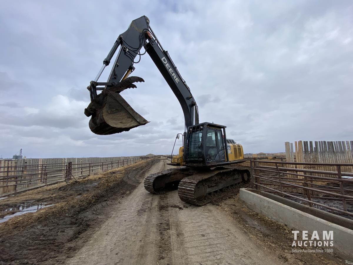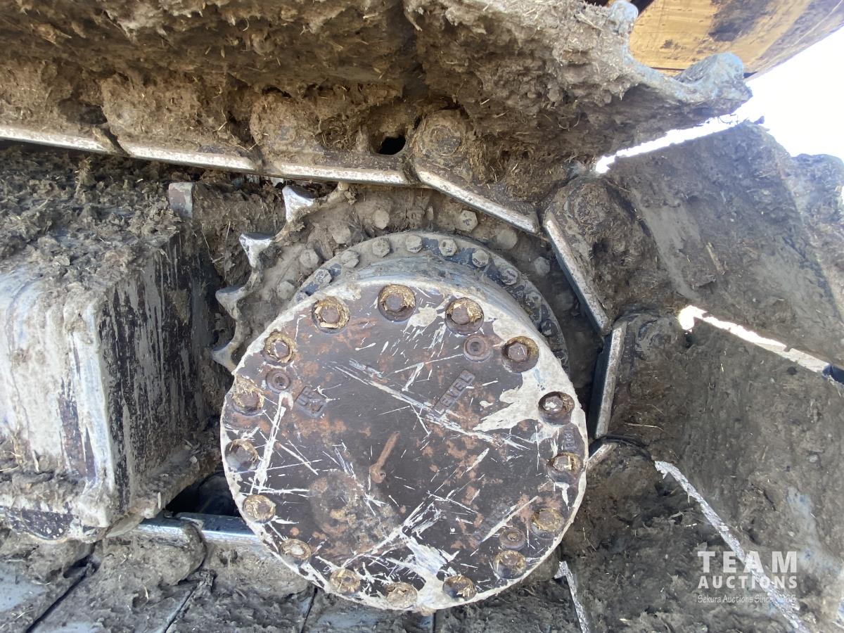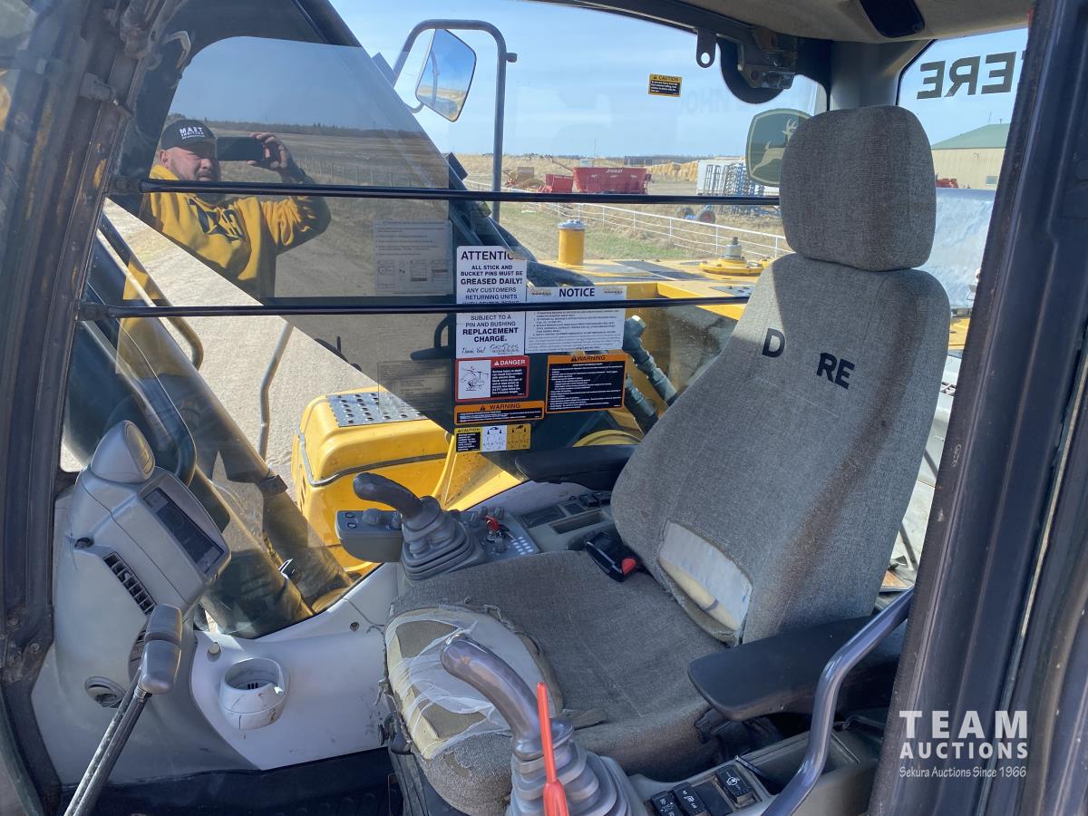 Q/C 62 inch clean up bucket, hydraulic thumb, 12 ft 10 inch stick, enclosed cab, air conditioner, triple grouser, 31.5 inch triple grouser pads