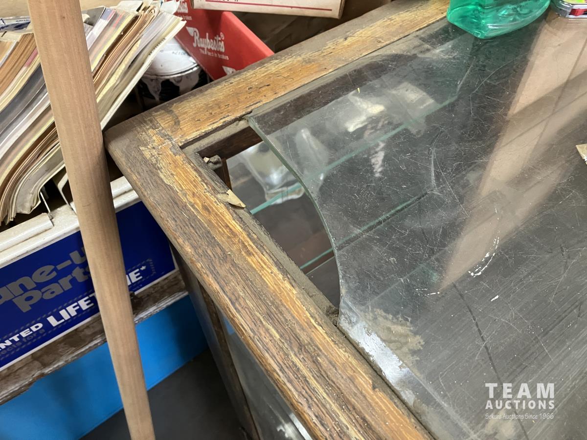 The front Glass is missing & missing piece of glass on top 69X38.5X25.5 Inches