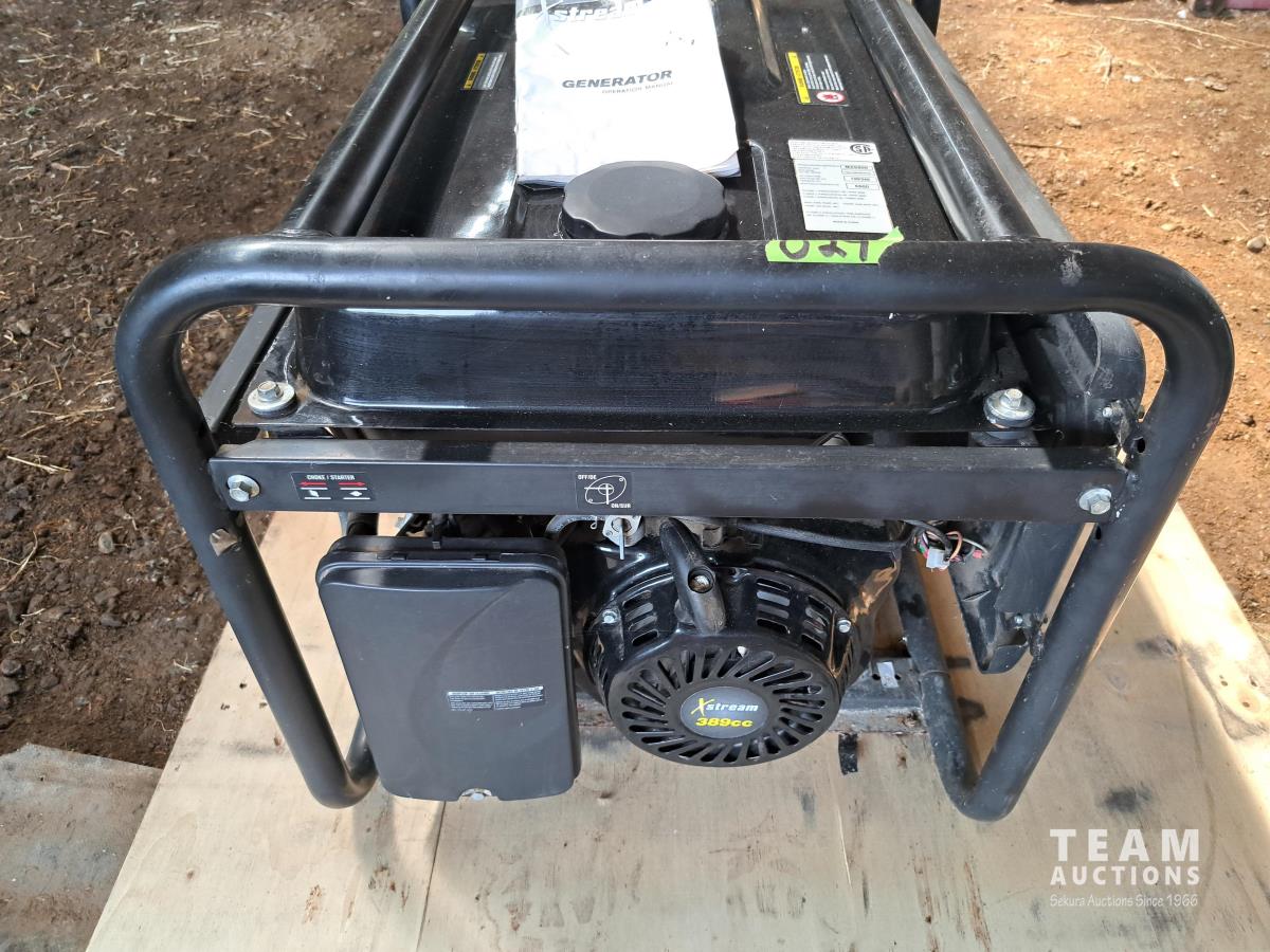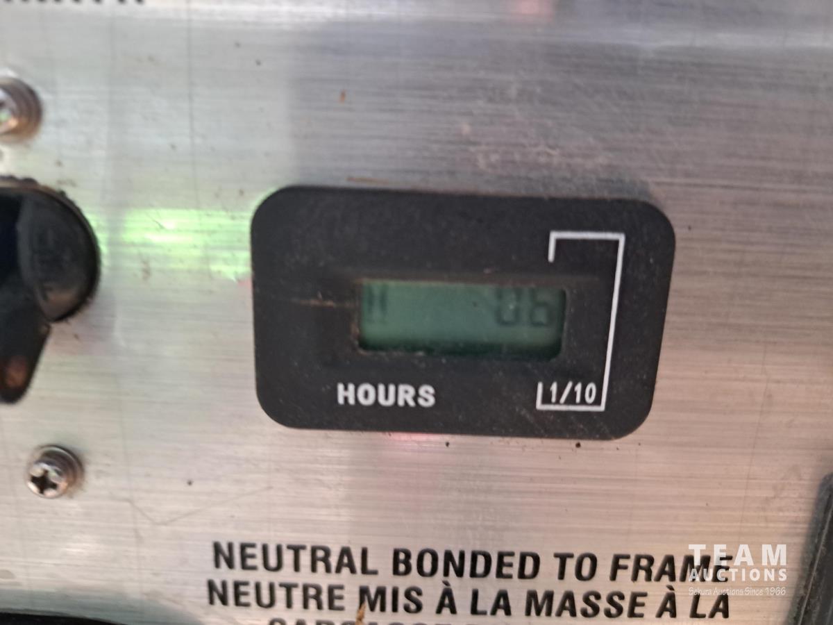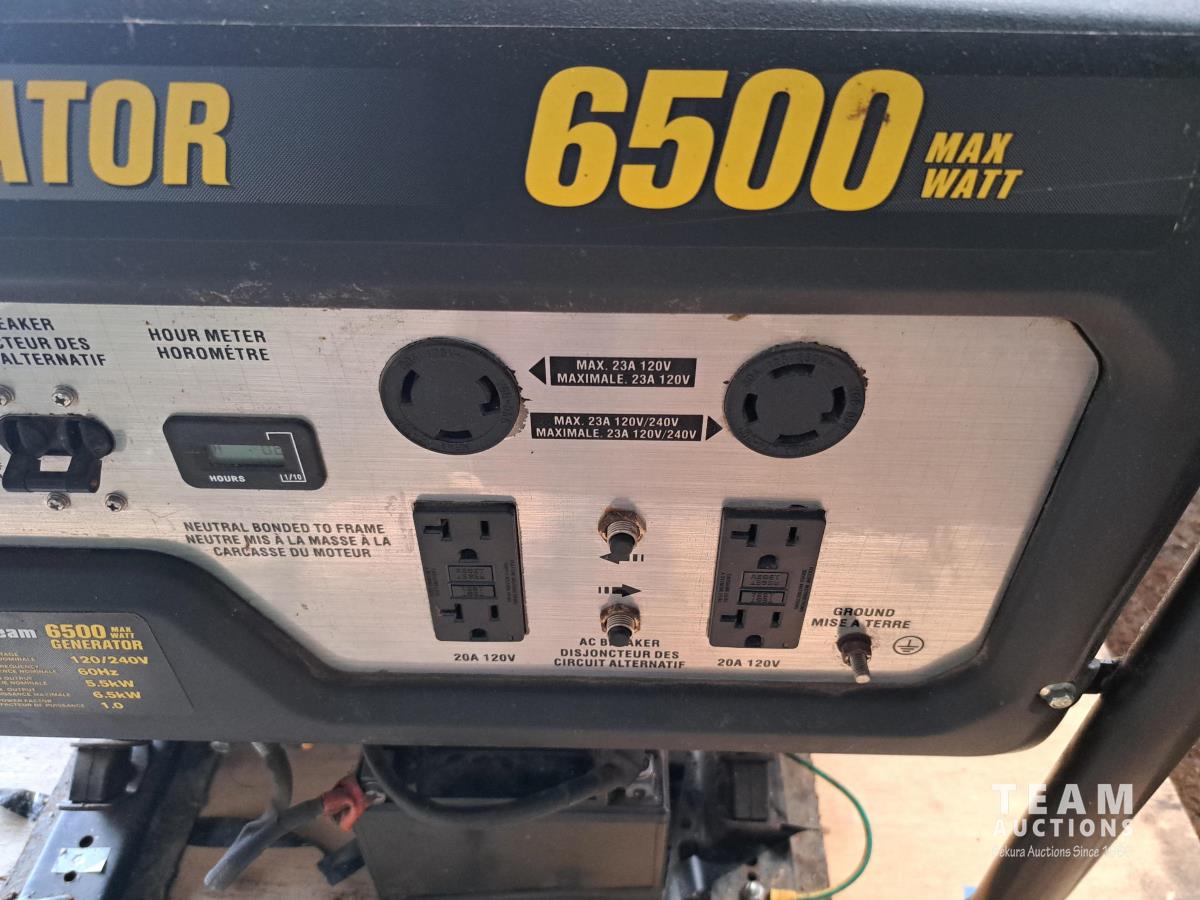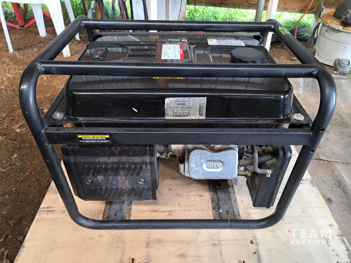 13 HP electric start gas engine, 120/240 voltage, 5500 watts continuous, (2) 30 amp plugs, (4) 120 volt plugs