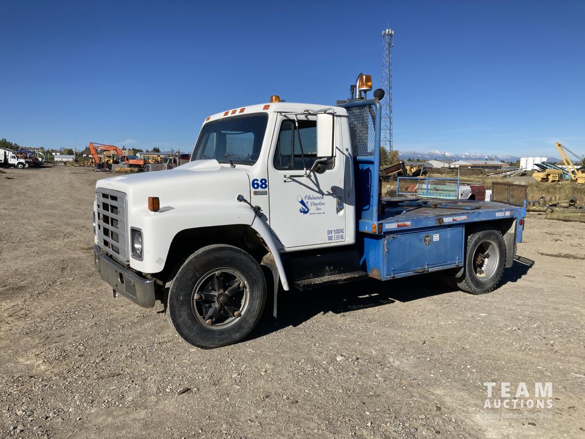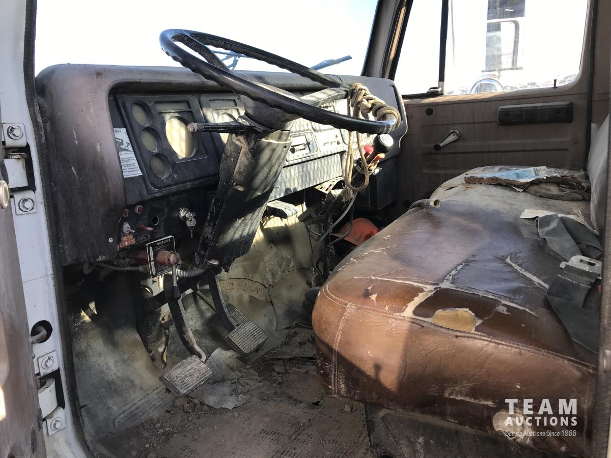 International V8 Gas engine, 5 speed manual transmission, 8 ft x 126 inch deck, beacons, saddle boxes, 152 inch WB, 8.25R/20 front tires, 8.25/R20 rear tires