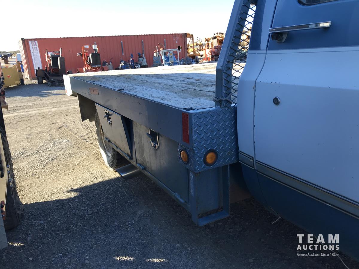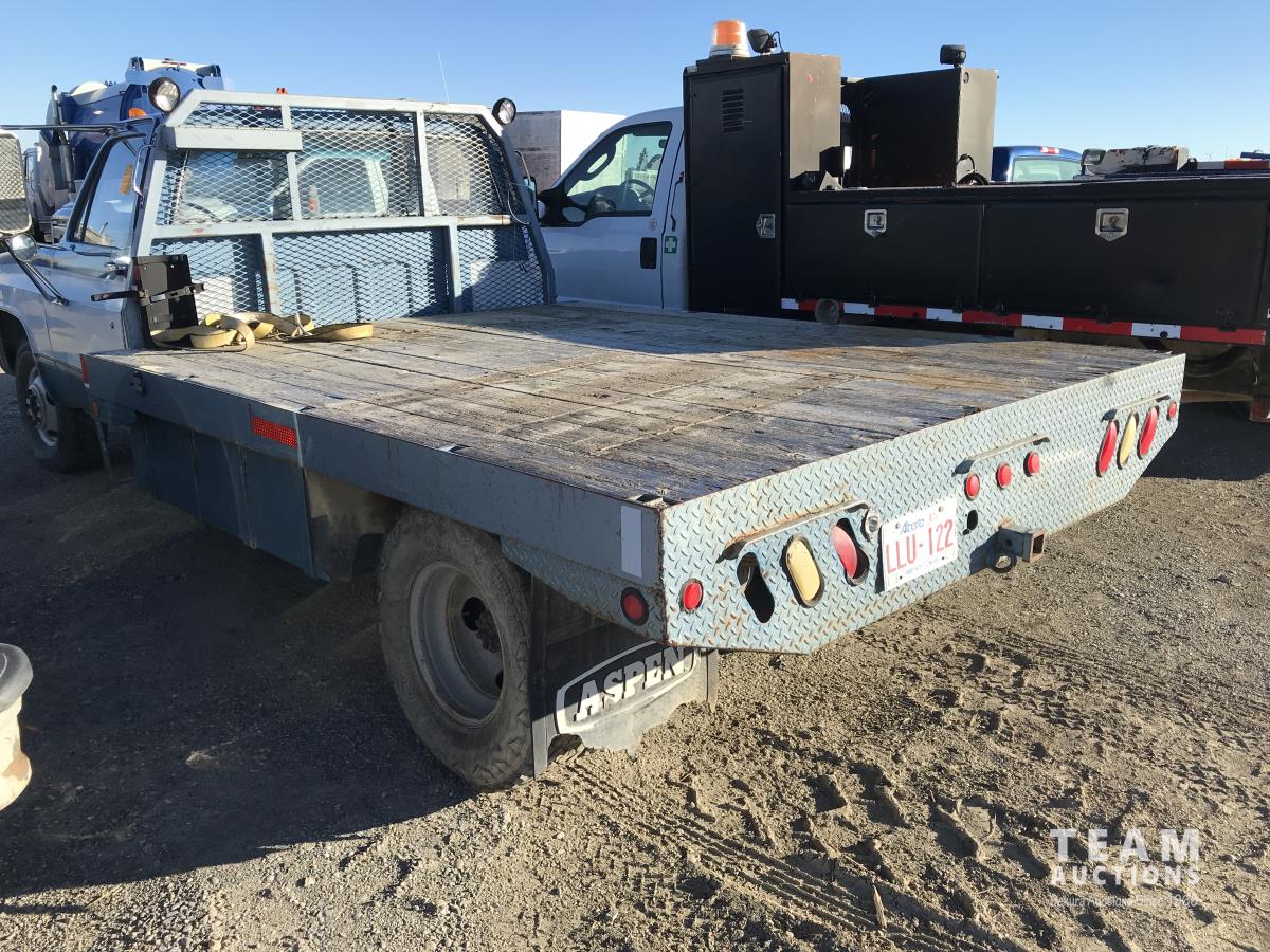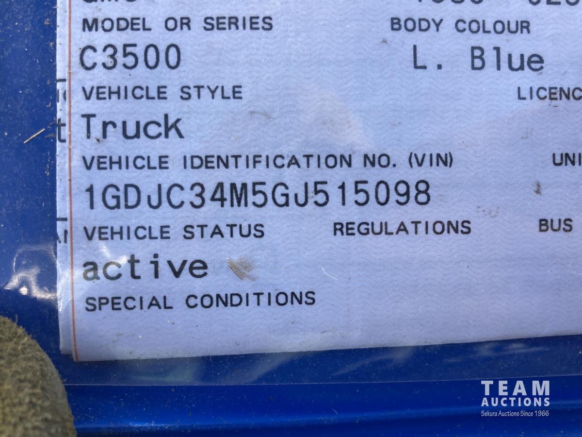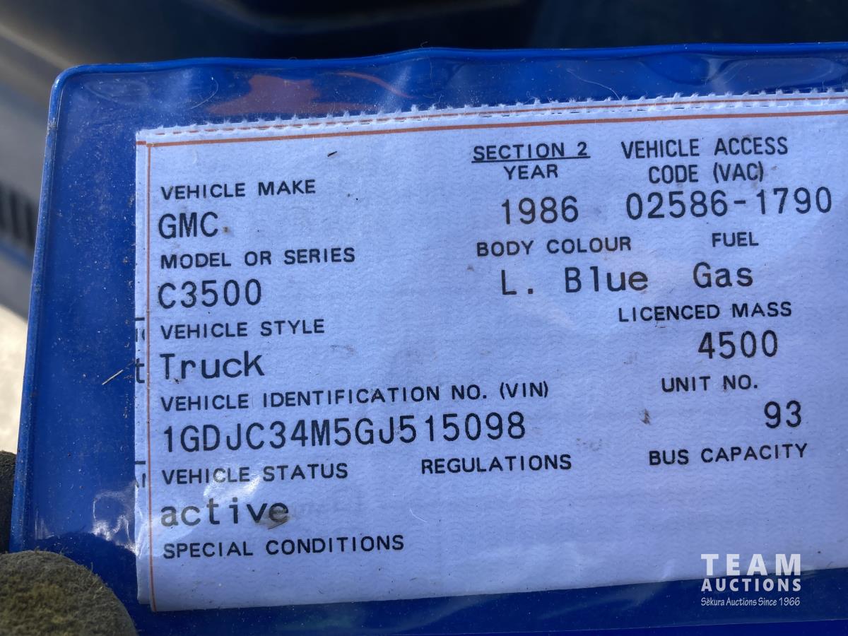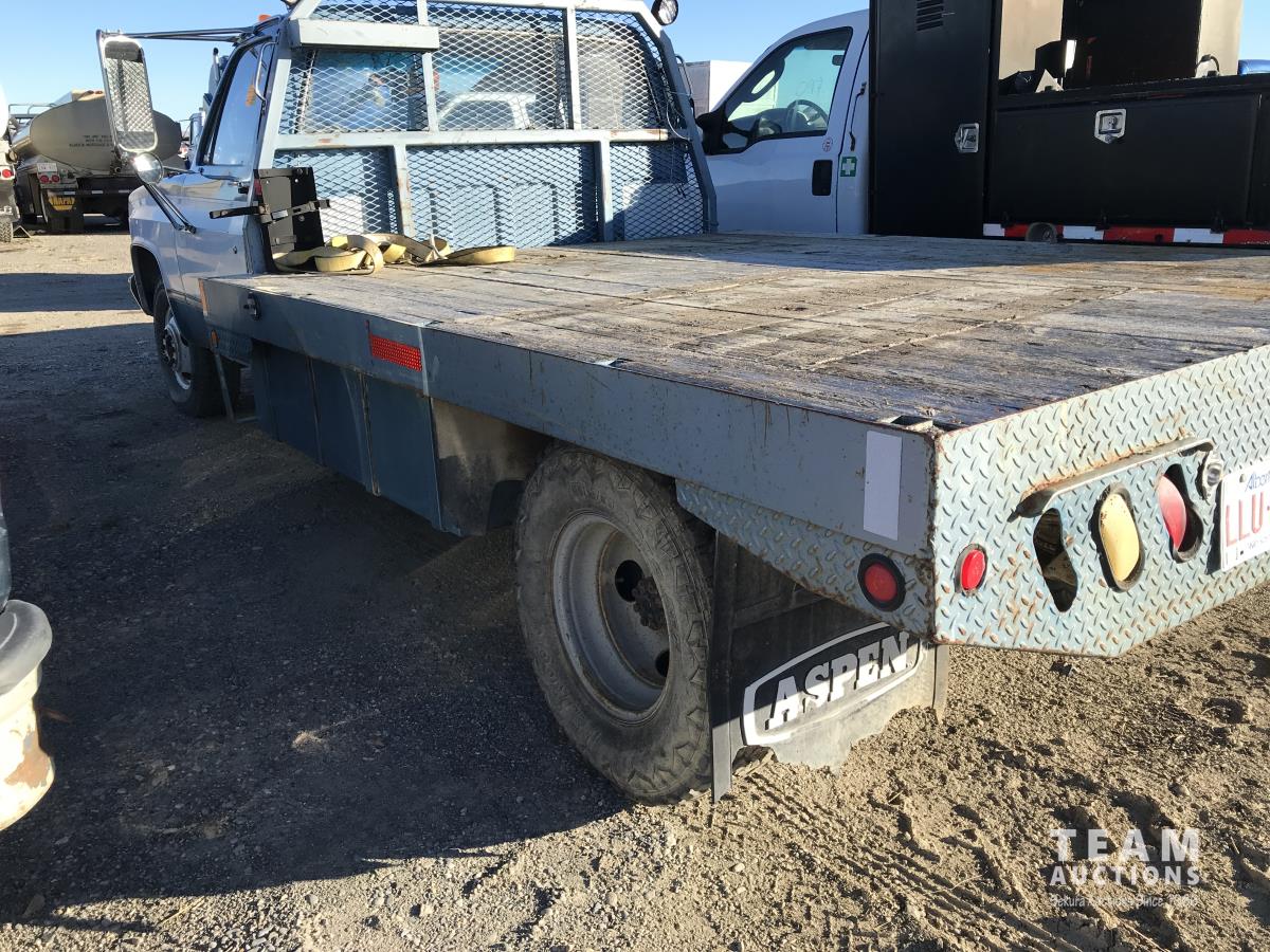 1042 1986 GMC 3500 2WD Regular Cab Dually Flat Deck Truck (Inoperable)