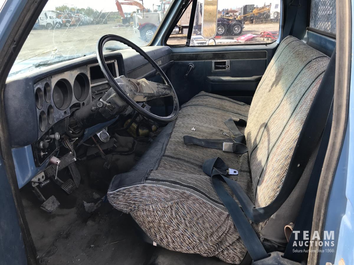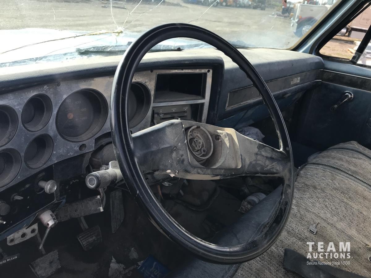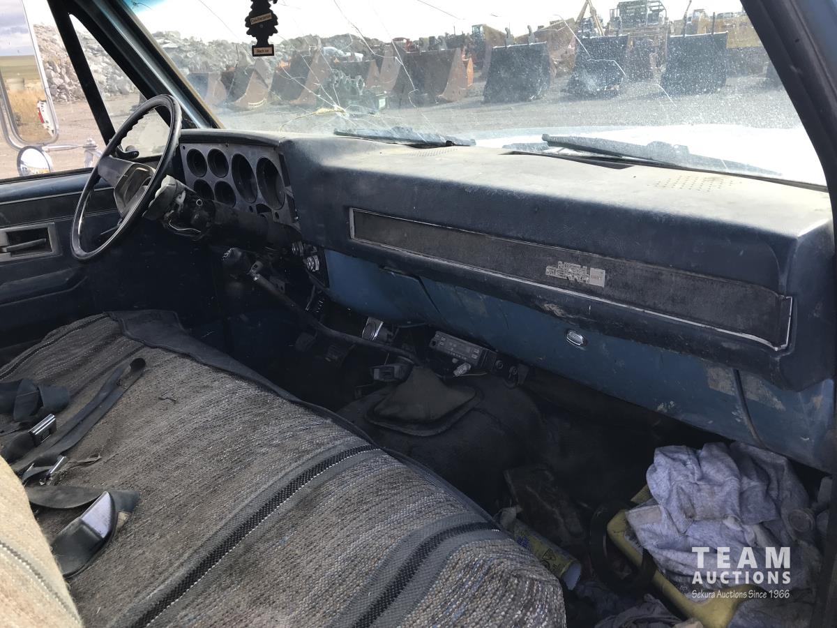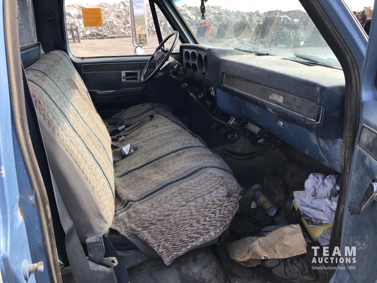 1042 1986 GMC 3500 2WD Regular Cab Dually Flat Deck Truck (Inoperable)