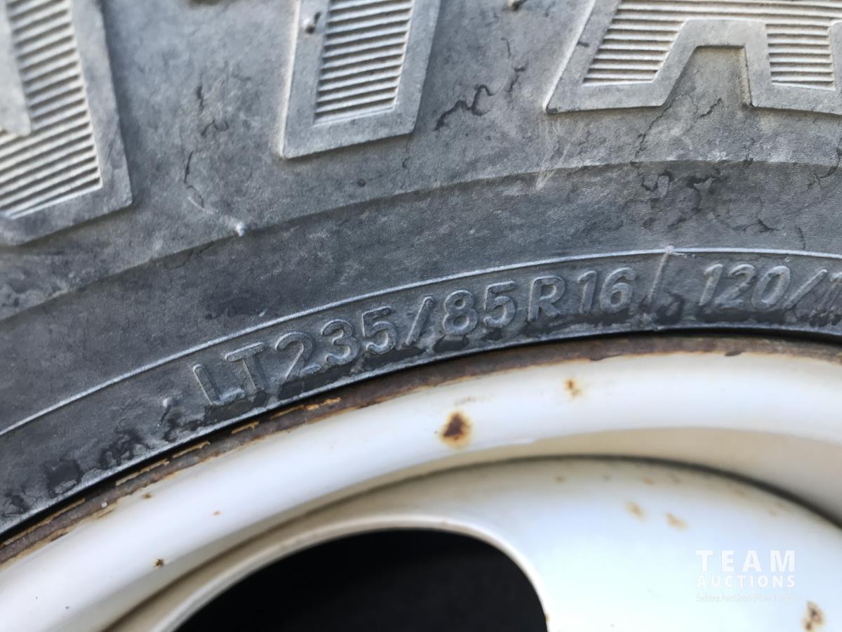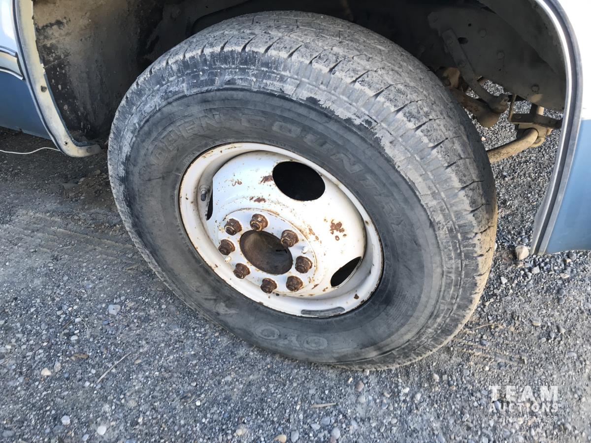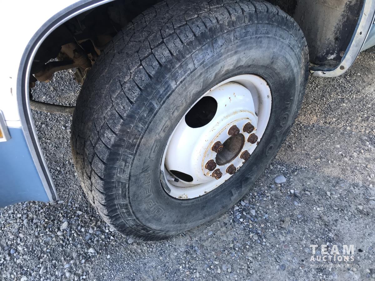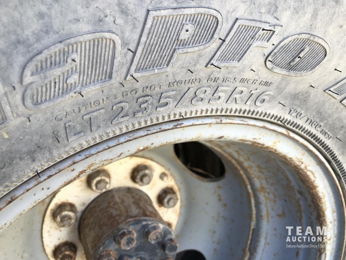 350 , V8, gas, 5 speed automatic transmission, running boards, steel headache rack, 10 ft x 8 ft deck, 235/85R16 tires