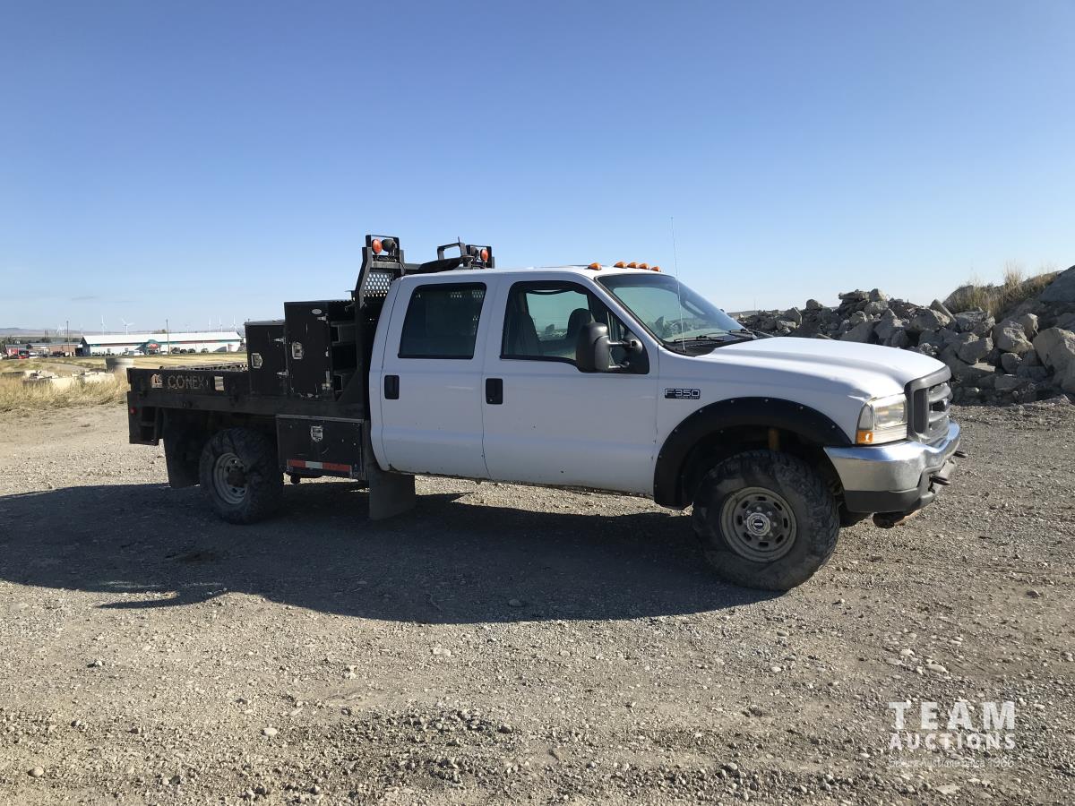 1026 2004 Ford F-350 XL 4X4 Crew Cab Flat Deck Truck