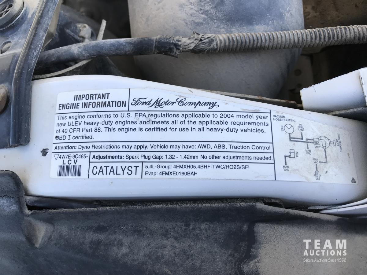 5.4 L, V8, Gas, 4 speed automatic transmission, A/C, steel headache rack, 78" x 112" service body/deck, 285/75R16 tires