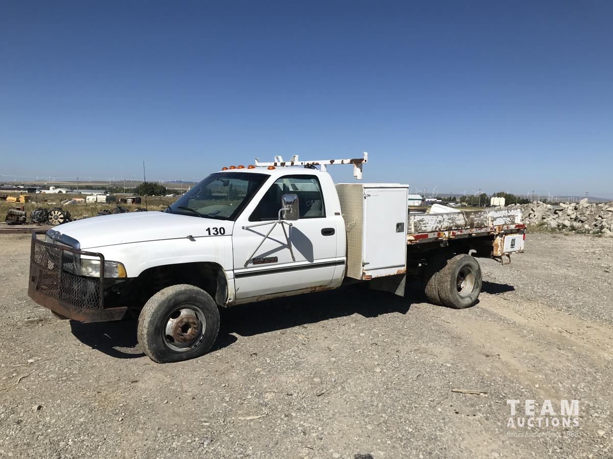 1029 1997 Dodge Ram 3500 4X4 Regular Cab Dually Flat Deck Truck