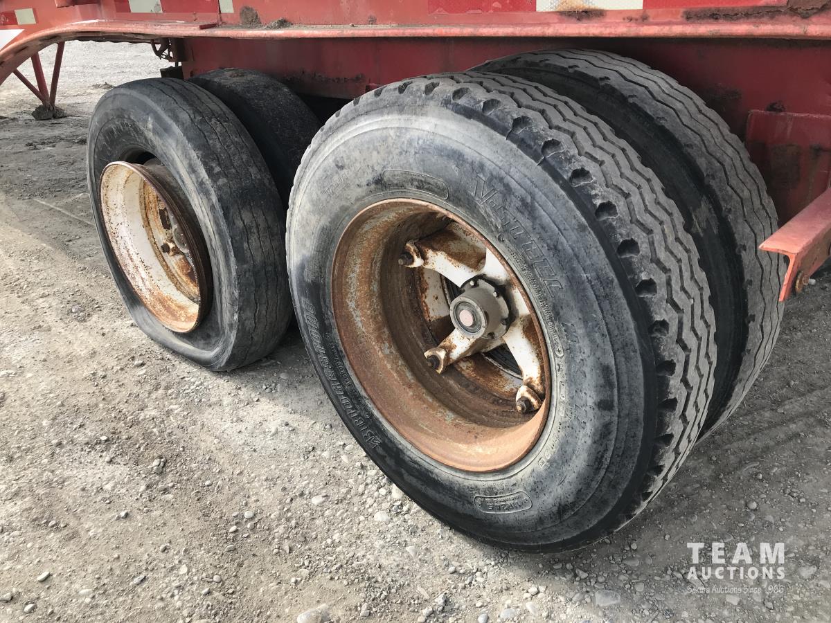 101 inch wide deck, wood deck, stake pockets, rub rails, cargo winches, rear live roll, air brakes, spring suspension, 11R24.5 tires