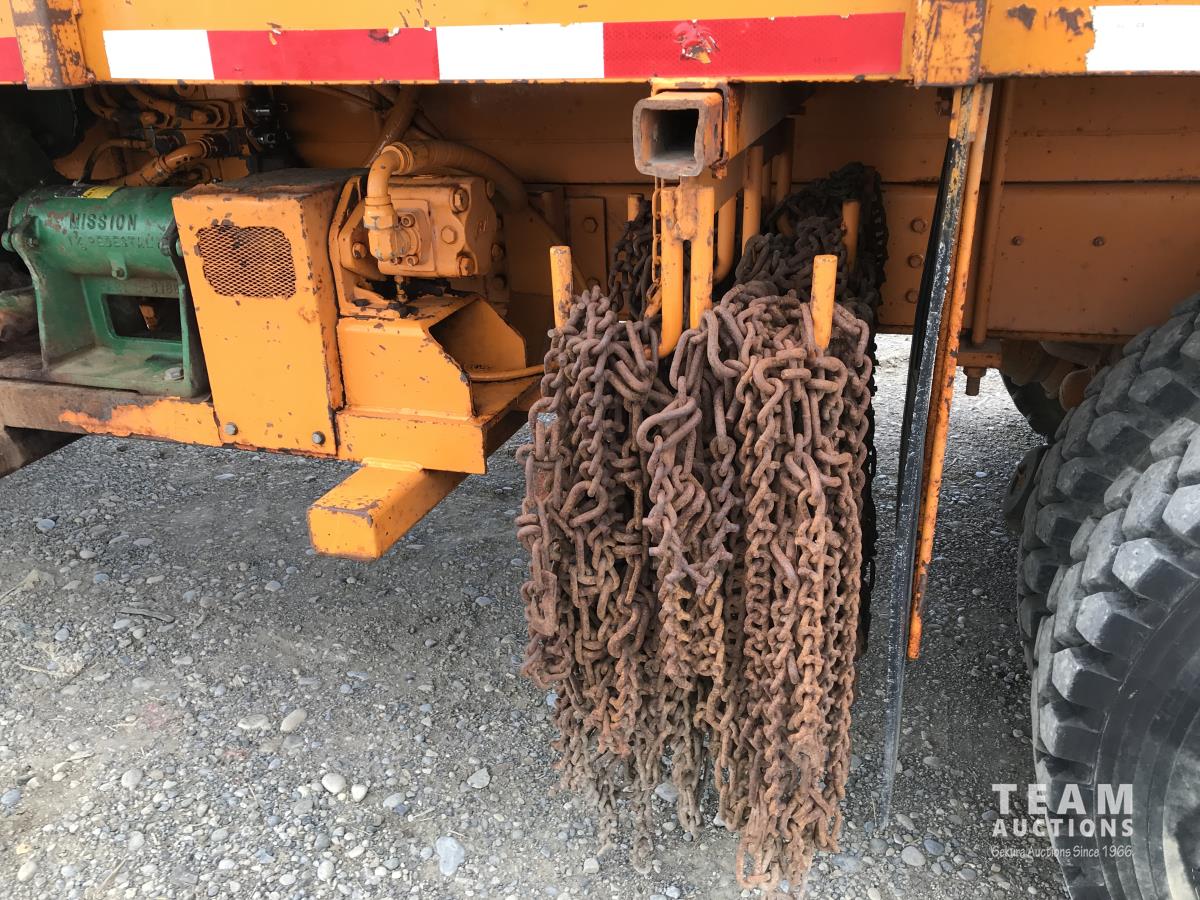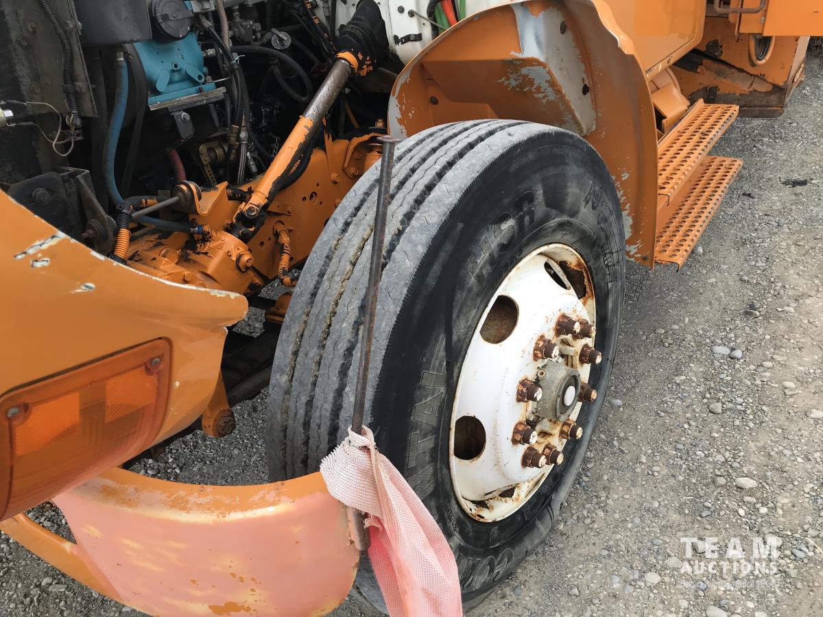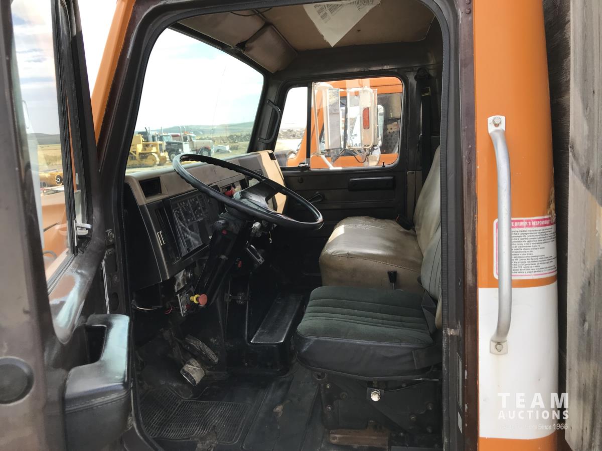 SRC 7.6 L 6 cylinder diesel engine, 3 speed automatic transmission, Engine part #90P4220AP4, A/C, cruise control, leather interior, steel tool boxes, chain holders, National 165hp triplex 5 inch stroke 5000 psi. hydraulic pump, diff lock, 188 inch WB, 11R22.5 tires
